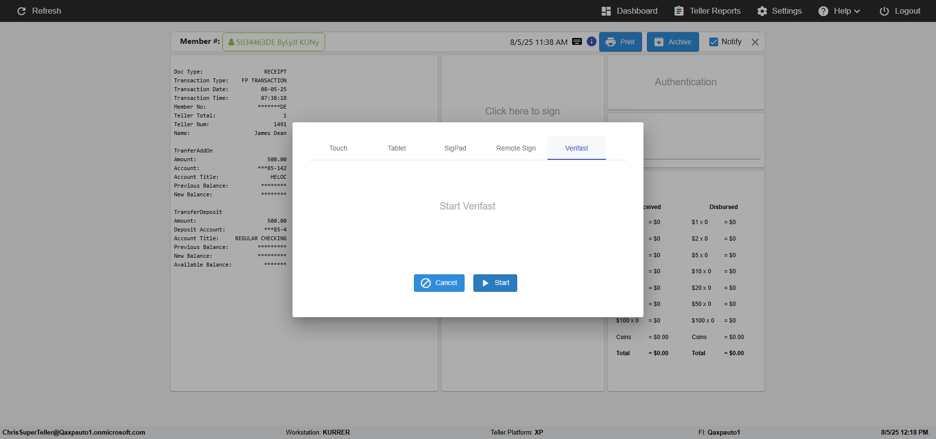 (verify MemberID And Archive Information for Normal teller In Receipt Page)
