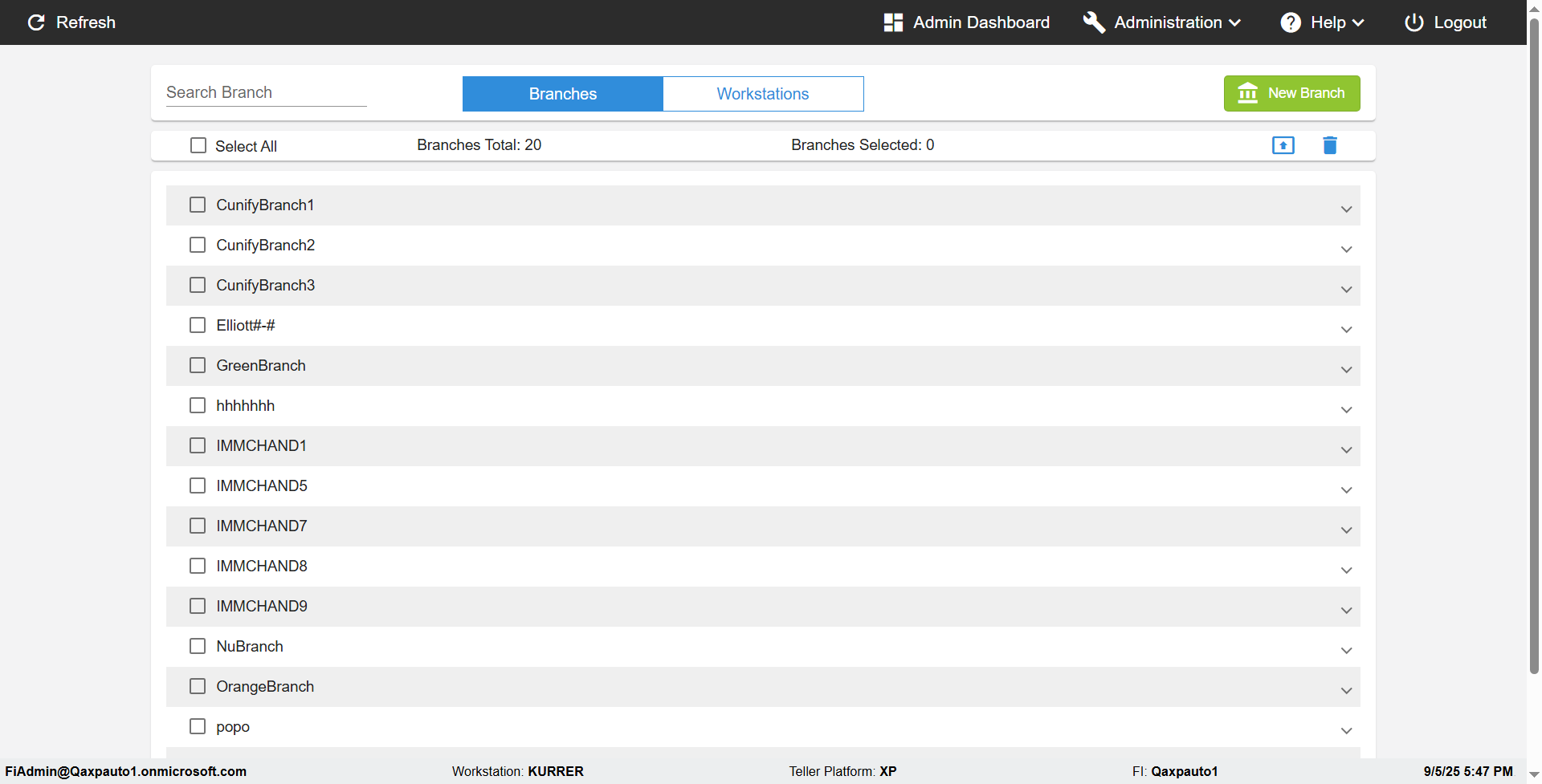 | 05:47:15 PM | Expected: select the list matching pattern in 'Branches' page Actual(Passed): Successfully selected list in 'Branches' page [ScreenShot] |