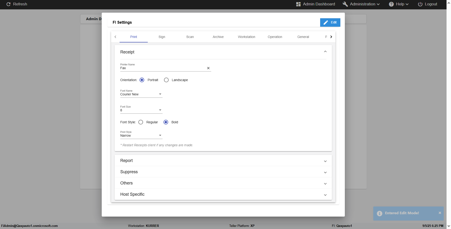 verify eReceipts Restart text in FI settings