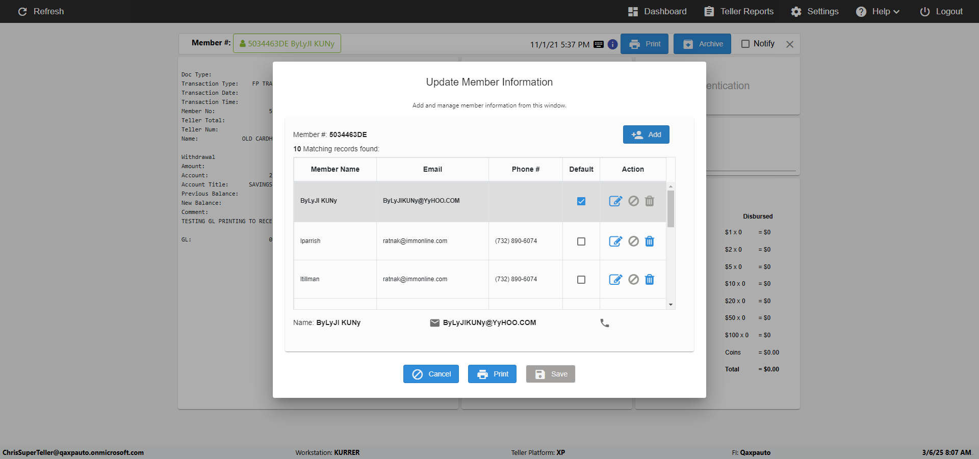 ({Toggel=TRUE, Archived Transactions=no, Description=verify MemberID And Archive Information Update (duplicate), Email=Hohn@email.com, Archive=, Document Type=, Notify=, SignatureTab=, DisbursedExpression=, Operation=, Teller LastName=, Disbursed cash=, errorint=, TestID=verifyMemberAddUpdateContactInfo, Print=, DisbursedExpressionValue=, Phone=(555) 021-3315, ReceivedCashValue=, Member=5034463, UserPwd=iMM2022!, Transtatus=Archived-false;Active-true;Error-false, Docment ID=, Teller=, Teller FirstName=, errorMessage=, ReceivedExpressionValue=, Date=11/01/2021 - 11/20/2021, Platfrom=, Received cash=, Transaction=, Header=, Expression=, Username=JaneOperator@Qaxpauto.onmicrosoft.com, DisbursedCashValue=, FullName=John, ReceivedExpression=, SMS=, Memo=})