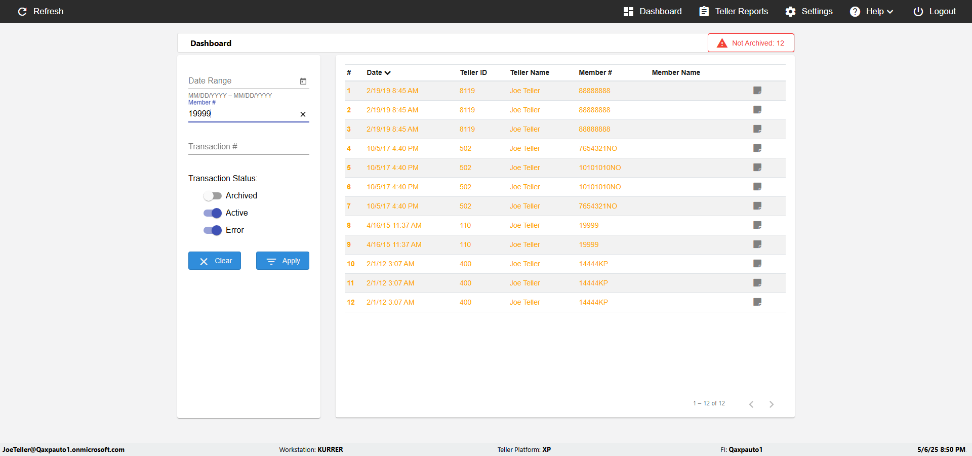 | verifyNormalTellerMemberNameOnlyinDatFile: verify Member Member Name in REceipt and Member ID button match | |||
