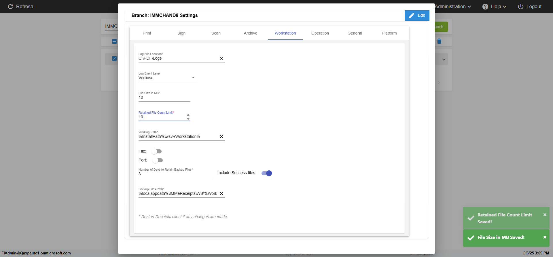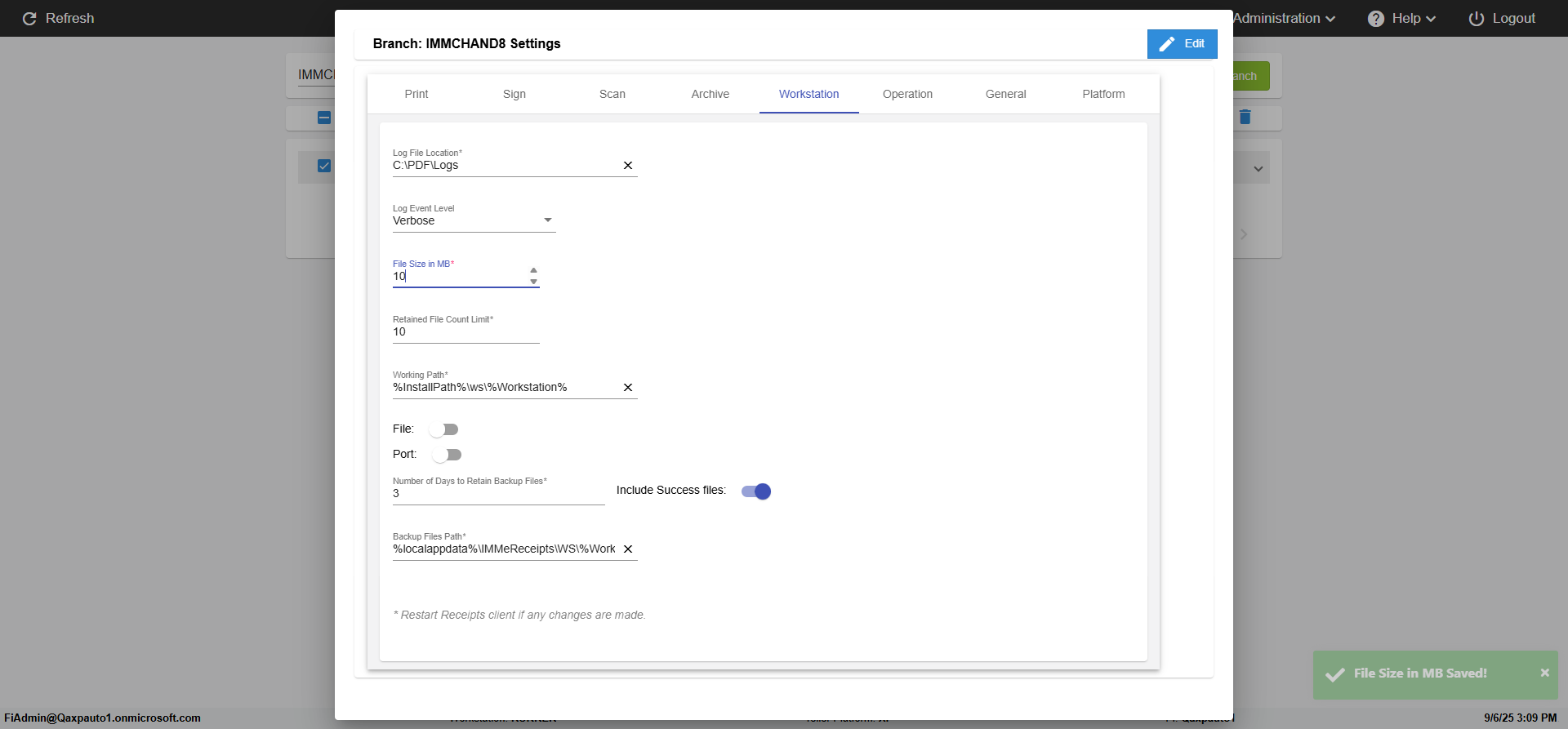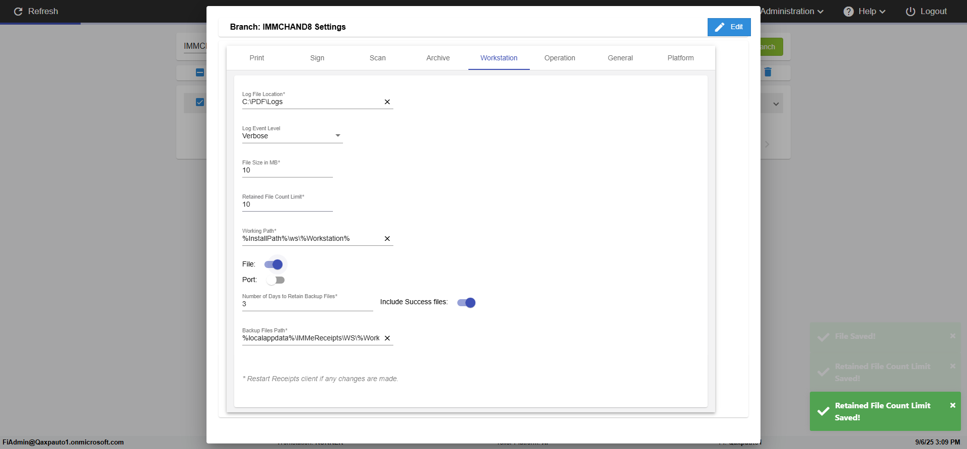 Actual(Passed): Sucessfully set Retained File Count Limit:10[ScreenShot] Expected: File ( slider -on(true)/off(false))