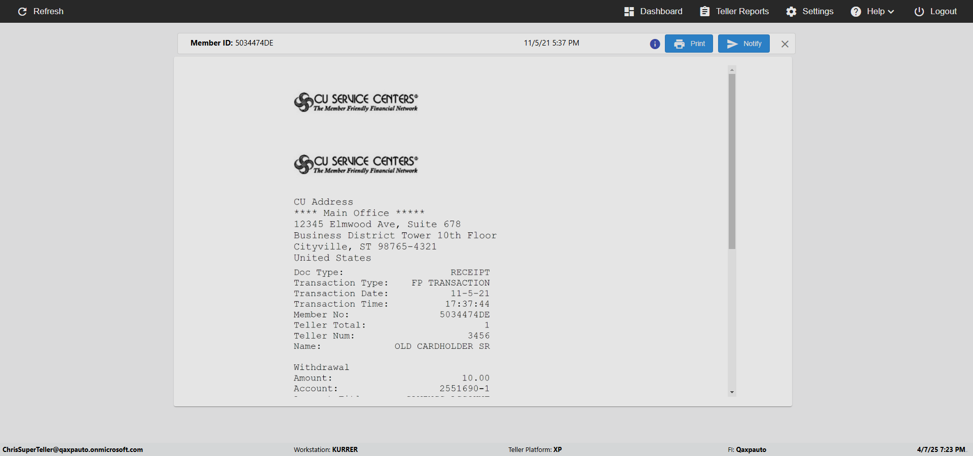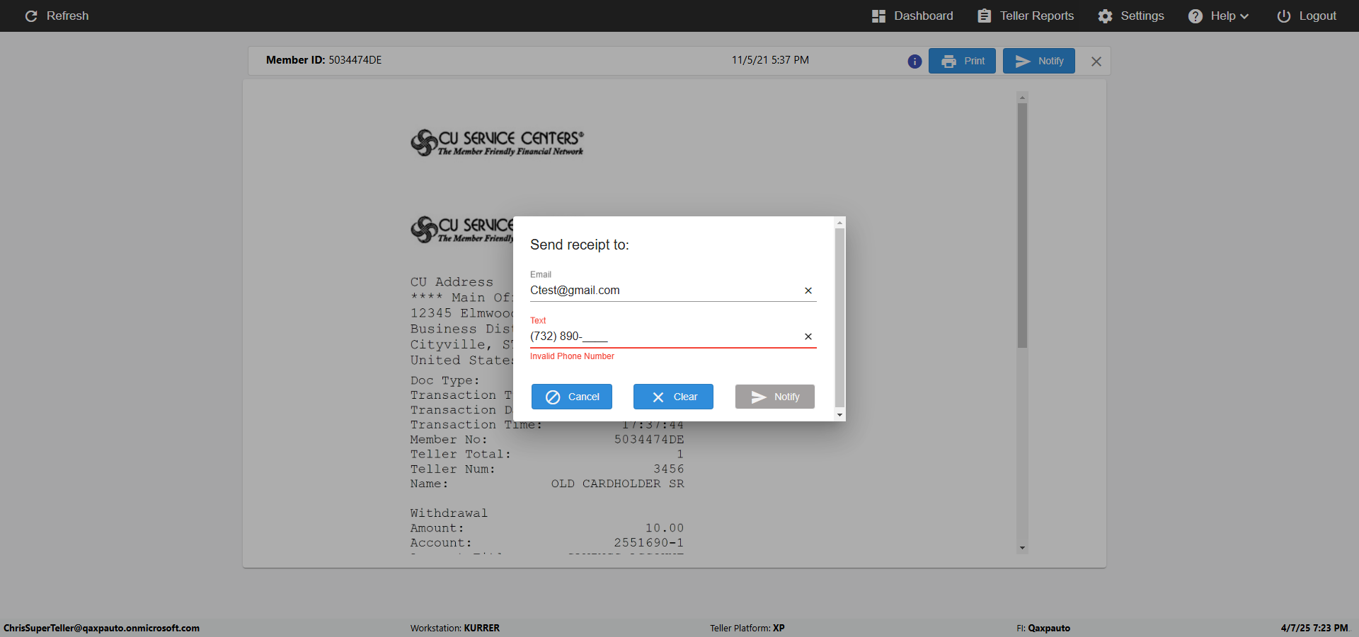 verifyNotifyInArchiveReceiptPage({Description=verify Notify In Archive Receipt Page, Email=Ctest@gmail.com, Teller LastName=, print s...)