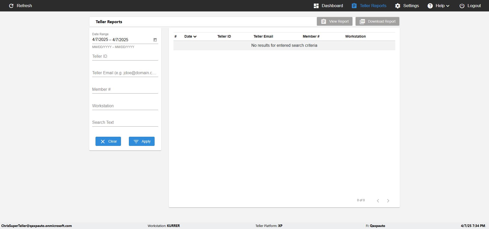 --- 07 Apr 19:34:31 919 - Page URL:: https://er-tellerportal-demo.azurewebsites.net/reports