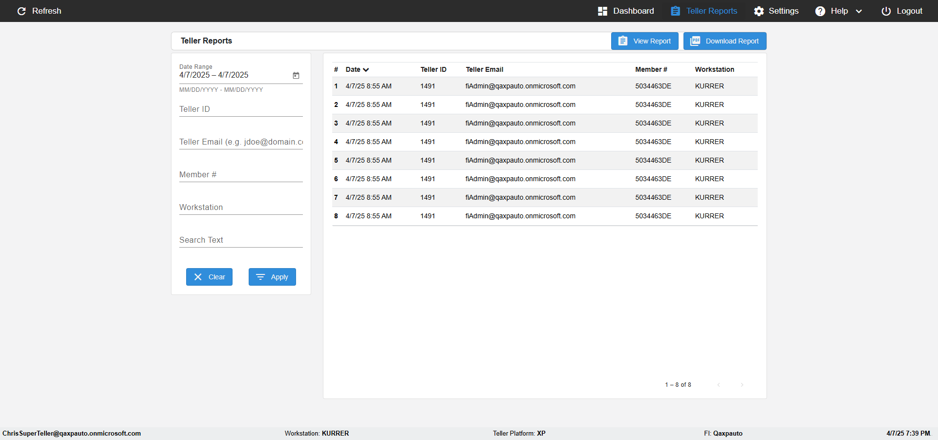 (Verify UI elements and Search the Date,Teller,Teller name,Member name in Reports page)