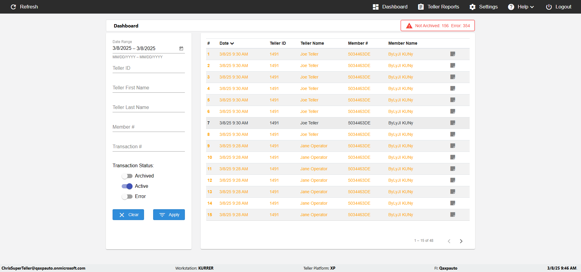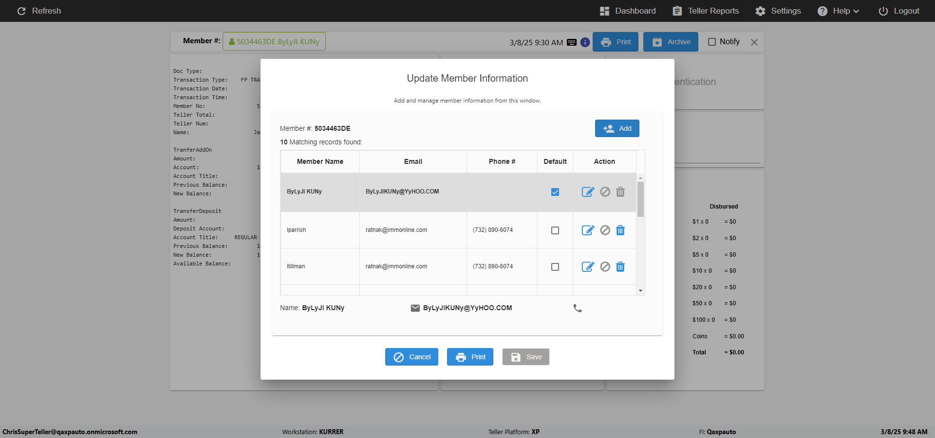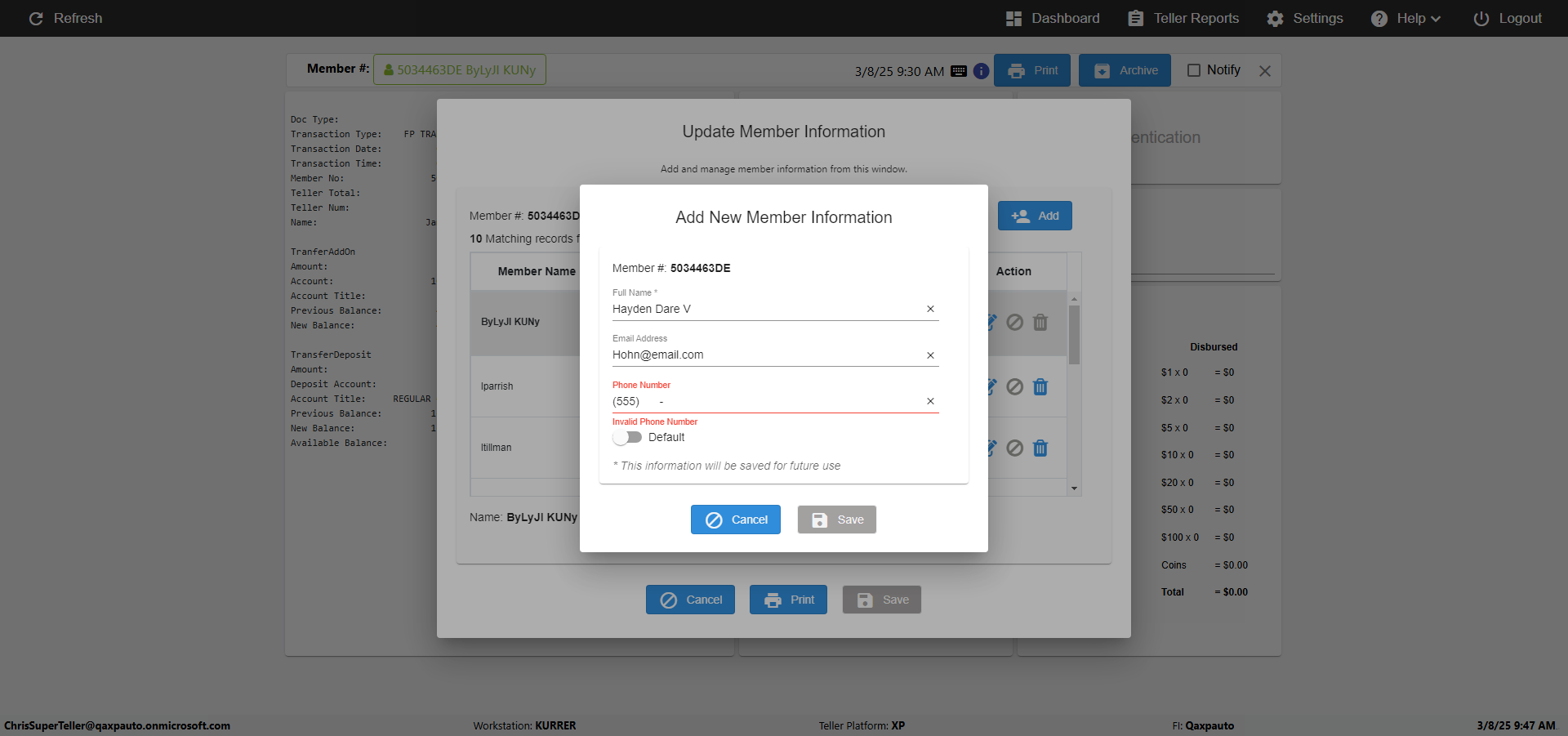 ({Toggel=TRUE, Archived Transactions=no, Description=verify MemberID And Archive Information Update, Email=Hohn@email.com, Archive=, Document Type=, Notify=, SignatureTab=, DisbursedExpression=, Operation=, Teller LastName=, Disbursed cash=, errorint=, TestID=verifyMemberAddUpdateContactInfo, Print=, DisbursedExpressionValue=, Phone=(555) 021-3315, ReceivedCashValue=, Member=5034463, UserPwd=iMM2022!, Transtatus=Archived-false;Active-true;Error-false, Docment ID=, Teller=, Teller FirstName=, errorMessage=, ReceivedExpressionValue=, Date=11/01/2021 - 11/20/2021, Platfrom=, Received cash=, Transaction=, Header=, Expression=, Username=ChrisSuperTeller@Qaxpauto.onmicrosoft.com, DisbursedCashValue=, FullName=John, ReceivedExpression=, SMS=, Memo=})