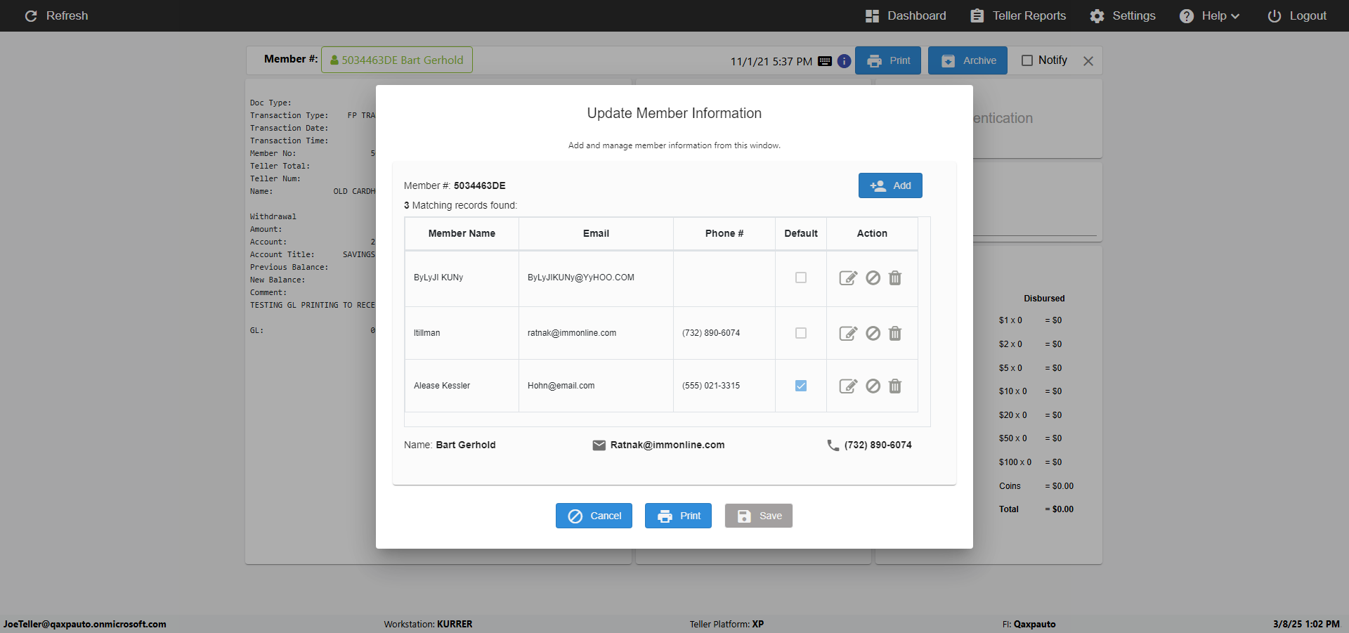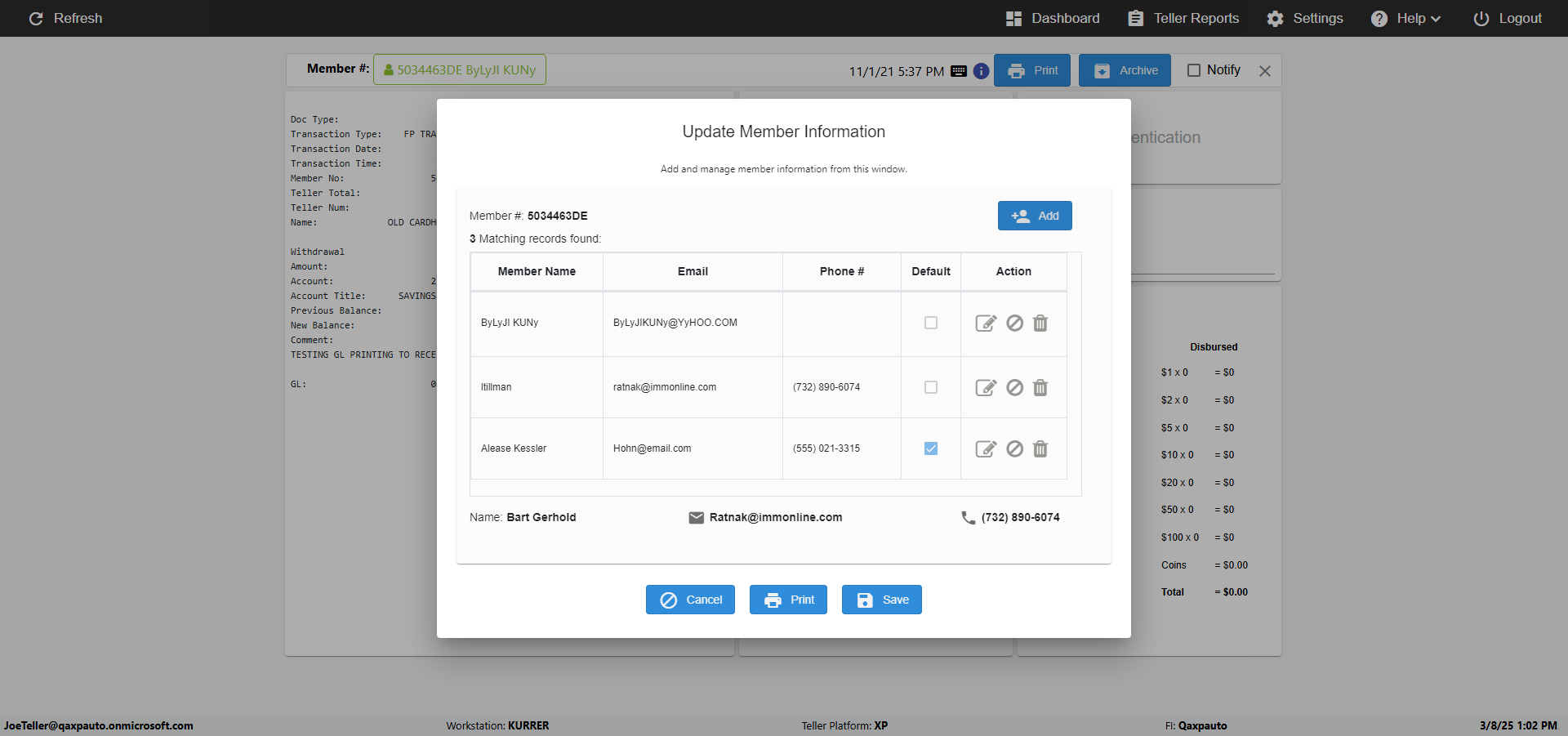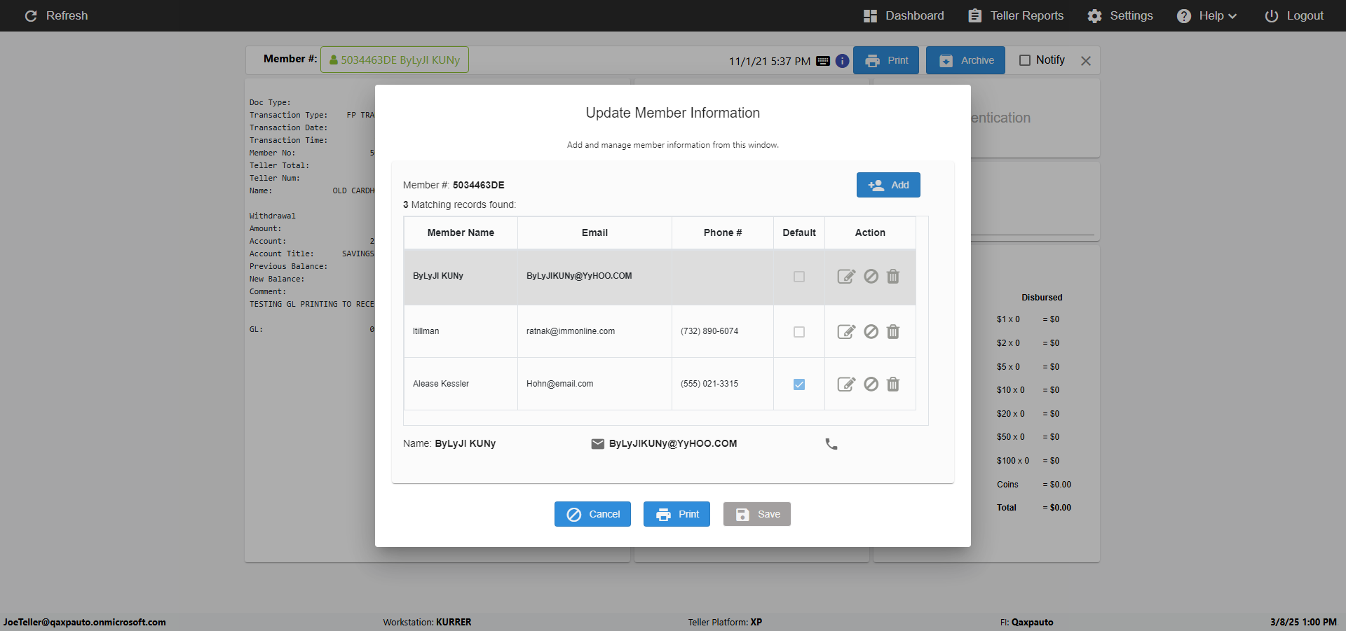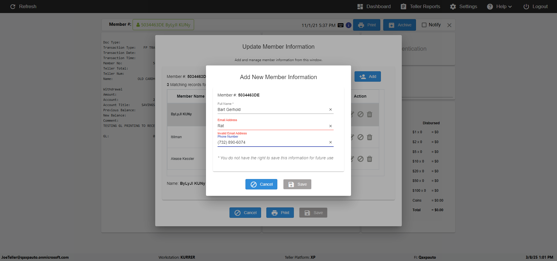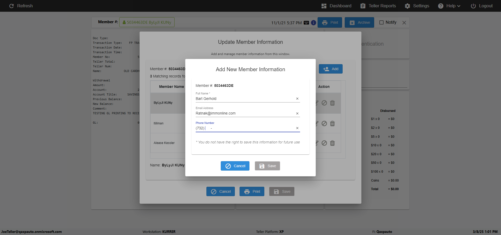 ({Toggel=TRUE, Archived Transactions=no, Description=verify Normal MemberID And Archive Information Update (Use Normal only), Email=Ratnak@immonline.com, Archive=, Document Type=, Notify=, SignatureTab=, DisbursedExpression=, Operation=, Teller LastName=, Disbursed cash=, errorint=, TestID=verifyNormalMemberAddUpdateContactInfo, Print=, DisbursedExpressionValue=, Phone=(732) 890-6074, ReceivedCashValue=, Member=5034463, UserPwd=iMM2022!, Transtatus=Archived-false;Active-true;Error-false, Docment ID=, Teller=, Teller FirstName=, errorMessage=, ReceivedExpressionValue=, Date=11/01/2021 - 11/20/2021, Platfrom=, Received cash=, Transaction=, Header=, Expression=, Username=JoeTeller@Qaxpauto.onmicrosoft.com, DisbursedCashValue=, FullName=Johna, ReceivedExpression=, SMS=, Memo=})