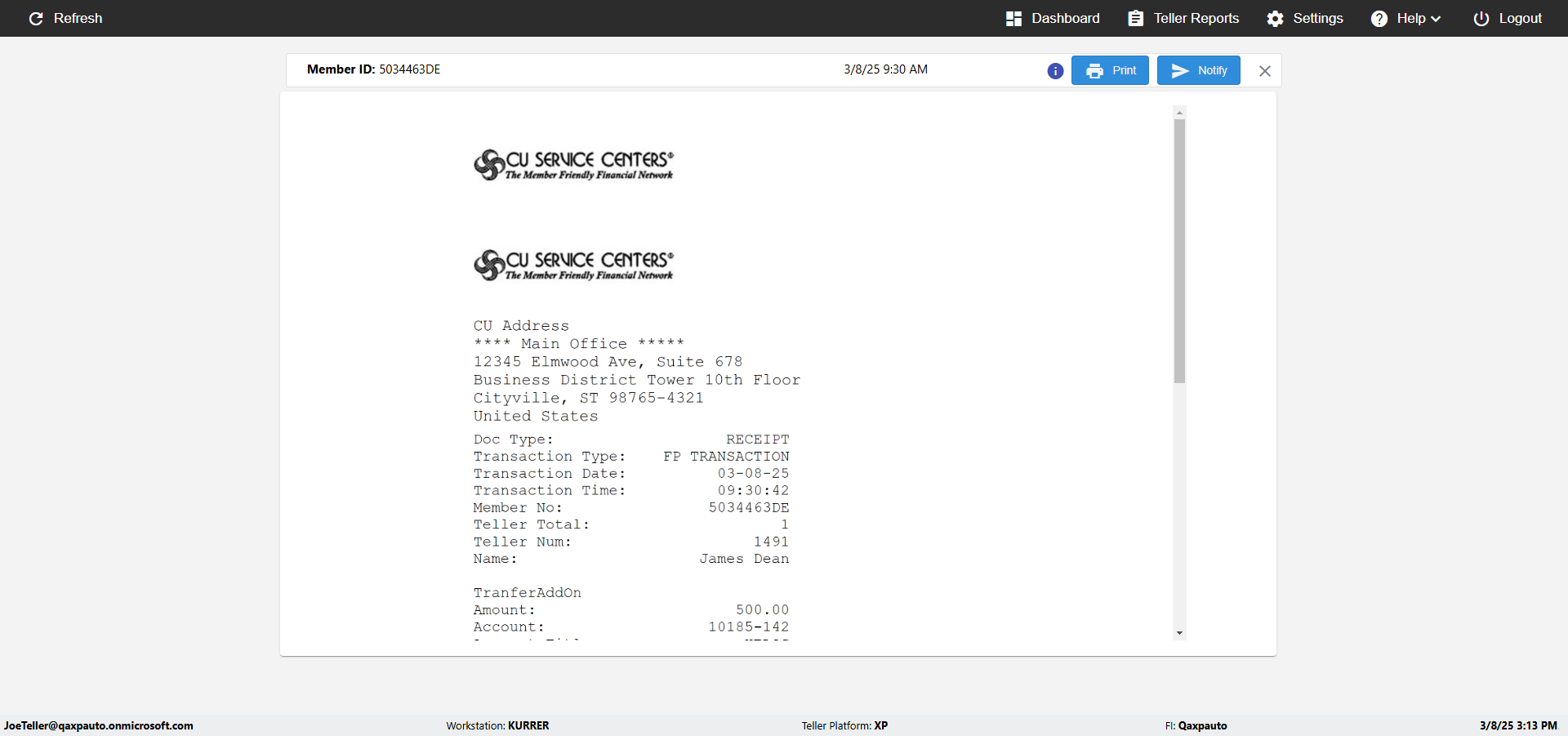 Expected: verify Elements in Receipt Archive and Member Notification box