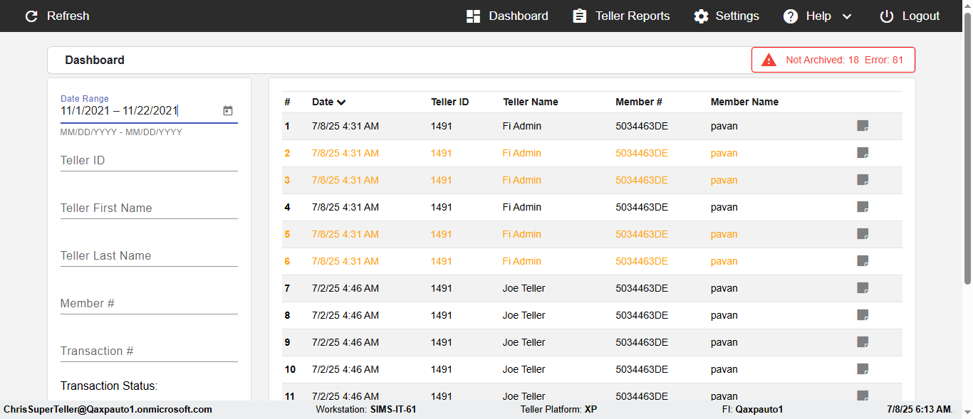 ({Description=verify Sorting In DashBoard - Member Name, Email=, Teller LastName=, print signatur=, errorint=, TestID=verifySortingInDashBoard, Color Transactions=No, Member=, UserPwd=iMM2022!, Transtatus=Archived-false;Active-true;Error-false, Receipt=, Report=, Teller=, Teller FirstName=, errorMessage=, Suppress=, Date=11/01/2021 - 11/22/2021, print Disburstments=, Print signature line=, Type=, Transaction=, Header=Date,Member Name,, Username=ChrisSuperTeller@Qaxpauto1.onmicrosoft.com, SMS=, Sign=, Scan=})