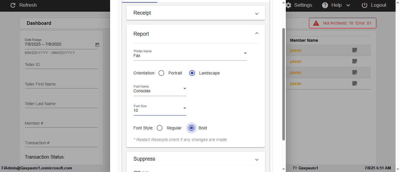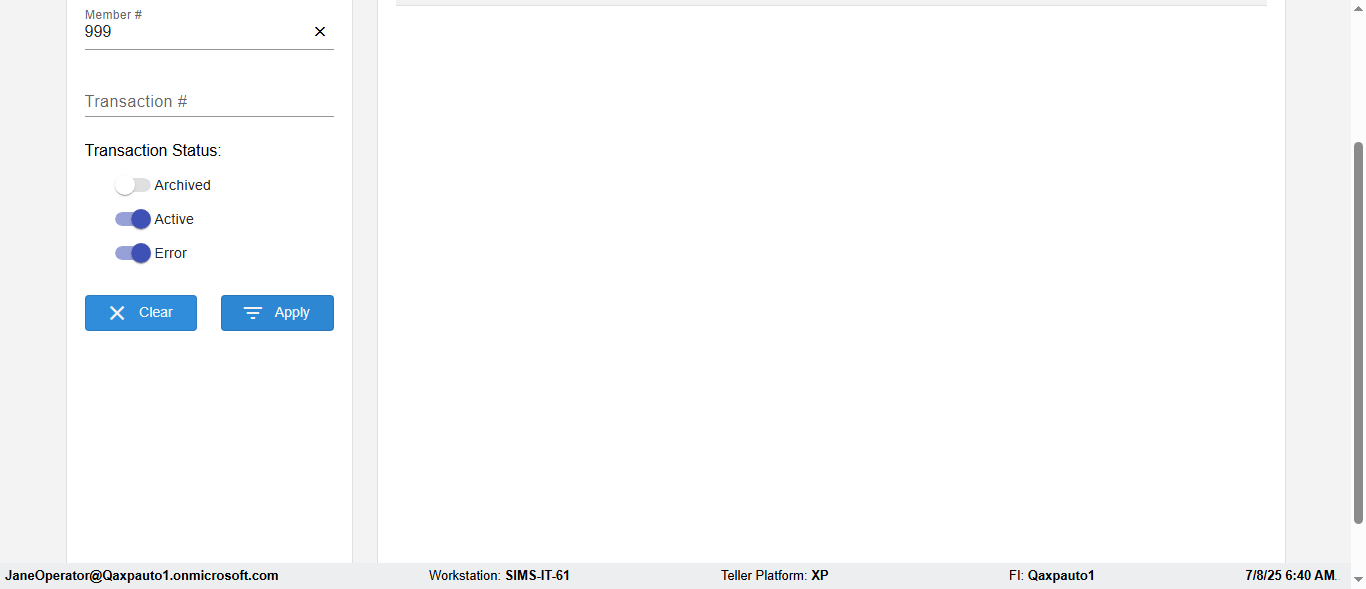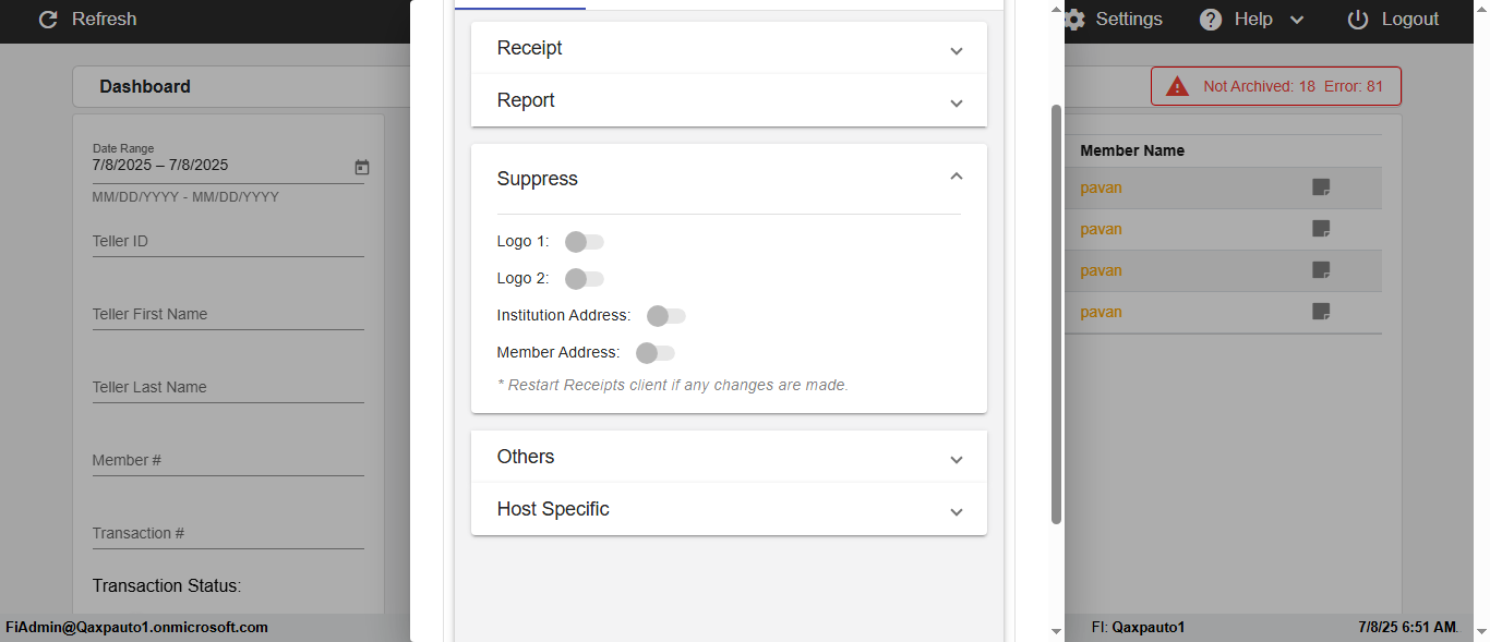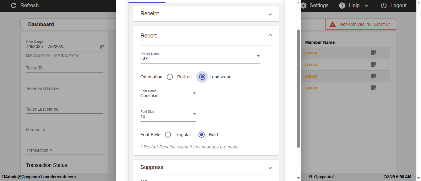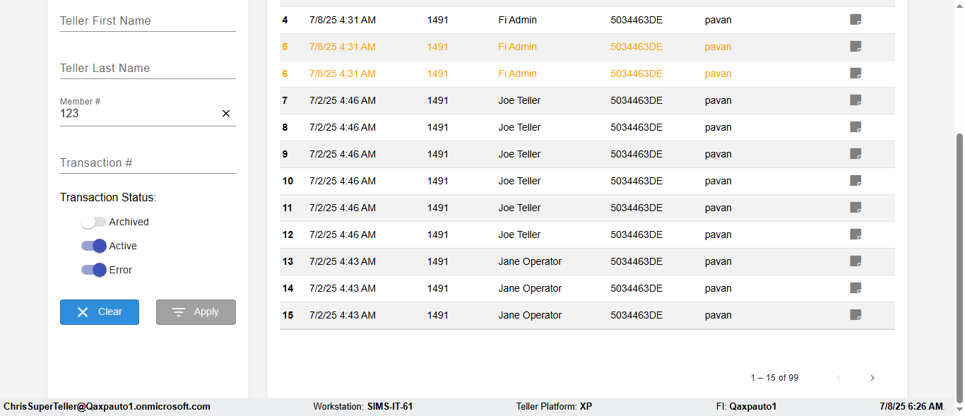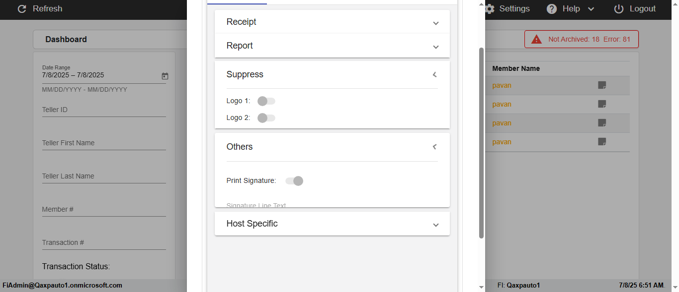 ({Description=verify Error Messages In DashBoard Page with Future From and To Date, Email=, Teller LastName=, print signatur=, errorint=2, TestID=verifyErrorMessagesInDashBoardPage, Color Transactions=, Member=5034474, UserPwd=iMM2022!, Transtatus=Archived-false;Active-true;Error-false, Receipt=, Report=, Teller=, Teller FirstName=, errorMessage=Date cannot exceed 7 days after today.;Date cannot exceed 7 days after today., Suppress=, Date=07/07/25 - 08/08/25, print Disburstments=, Print signature line=, Type=, Transaction=, Header=, Username=ChrisSuperTeller@Qaxpauto1.onmicrosoft.com, SMS=, Sign=, Scan=})