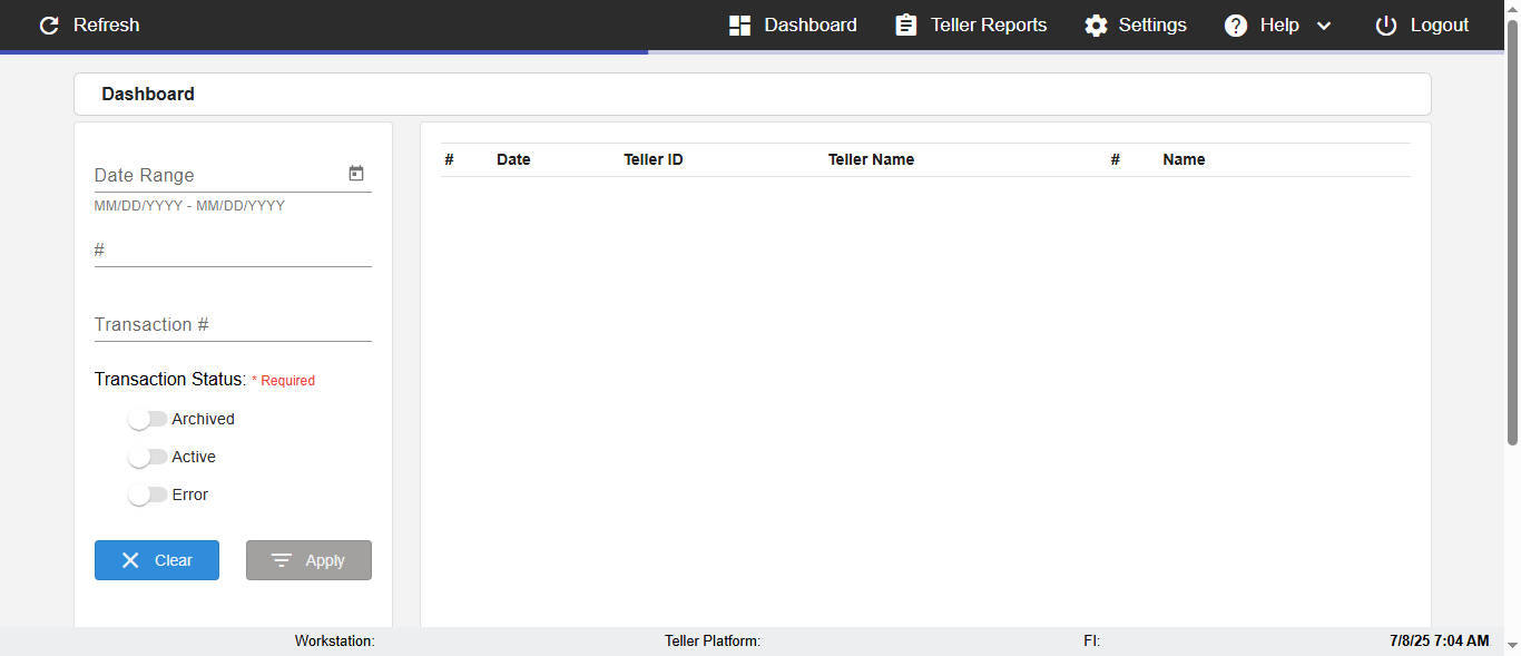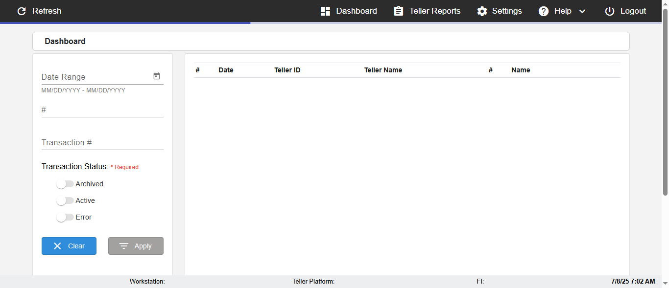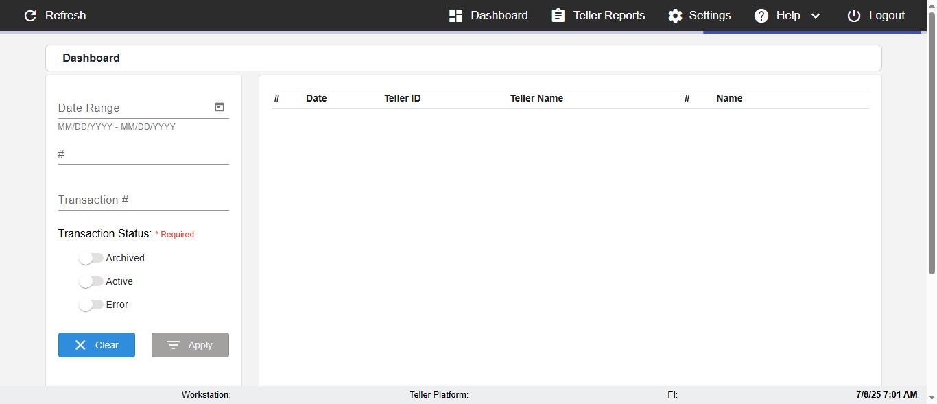 (Verify negative/invalid Search of the Date,Teller,Teller name,Member name in DashBoard page)