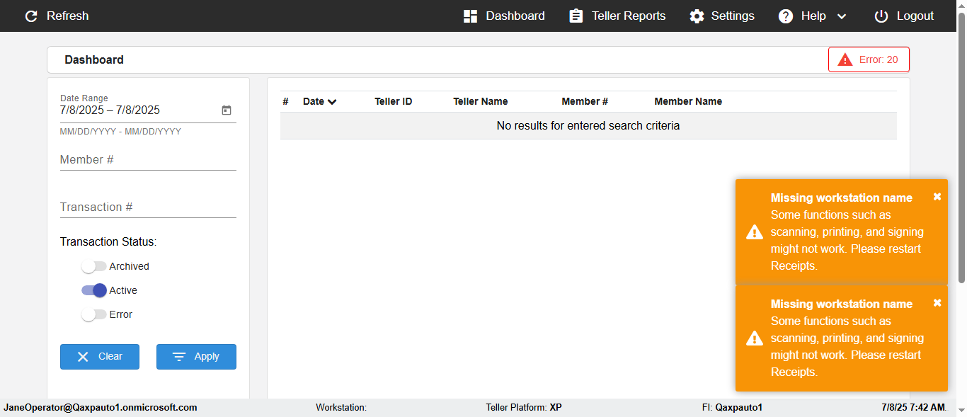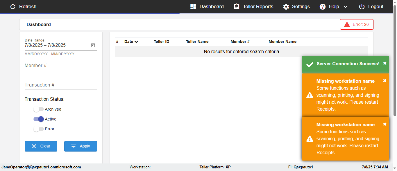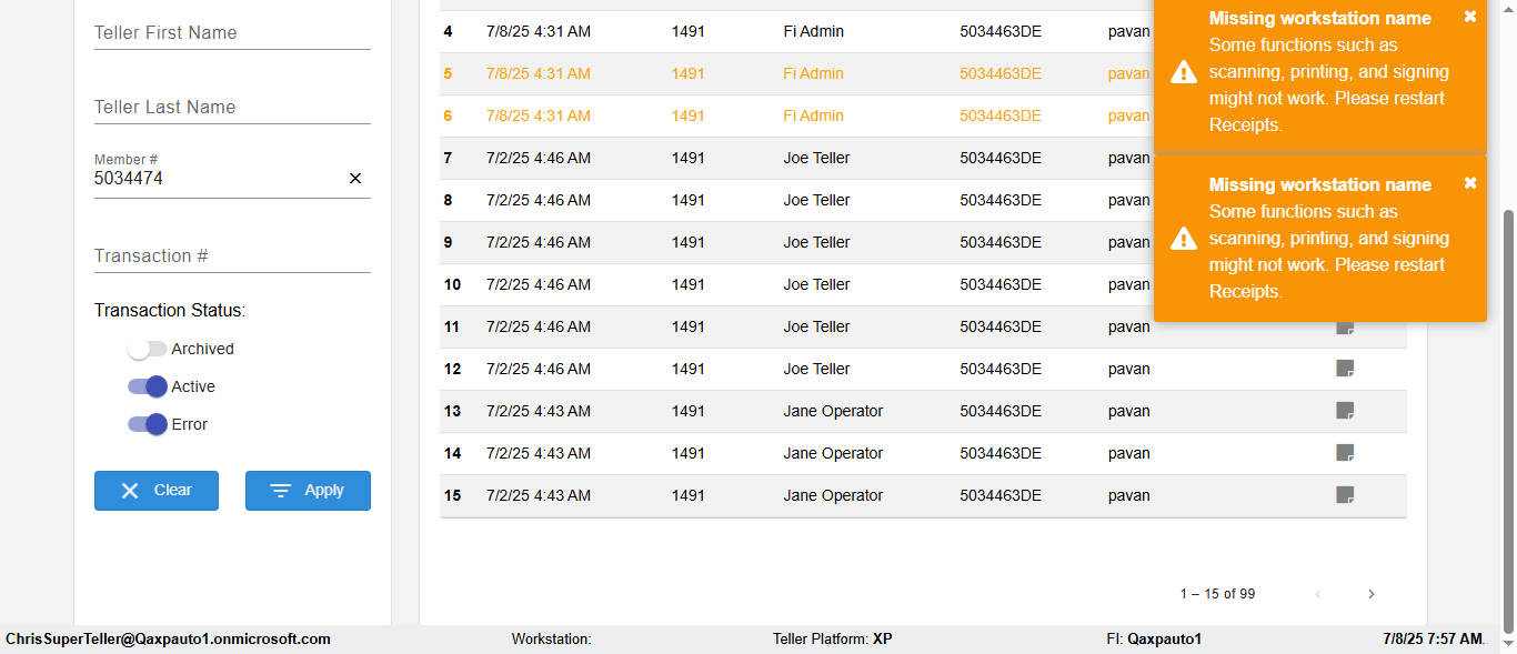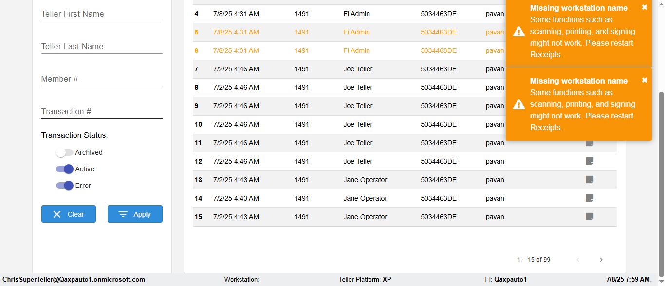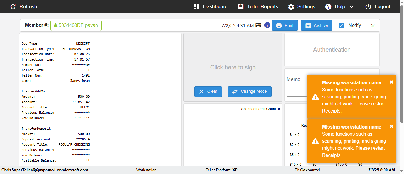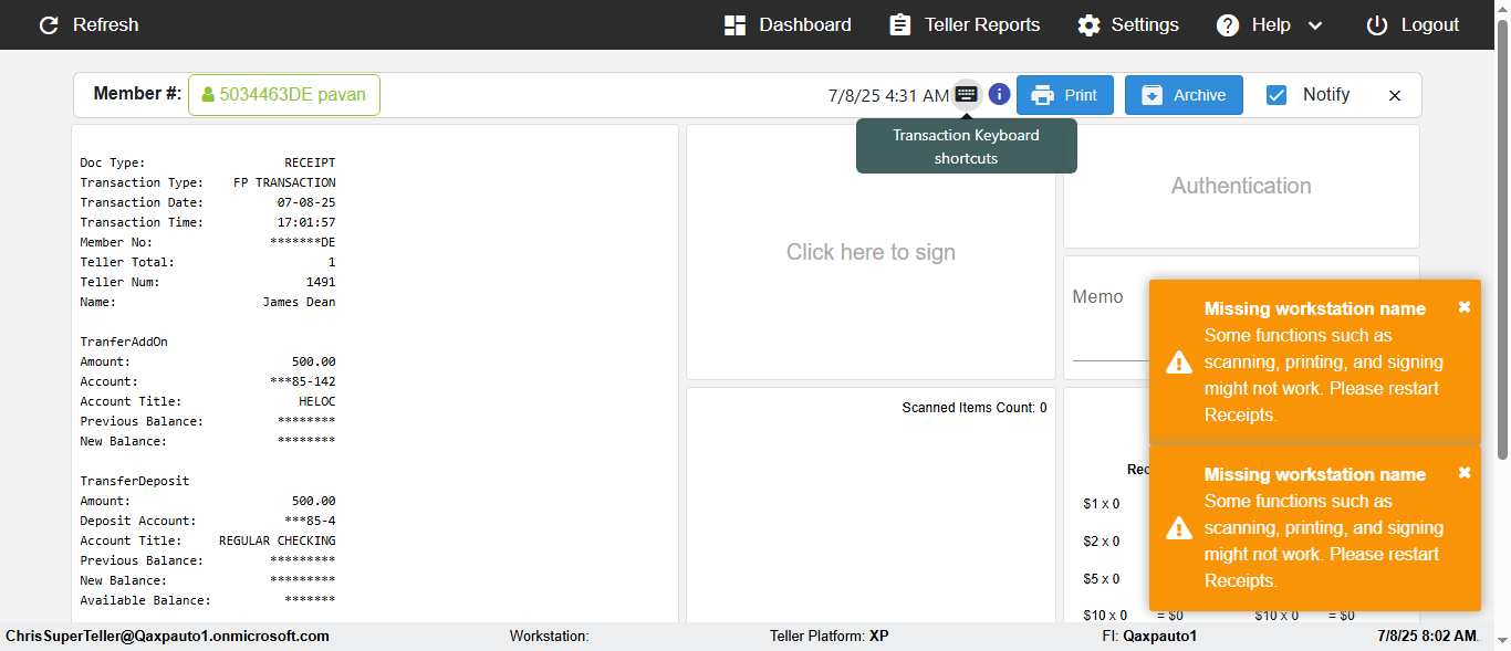 | {Toggel=, Archived Transactions=yes, Description=verify End TO End Test OF Normal Teller In Ereceipt Page, Email=FALSE, Archive=TRUE, Document Type=SSN, Notify=TRUE, SignatureTab=Touch,, DisbursedExpression=|-10*5, Operation=, Teller LastName=, Disbursed cash=1-1|2-2|5-2|10-1|20-2|50-1|100-1|Coins-3, errorint=, TestID=verifyEndTOEndTestOFNormalTellerInEreceipt, Print=FALSE, DisbursedExpressionValue=FALSE, Phone=(732) 890-6074, ReceivedCashValue=FALSE, Member=, UserPwd=iMM2022!, Transtatus=Archived-false;Active-true;Error-false, Docment ID=216554333, Teller=, Teller FirstName=, errorMessage=, ReceivedExpressionValue=TRUE, SecondName=, Date=, Platfrom=, Received cash=1-1|2-2|5-2|10-1|20-2|50-1|100-1|Coins-3, Transaction=, Header=, Expression=, Username=ChrisSuperTeller@Qaxpauto1.onmicrosoft.com, DisbursedCashValue=TRUE, FullName=, ReceivedExpression=|+100*2, SMS=FALSE, Memo=eReceipts Demo} |