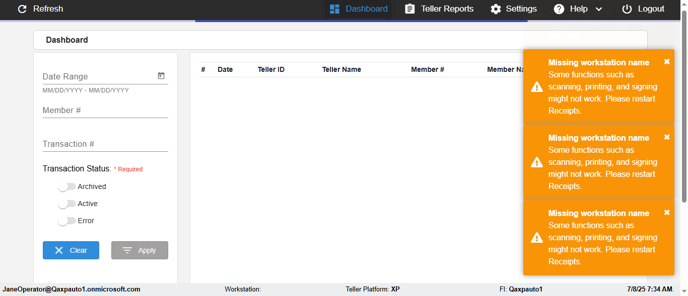 | {Toggel=, Archived Transactions=no, Description=verify UI Elements In Receipt Page, Email=, Archive=, Document Type=, Notify=, SignatureTab=, DisbursedExpression=, Operation=, Teller LastName=, Disbursed cash=, errorint=, TestID=verifyUIElementsInReceiptPage, Print=, DisbursedExpressionValue=, Phone=, ReceivedCashValue=, Member=, UserPwd=iMM2022!, Transtatus=Archived-false;Active-true;Error-false, Docment ID=, Teller=, Teller FirstName=, errorMessage=, ReceivedExpressionValue=, SecondName=, Date=, Platfrom=, Received cash=, Transaction=, Header=, Expression=, Username=ChrisSuperTeller@Qaxpauto1.onmicrosoft.com, DisbursedCashValue=, FullName=, ReceivedExpression=, SMS=, Memo=} |