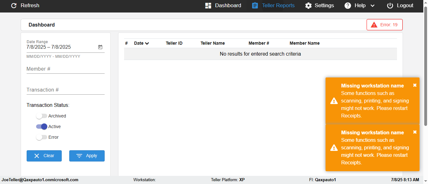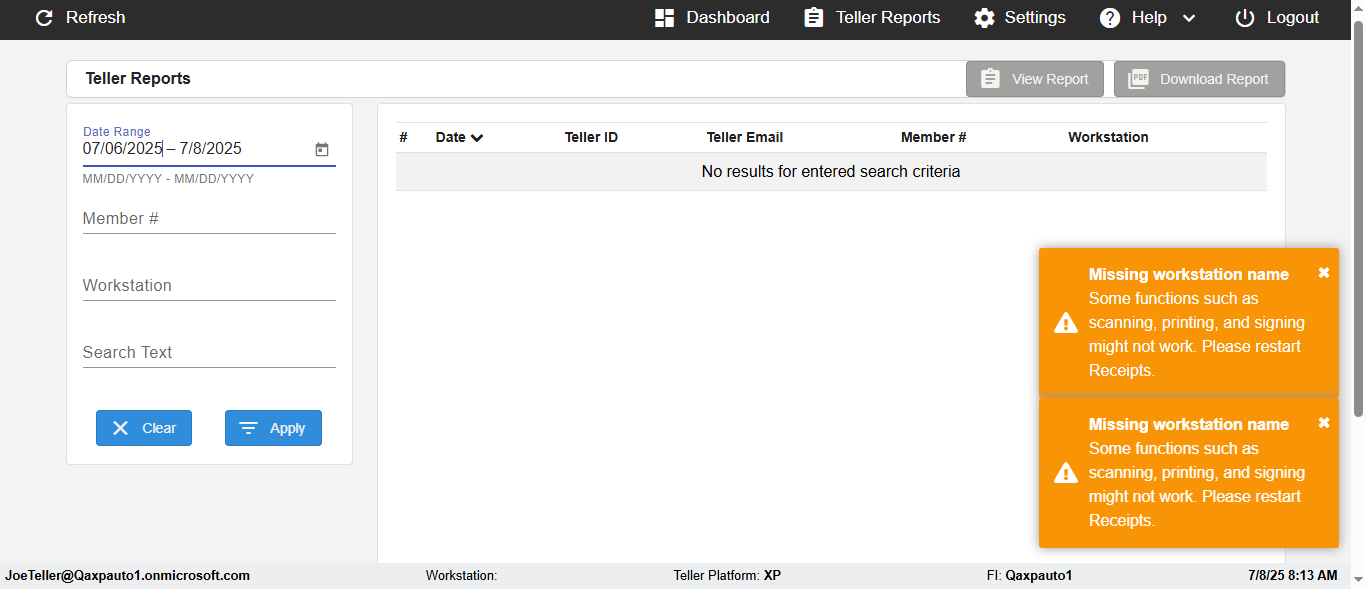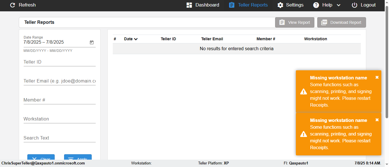 | {UserPwd=iMM2022!, Description=verify Search Elements In Report Page Teller ID, Teller ID=, errorMessage=, Teller Email=, View=, Date=2, Clear=, Workstation=, errorint=, TestID=verifySearchInReports, Transaction=, Header=, Username=JoeTeller@Qaxpauto1.onmicrosoft.com, Export=, Member #=5034463, Search Text=, Level=} |