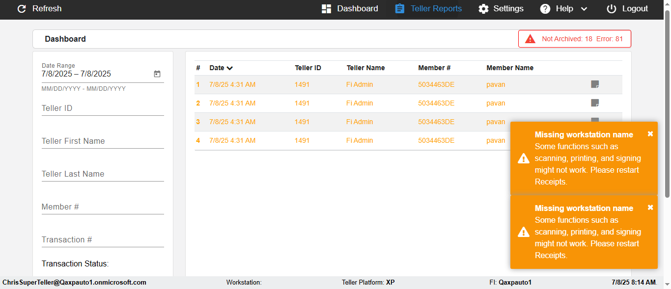 | {Description=verify Sorting In DashBoard - Date and Teller ID, Email=, Teller LastName=, print signatur=, errorint=, TestID=verifySortingInDashBoard, Color Transactions=No, Member=5034474, UserPwd=iMM2022!, Transtatus=Archived-false;Active-true;Error-false, Receipt=, Report=, Teller=, Teller FirstName=, errorMessage=, Suppress=, Date=11/01/2021 - 11/22/2021, print Disburstments=, Print signature line=, Type=, Transaction=, Header=Date,Teller ID,, Username=ChrisSuperTeller@Qaxpauto1.onmicrosoft.com, SMS=, Sign=, Scan=} |