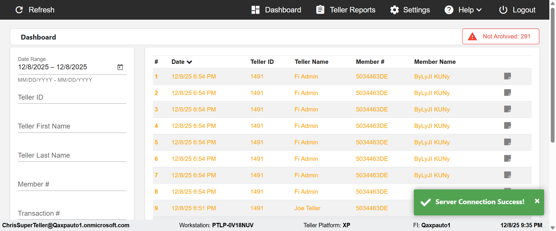 (Verify negative/invalid Search of the Date,Teller,Teller name,Member name in DashBoard page)