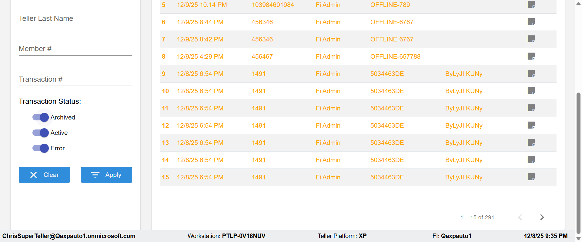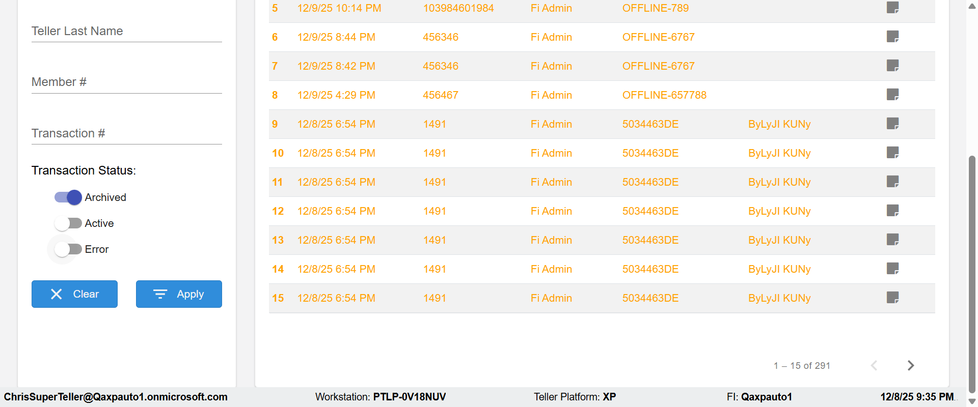 ({Description=Verify Transaction in Dashboard Page, Email=, Teller LastName=, print signatur=, errorint=, TestID=verifyFiltersInDashBoard, Color Transactions=All, Member=, UserPwd=iMM2022!, Transtatus=Archived-false;Active-true;Error-false, Receipt=, Report=, Teller=, Teller FirstName=, errorMessage=, Suppress=, Date=, print Disburstments=, Print signature line=, Type=, Transaction=2666c36b-8e1a-438b-91d8-b026da7e09af, Header=, Username=ChrisSuperTeller@Qaxpauto1.onmicrosoft.com, SMS=, Sign=, Scan=})