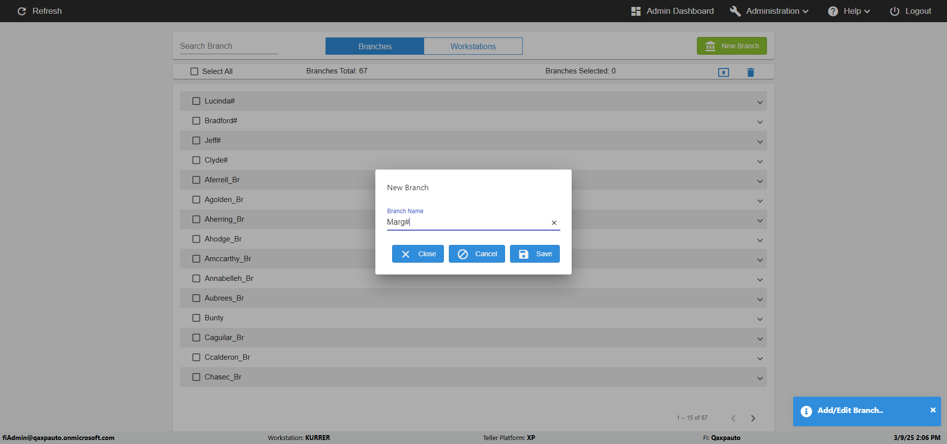 | {Archived Transactions=, Archive=, print signatur=, Name=, MultipleWorkstation=, WorkstationDeleteOption=, BranchName=RanBranch, Agent=, UserPwd=iMM2022!, BranchDeleteOption=True, Receipt=, Role=, Brand=, Print signature line=, TimeZone=, Header=, MappedOption=, Scan=, PortNumber=, FromWks=, FromBranch=, Description=Create Multiple Branches In Branches Page, weeks=, Operation=, Clear=, TestID=verifyAddMulitpleBrancesUsingJFairy, Phone=, WorkstationName=, ToBranch=, ToWks=, Subscription Names=, FilePath=, Transtatus=Archived-false;Active-true;Error-false, Report=, Index_Field_Name=, Agents=, Text=, Hold Notice=, Suppress=, SchedualType=, Date=, Platfrom=, GroupId=, print Disburstments=, SMTP=, Imaging System=, MultipleBranches=20, Username=fiAdmin@Qaxpauto.onmicrosoft.com, Sign=} |