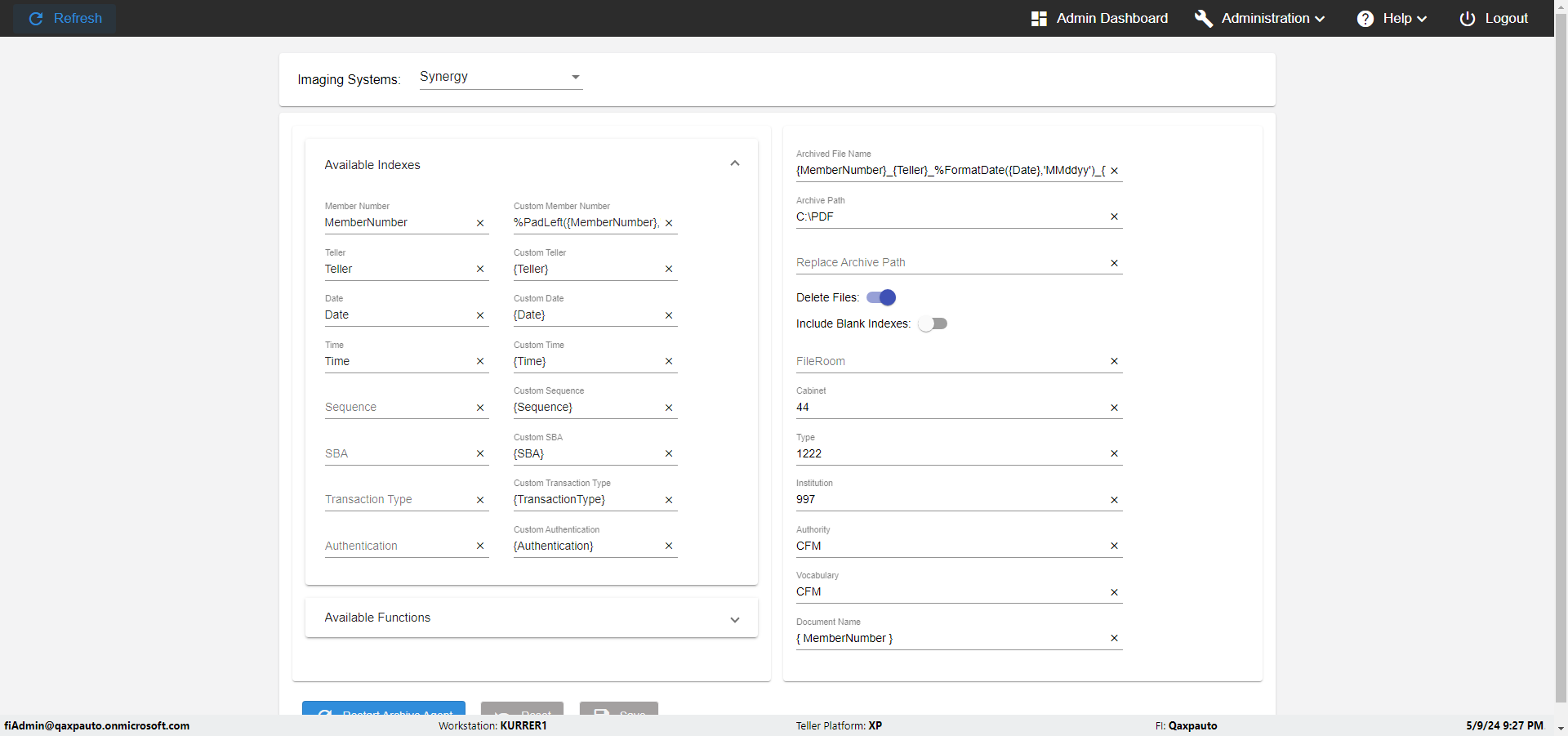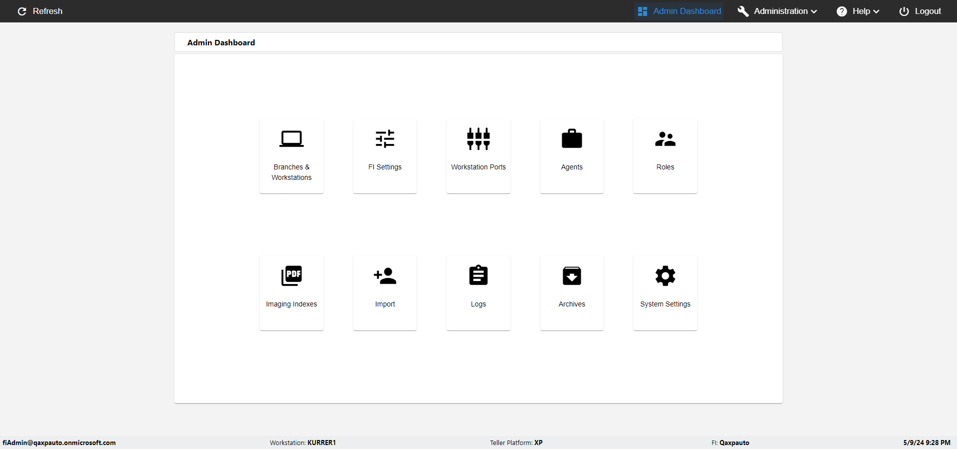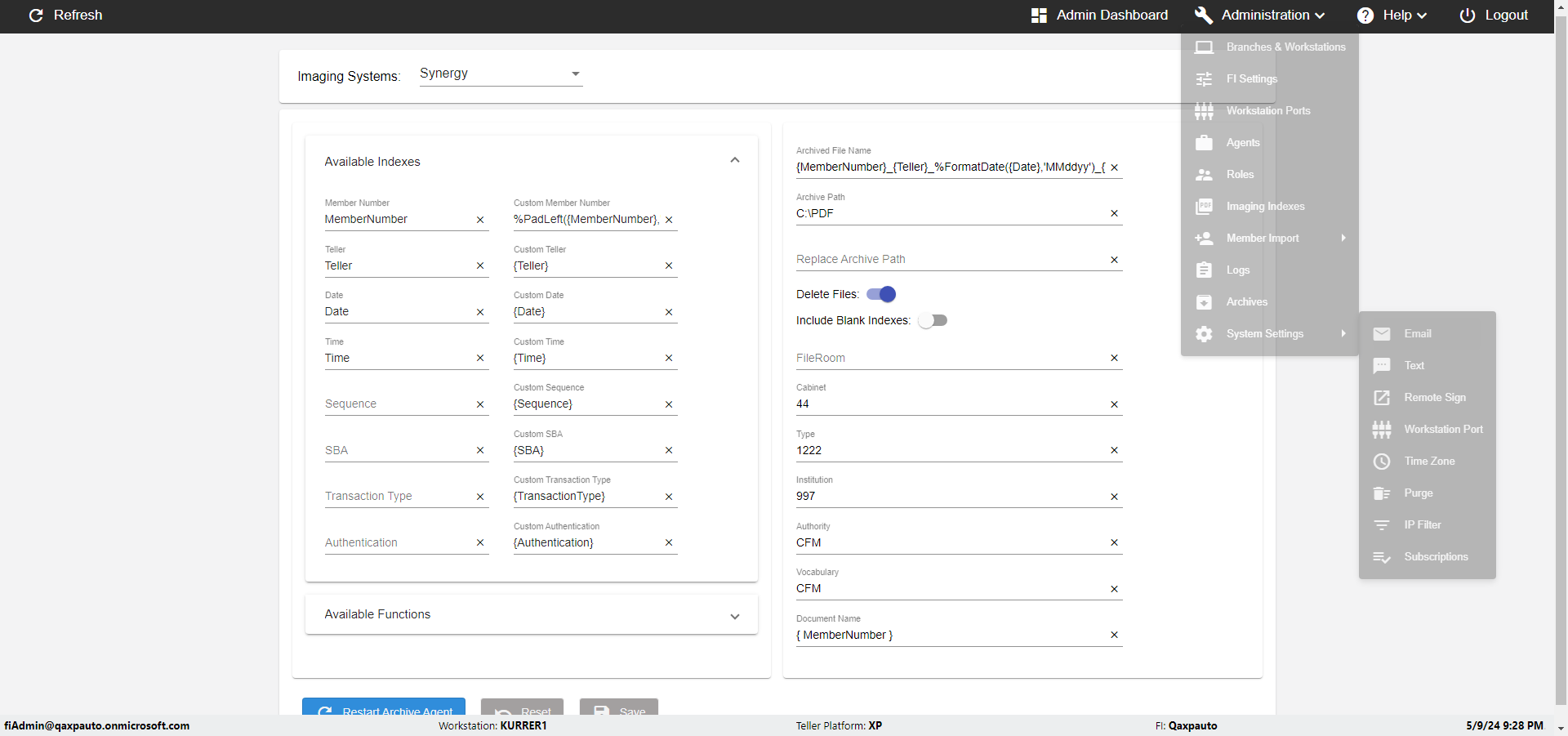 Control Panel, FI Management, Agents, Roles, Imaging Indexes, Member Import, Logging, Archives, About, Logout Actual(Passed): Successfully verified the Verfiy Administration menu has the following options- Control Panel, FI Management, Agents, Roles, Imaging Indexes, Member Import, Logging, Archives, About, Logout [ScreenShot] |