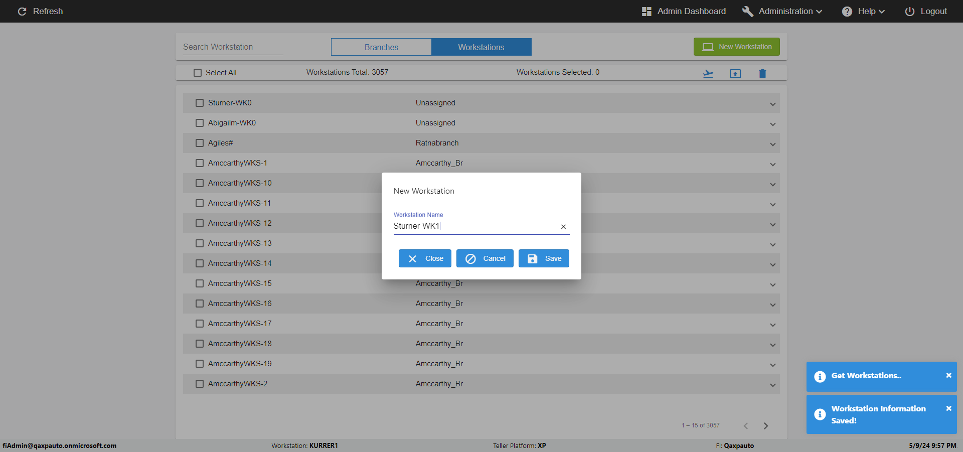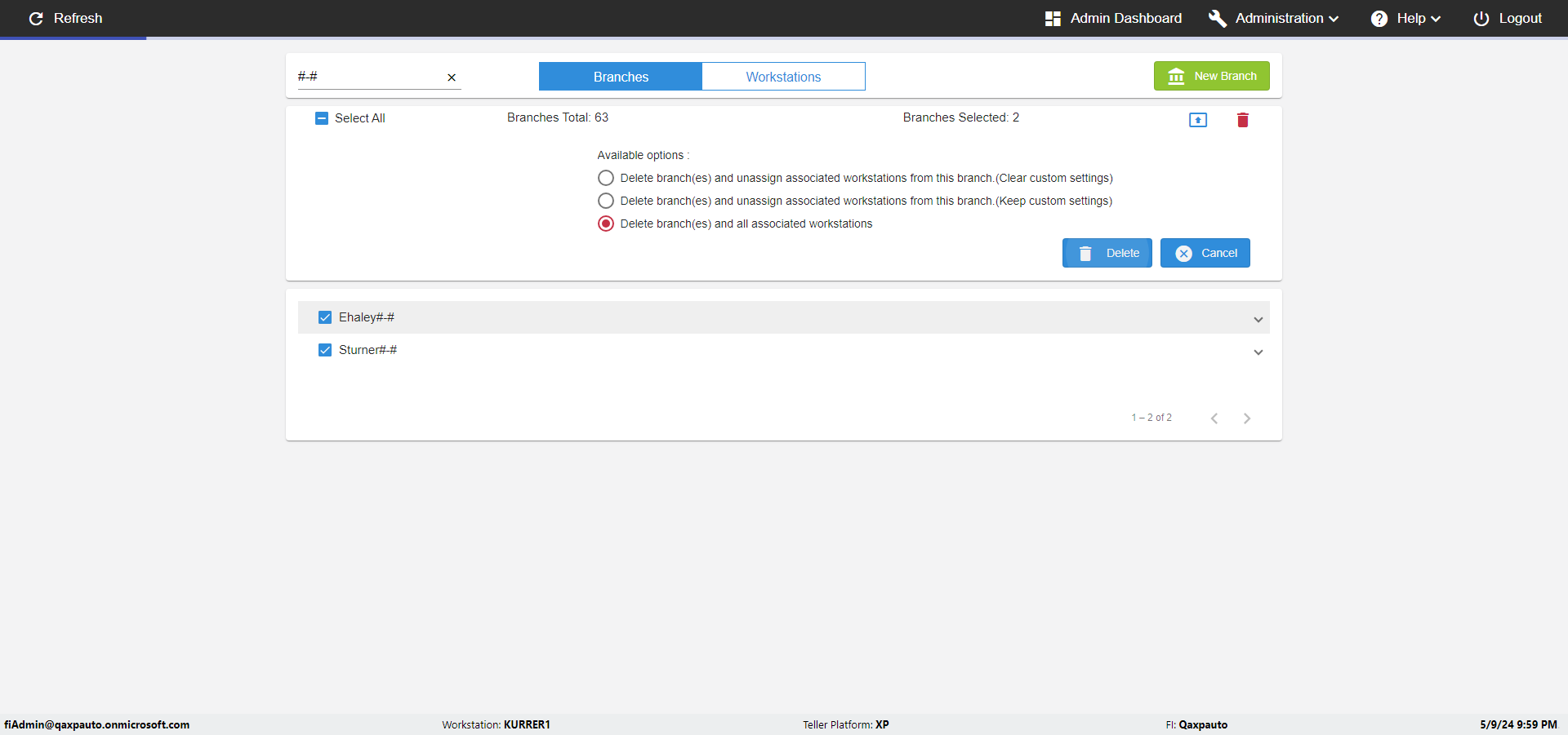 | 09:55:39 PM | ***** verify add workstations to multiple branches ***** | |