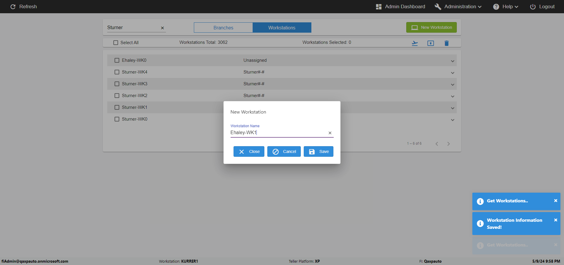 | 09:58:00 PM | Expected: verify the Move Workstation matching -Sturner#-# to BranchSturner#-# Actual(Passed): Successfully verified the Move [ScreenShot] |