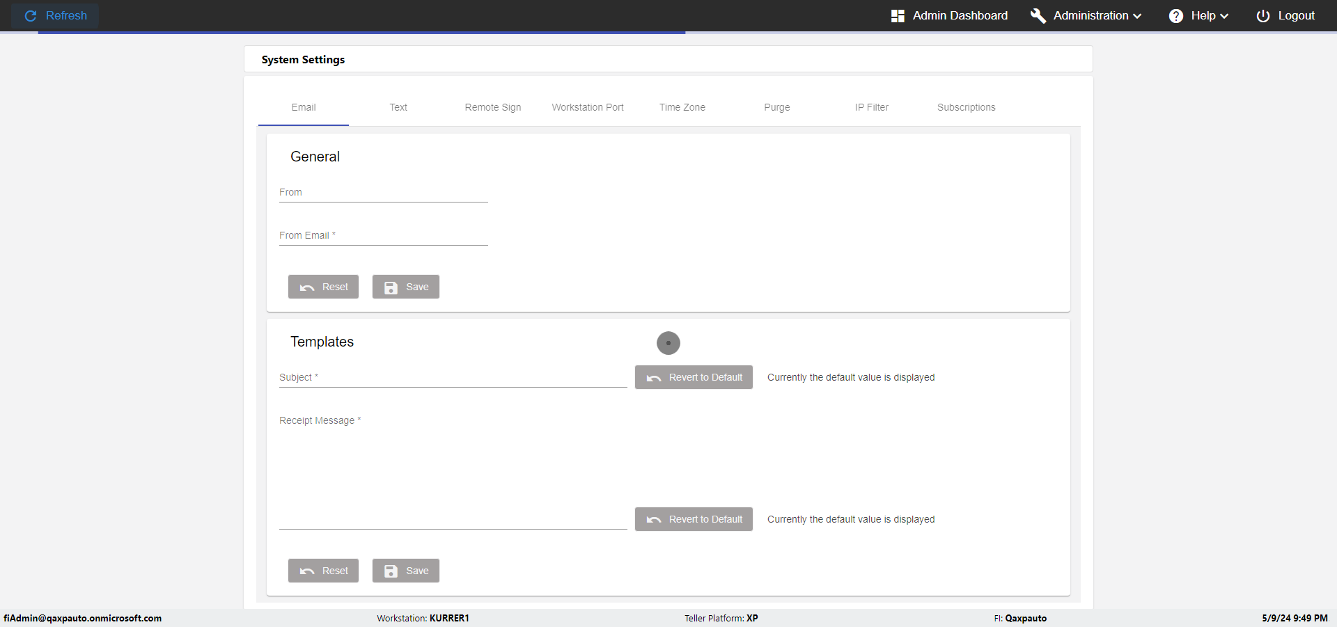 Control Panel, FI Management, Agents, Roles, Imaging Indexes, Member Import, Logging, Archives, About, Logout Actual(Passed): Successfully verified the Verfiy Administration menu has the following options- Control Panel, FI Management, Agents, Roles, Imaging Indexes, Member Import, Logging, Archives, About, Logout [ScreenShot] |
