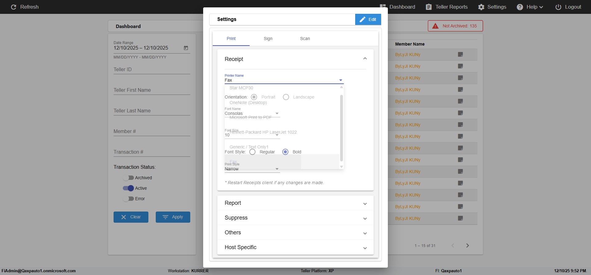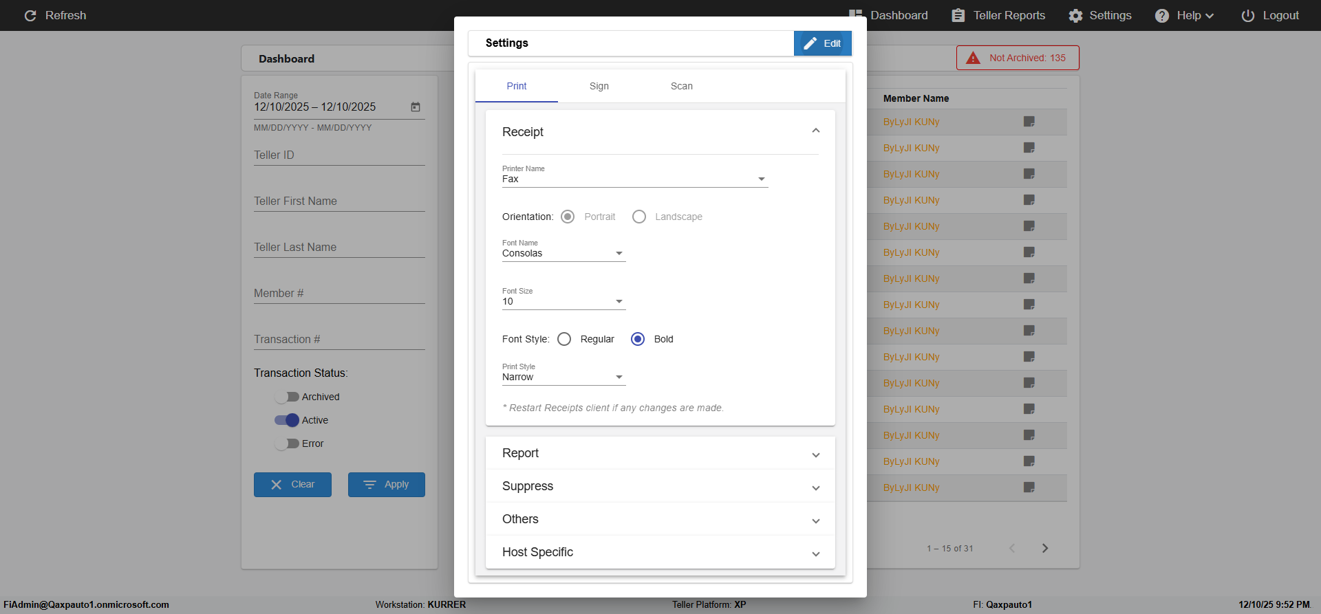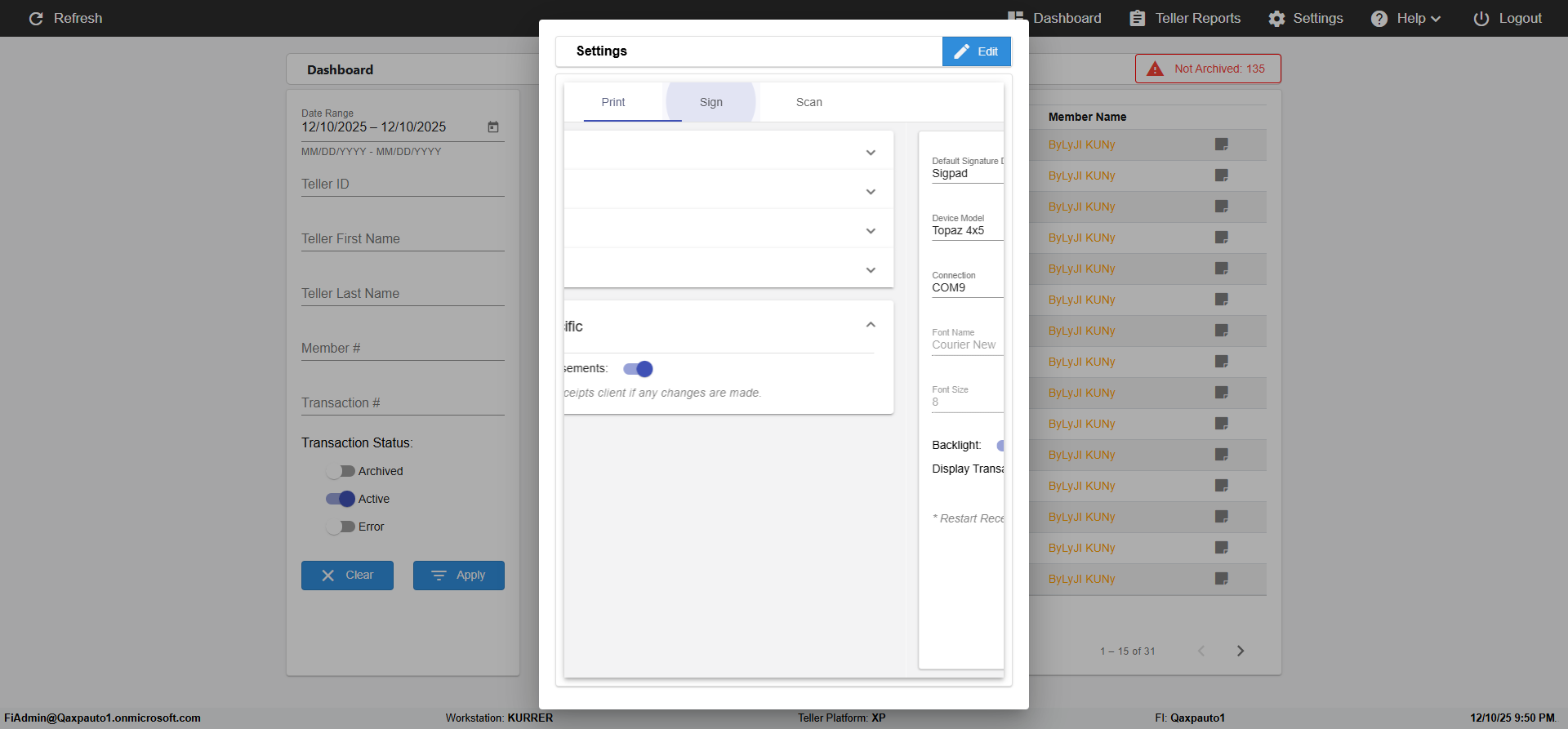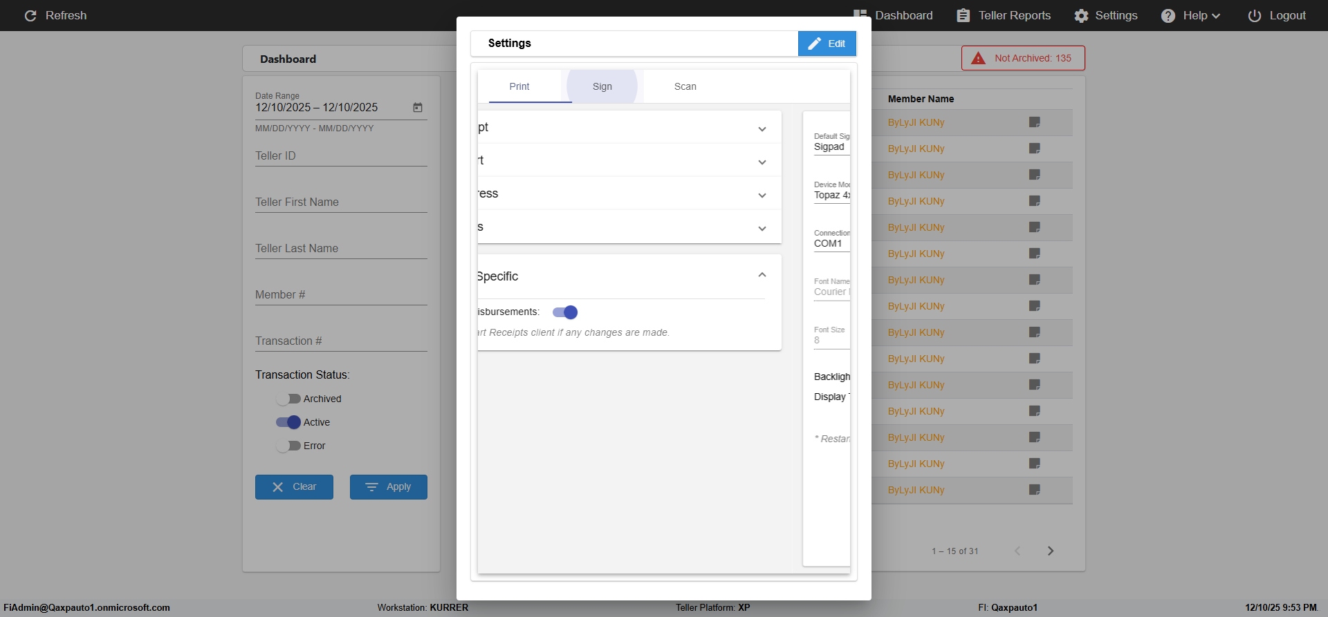 ({Description=verify Settings page In Teller Portal, Email=, Teller LastName=, print signatur=TRUE, errorint=, TestID=verifySettingsInTellerPage, Color Transactions=, Member=, UserPwd=iMM2022!, Transtatus=, Receipt=Printer Name-Fax;Name-Consolas;Size-10;Style-Bold,Narrow, Report=Printer Name-Fax;Orientation-Landscape;Name-Consolas;Size-10;Style-Bold, Teller=, Teller FirstName=, errorMessage=, Suppress=Log1-false;Log2-false;CuAddress-false;Member Address-false, Date=, print Disburstments=FALSE, Print signature line=print the sign, Type=, Transaction=, Header=, Username=fiAdmin@Qaxpauto1.onmicrosoft.com, SMS=, Sign=Default Signature Device-Sigpad;Device Model-Topaz 4x5;Connection-COM1;Backlight-true, Scan=Scanner Type-ScanShell 3000D;Image Mode-Singleside;USB Connection-false})