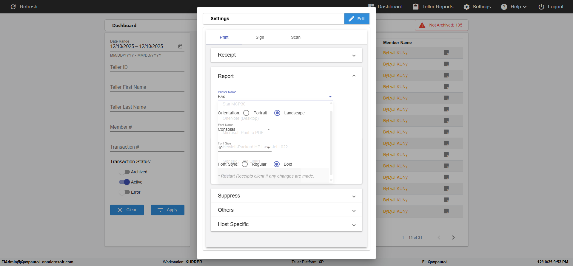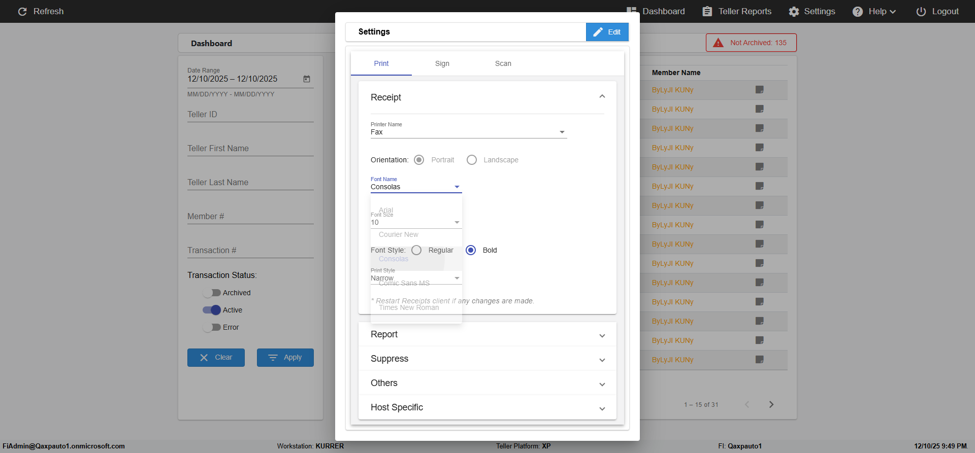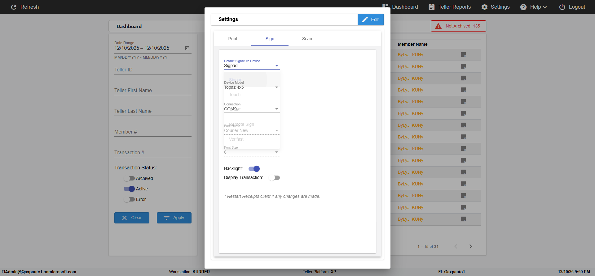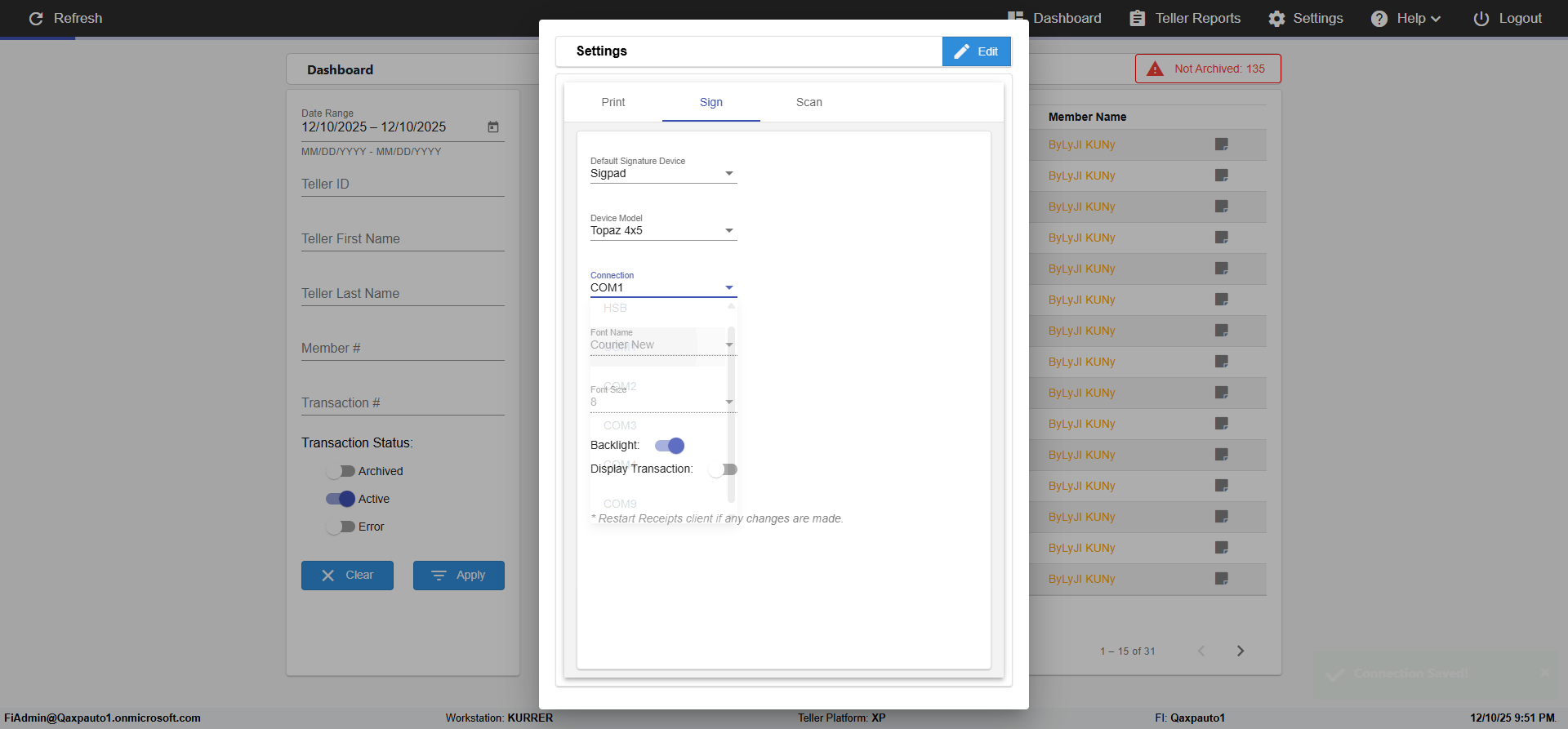 ({Description=verify Settings page In Teller Portal, Email=, Teller LastName=, print signatur=TRUE, errorint=, TestID=verifySettingsInTellerPage, Color Transactions=, Member=, UserPwd=iMM2022!, Transtatus=, Receipt=Printer Name-Fax;Name-Consolas;Size-10;Style-Bold,Narrow, Report=Printer Name-Fax;Orientation-Landscape;Name-Consolas;Size-10;Style-Bold, Teller=, Teller FirstName=, errorMessage=, Suppress=Log1-false;Log2-false;CuAddress-false;Member Address-false, Date=, print Disburstments=FALSE, Print signature line=print the sign, Type=, Transaction=, Header=, Username=fiAdmin@Qaxpauto1.onmicrosoft.com, SMS=, Sign=Default Signature Device-Sigpad;Device Model-Topaz 4x5;Connection-COM1;Backlight-true, Scan=Scanner Type-ScanShell 3000D;Image Mode-Singleside;USB Connection-false})