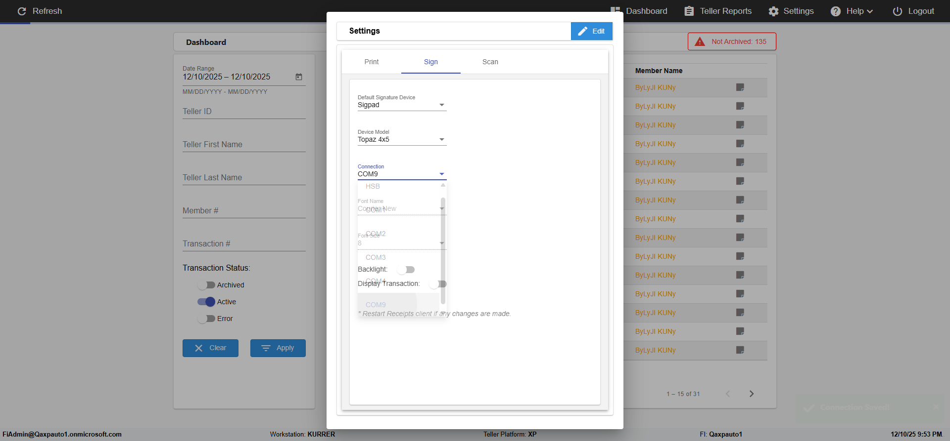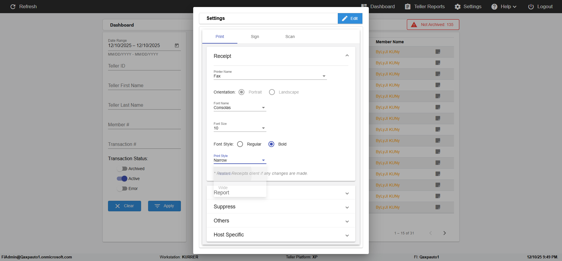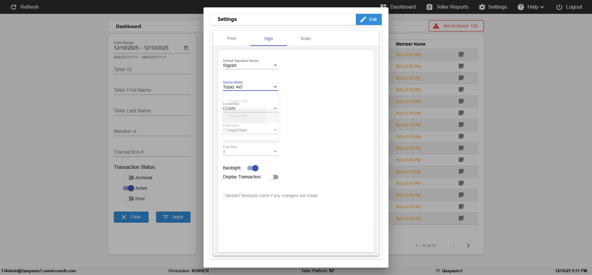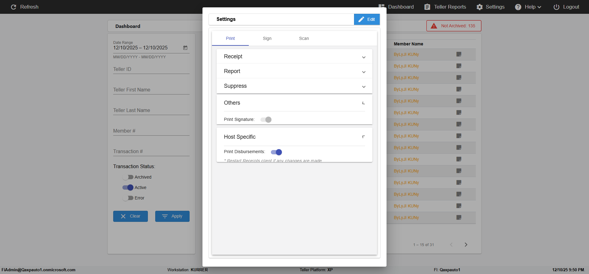 ({Description=verify Settings page In Teller Portal, Email=, Teller LastName=, print signatur=TRUE, errorint=, TestID=verifySettingsInTellerPage, Color Transactions=, Member=, UserPwd=iMM2022!, Transtatus=, Receipt=Printer Name-Fax;Name-Consolas;Size-10;Style-Bold,Narrow, Report=Printer Name-Fax;Orientation-Landscape;Name-Consolas;Size-10;Style-Bold, Teller=, Teller FirstName=, errorMessage=, Suppress=Log1-false;Log2-false;CuAddress-false;Member Address-false, Date=, print Disburstments=FALSE, Print signature line=print the sign, Type=, Transaction=, Header=, Username=fiAdmin@Qaxpauto1.onmicrosoft.com, SMS=, Sign=Default Signature Device-Sigpad;Device Model-Topaz 4x5;Connection-COM1;Backlight-true, Scan=Scanner Type-ScanShell 3000D;Image Mode-Singleside;USB Connection-false})