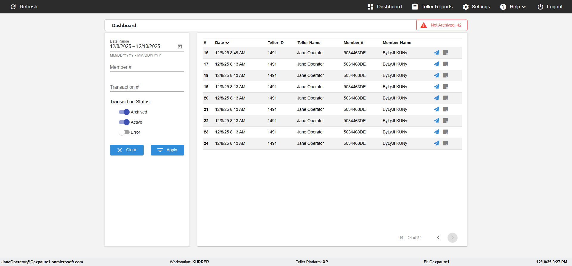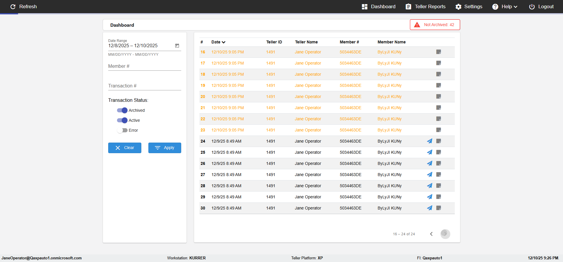 (Verify negative/invalid Search of the Date,Teller,Teller name,Member name in DashBoard page)