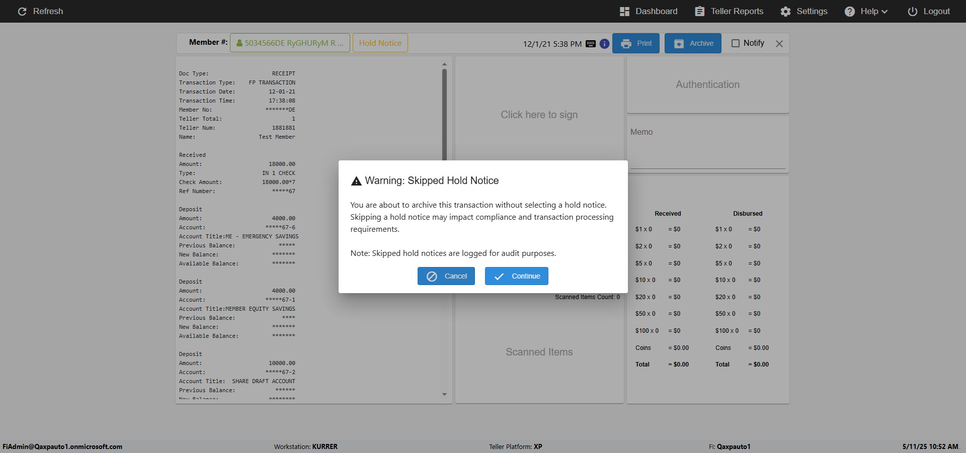 ({Toggel=, Archived Transactions=no, Description=verify Hold Notice Warning Message displayed when warning is enabled, Email=, Archive=, Document Type=, Notify=, SignatureTab=, DisbursedExpression=, Operation=, Teller LastName=, Disbursed cash=, errorint=, TestID=verifyHoldNoticeWarningWithoutReasons, Print=, DisbursedExpressionValue=, Phone=, ReceivedCashValue=, Member=5034566, UserPwd=iMM2022!, Transtatus=Archived-false;Active-true;Error-false, Docment ID=, Teller=1881881, Teller FirstName=, errorMessage=, ReceivedExpressionValue=, SecondName=, Date=, Platfrom=Enable Hold Notice-true; Hold Notice Warning-true;, Received cash=, Transaction=, Header=, Expression=, Username=fiAdmin@Qaxpauto1.onmicrosoft.com, DisbursedCashValue=, FullName=, ReceivedExpression=, SMS=, Memo=})