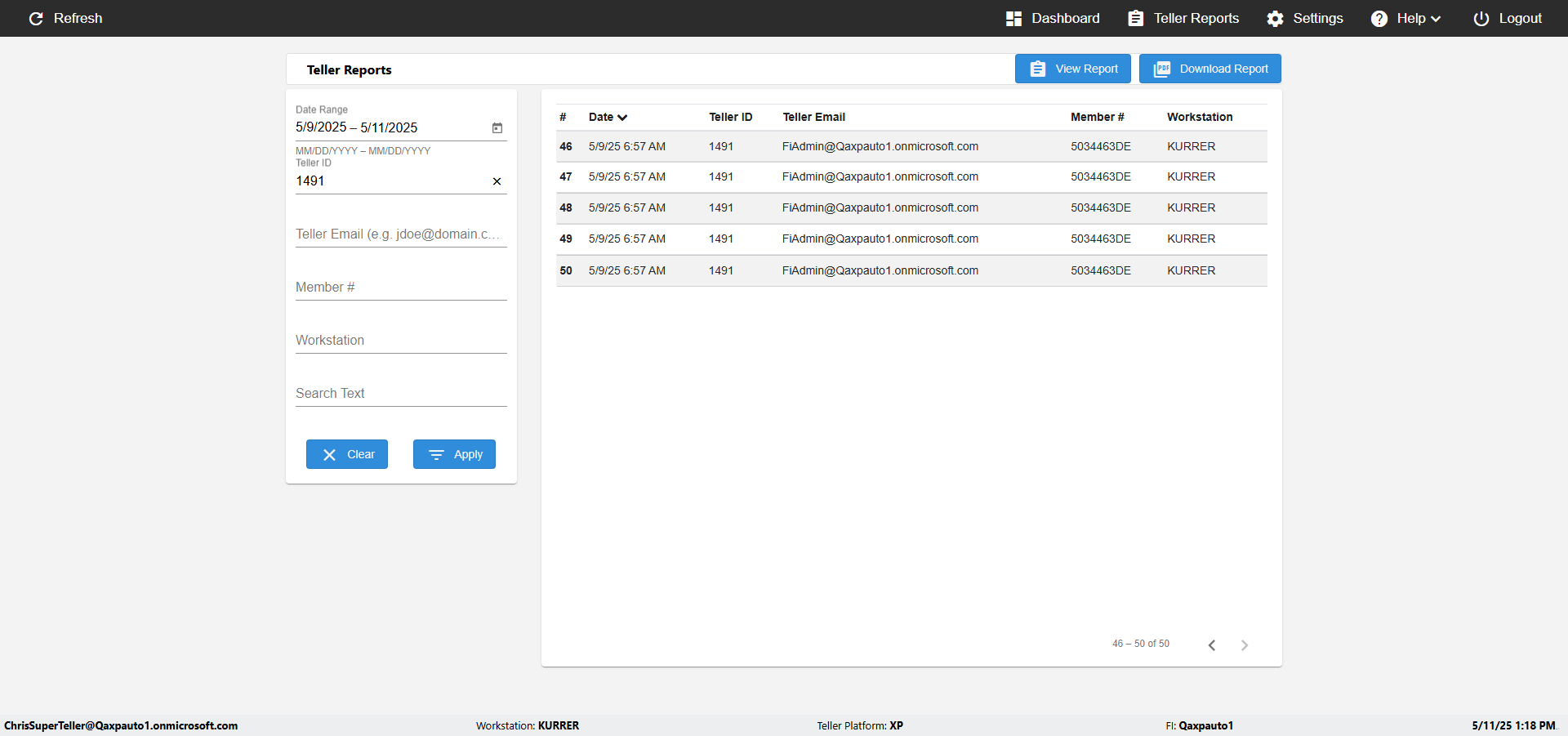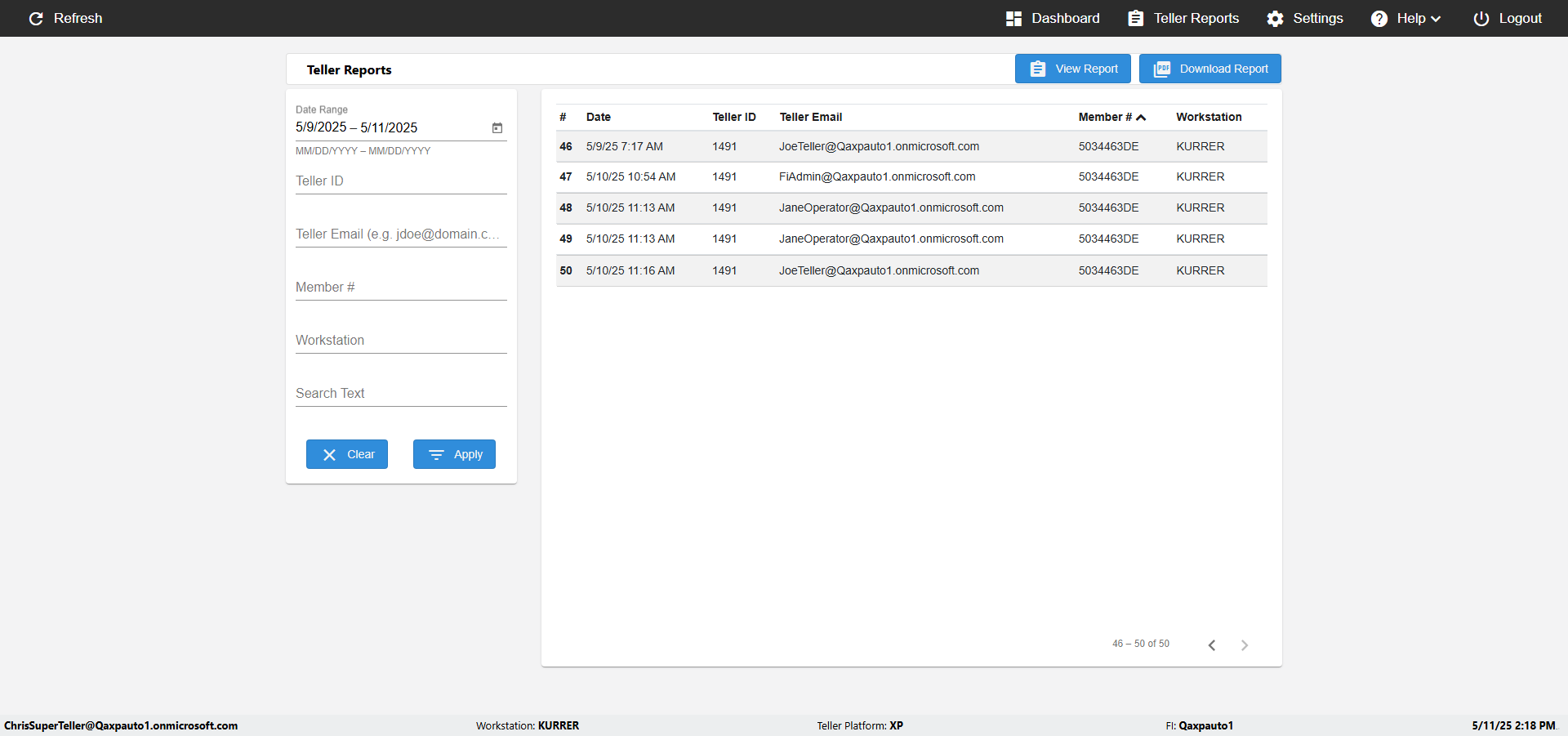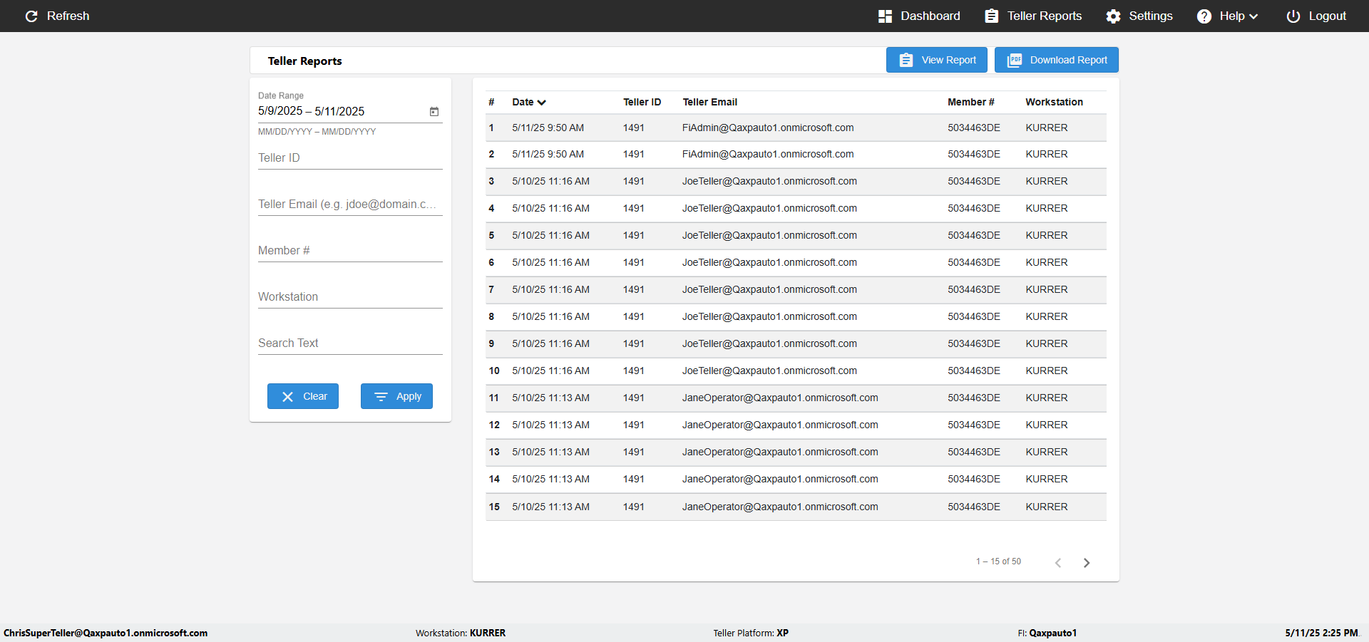 --- 11 May 13:46:32 025 - Page URL:: https://er-tellerportal-demo.azurewebsites.net/reports
