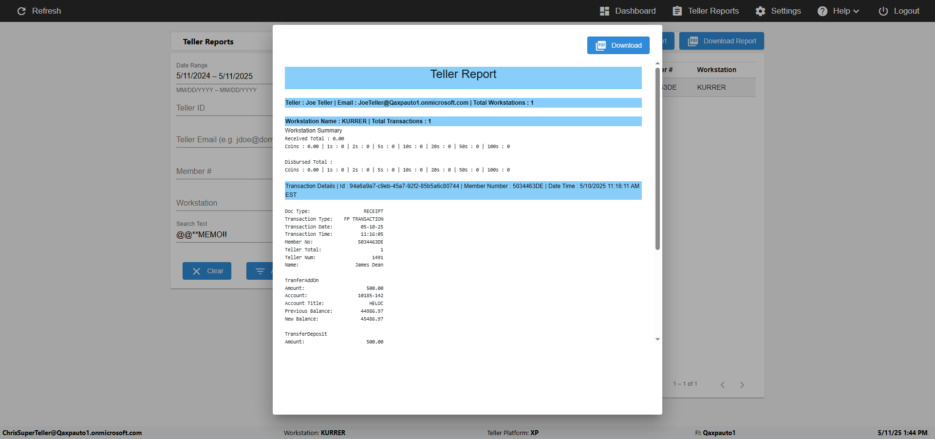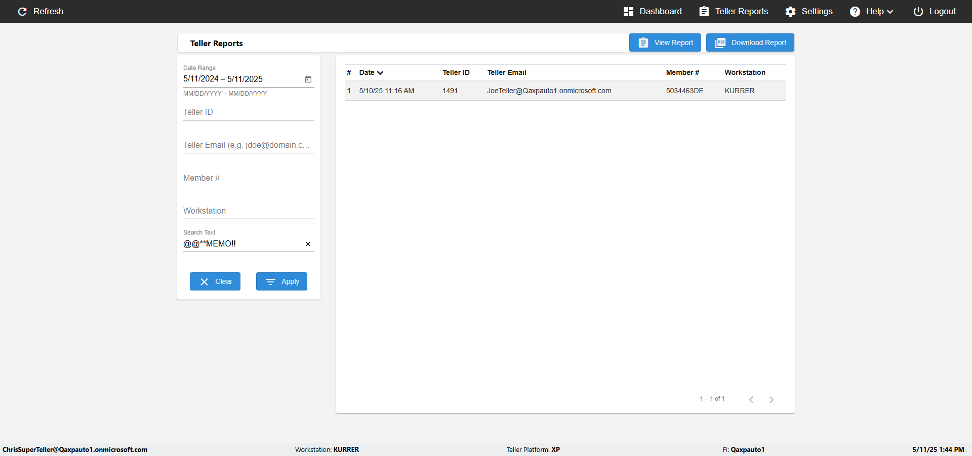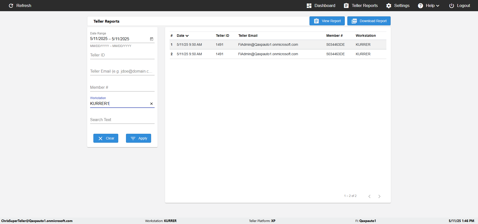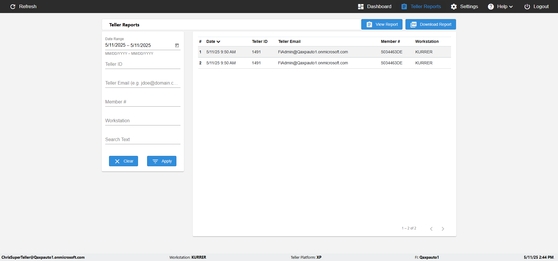 --- 11 May 13:46:32 025 - Page URL:: https://er-tellerportal-demo.azurewebsites.net/reports