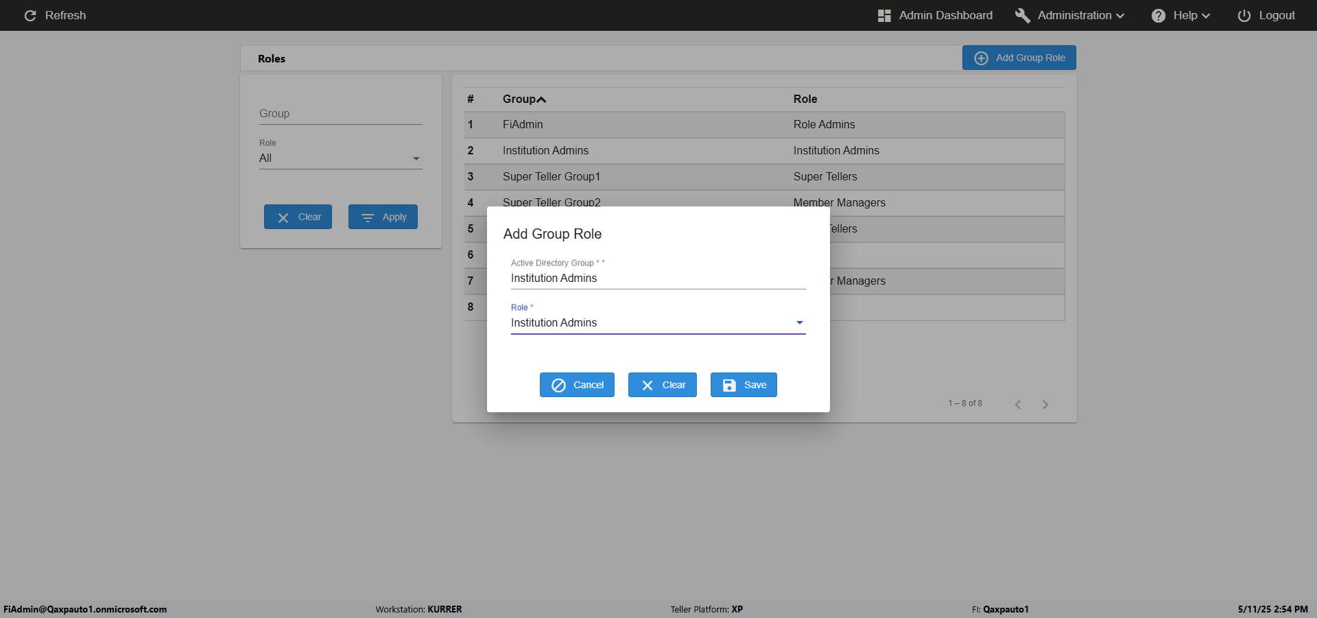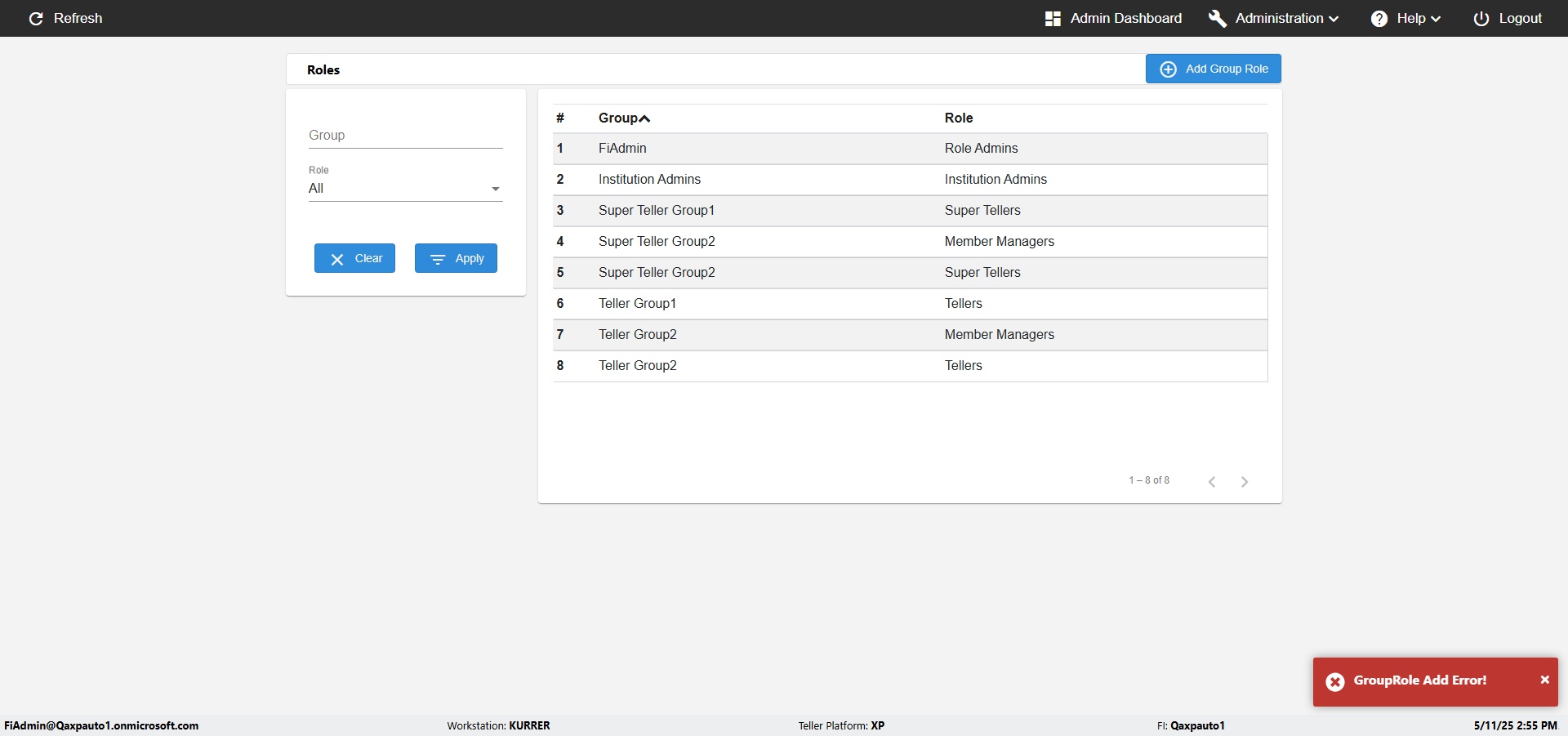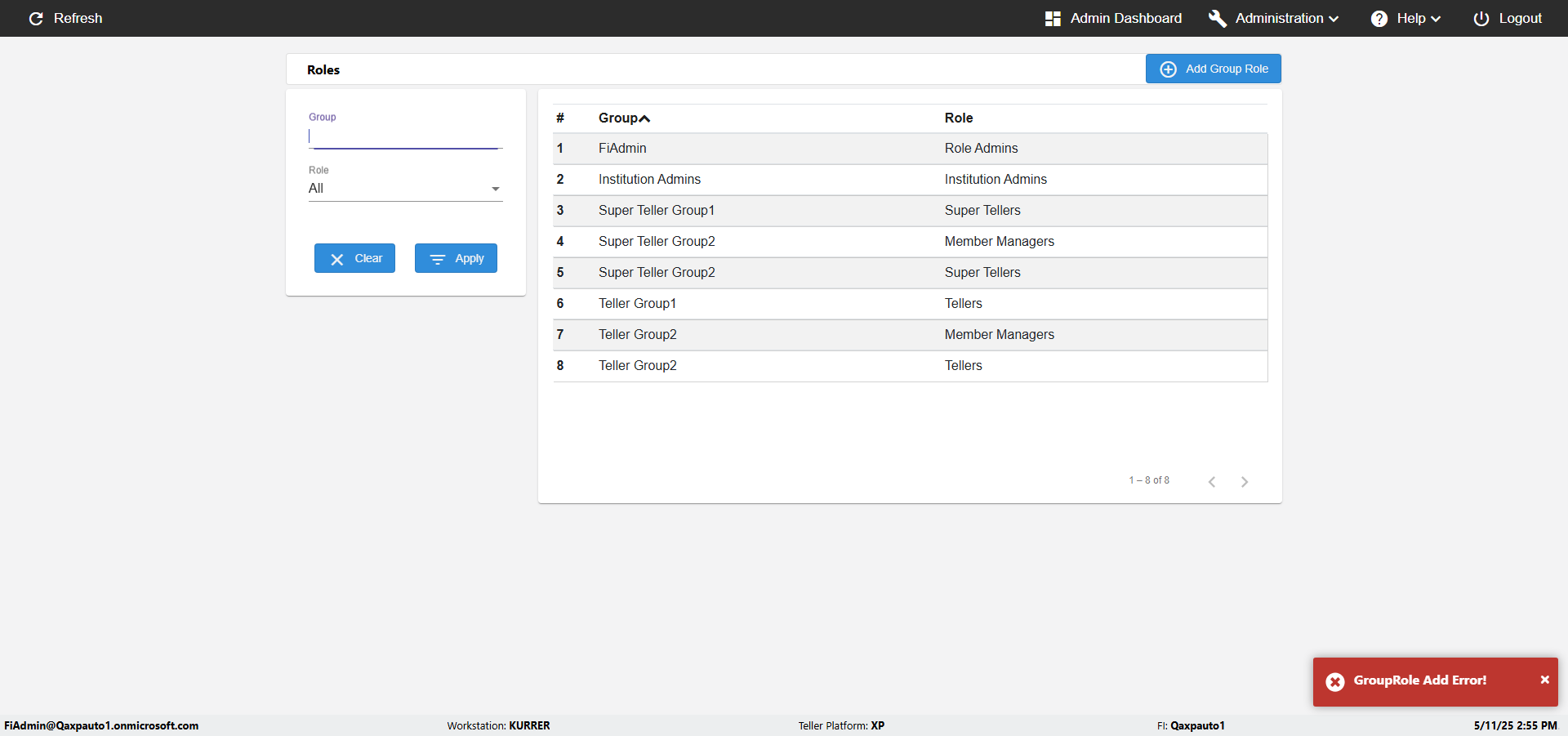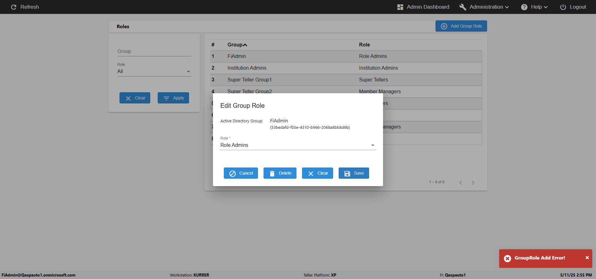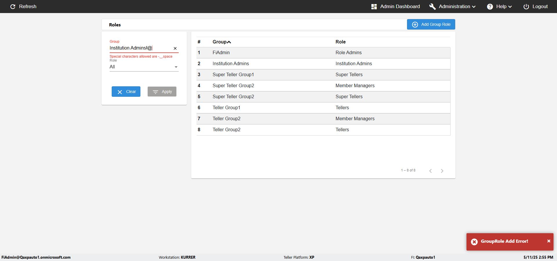 ({Archived Transactions=, Archive=, print signatur=, Name=Institution Admins, MultipleWorkstation=, WorkstationDeleteOption=, BranchName=, Agent=, UserPwd=iMM2022!, BranchDeleteOption=, Receipt=, Role=Institution Admins, Brand=, Print signature line=, TimeZone=, Header=, MappedOption=, Scan=, PortNumber=, FromWks=, FromBranch=, Description=verify Add Group Functionality In Roles Page, weeks=, Operation=, Clear=, TestID=createAddGroupInRolesPage, Phone=, WorkstationName=, ToBranch=, ToWks=, Subscription Names=, FilePath=, Transtatus=Archived-false;Active-true;Error-false, Report=, Index_Field_Name=, Agents=, Text=, Hold Notice=, Suppress=, SchedualType=, Date=, Platfrom=, GroupId=5774cbdb-87be-4a5c-9059-a22e15202175, print Disburstments=, SMTP=, Imaging System=, MultipleBranches=, Username=fiAdmin@Qaxpauto1.onmicrosoft.com, Sign=})