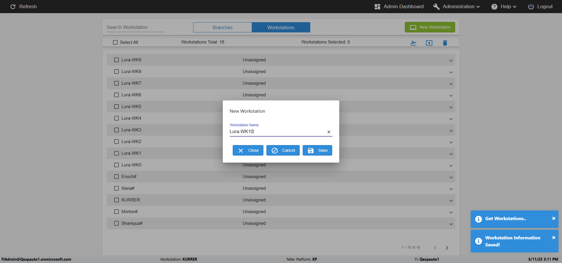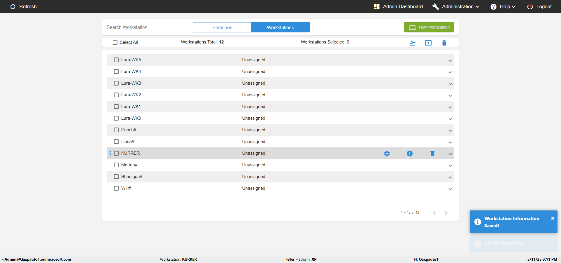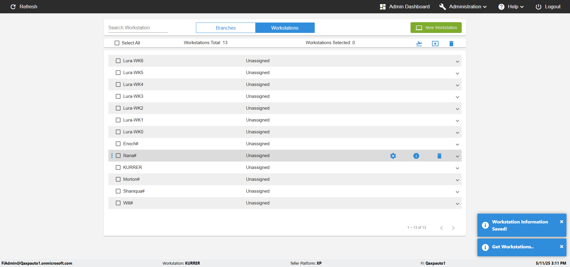 Actual(Passed): Successfully verified the Edited Workstation name Saved in 'Workstations' page[ScreenShot]
