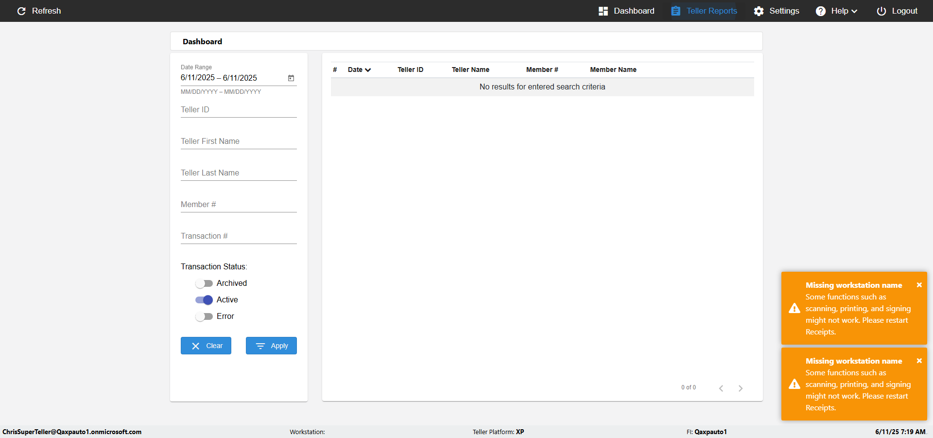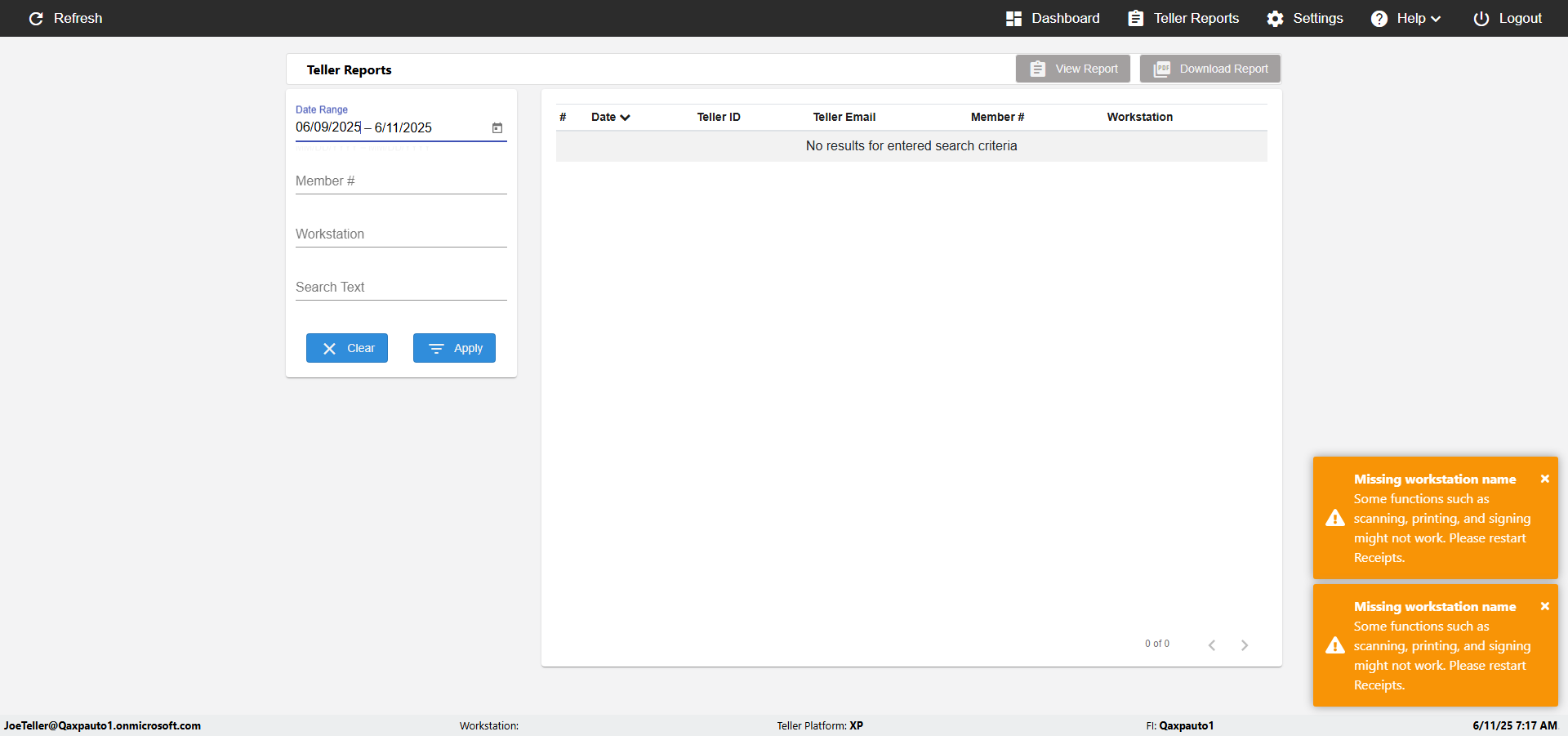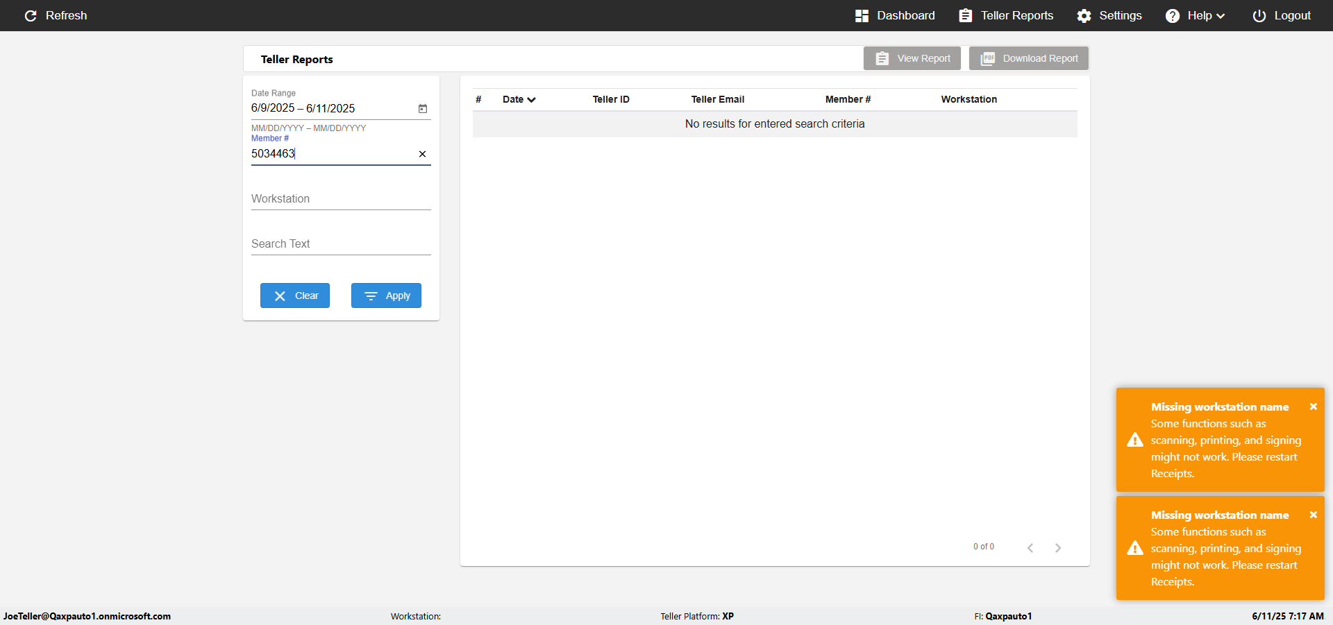 | {UserPwd=iMM2022!, Description=verify Search Elements In Report Page Teller ID, Teller ID=, errorMessage=, Teller Email=, View=, Date=2, Clear=, Workstation=, errorint=, TestID=verifySearchInReports, Transaction=, Header=, Username=JoeTeller@Qaxpauto1.onmicrosoft.com, Export=, Member #=5034463, Search Text=, Level=} |
