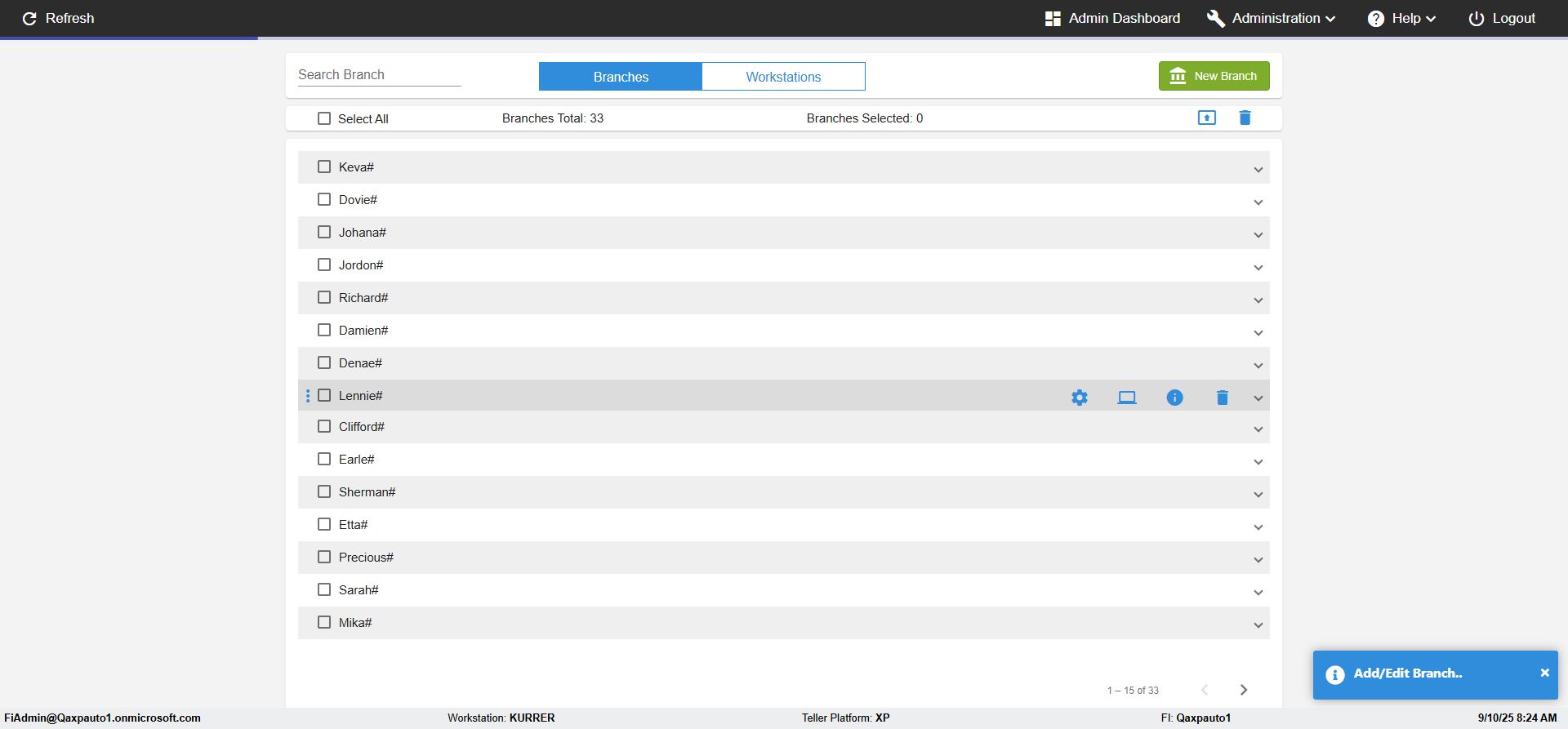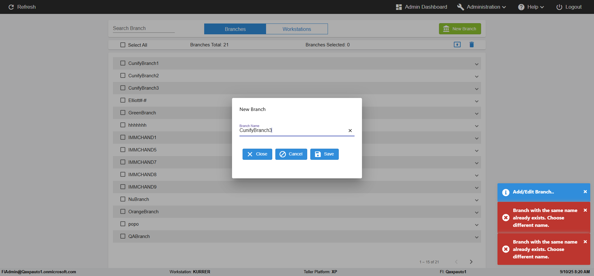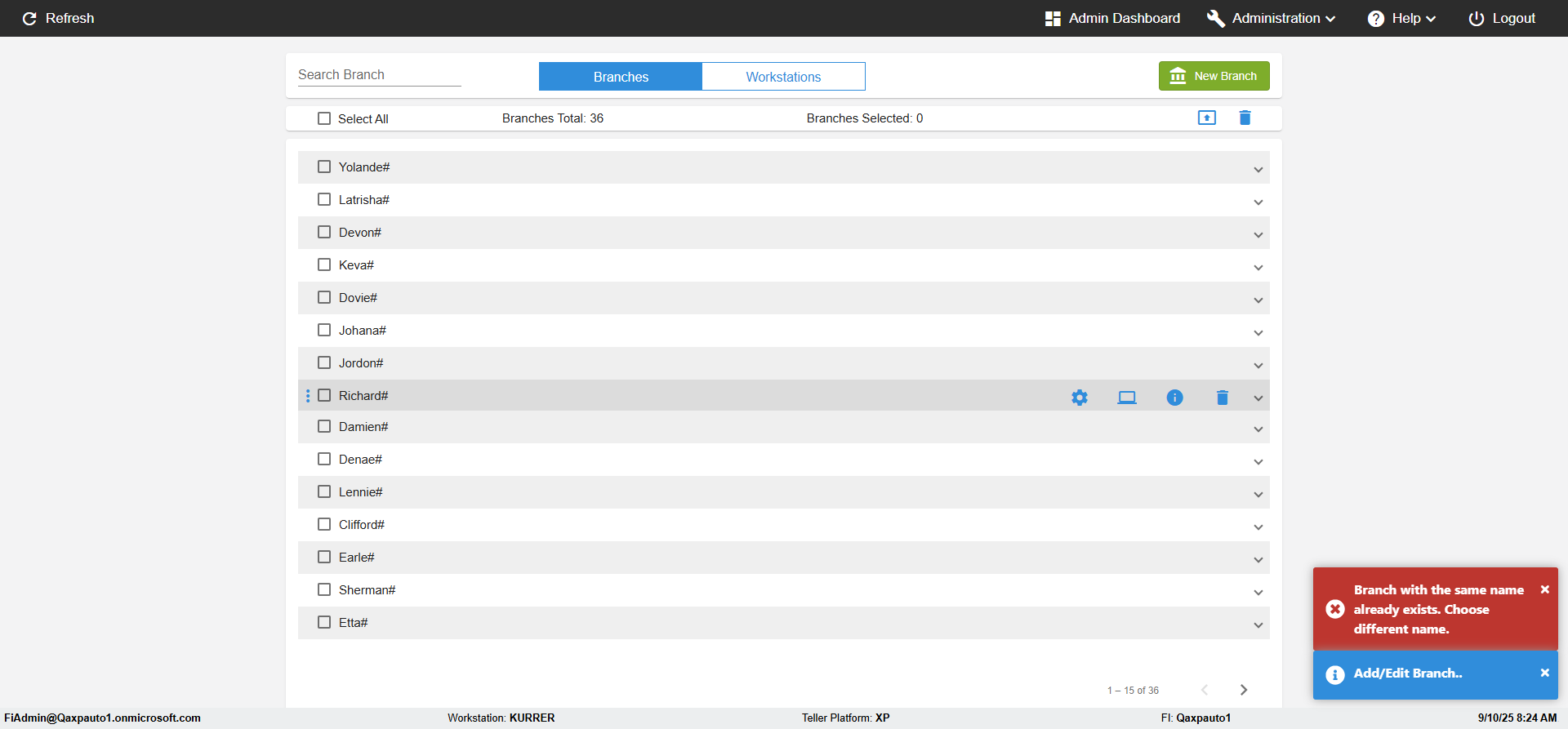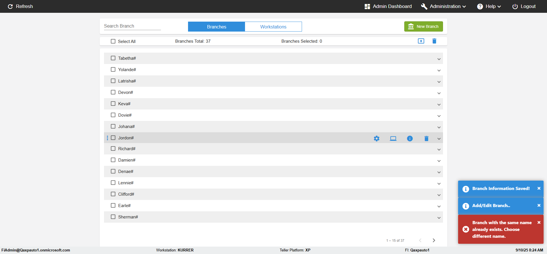 | 07:50:13 AM | Successfully navigated to the 'Branches' page [ScreenShot] | |