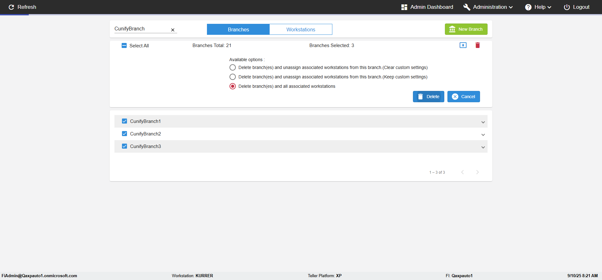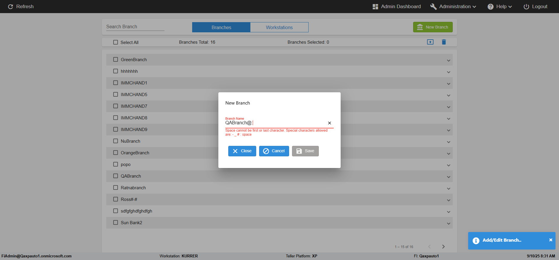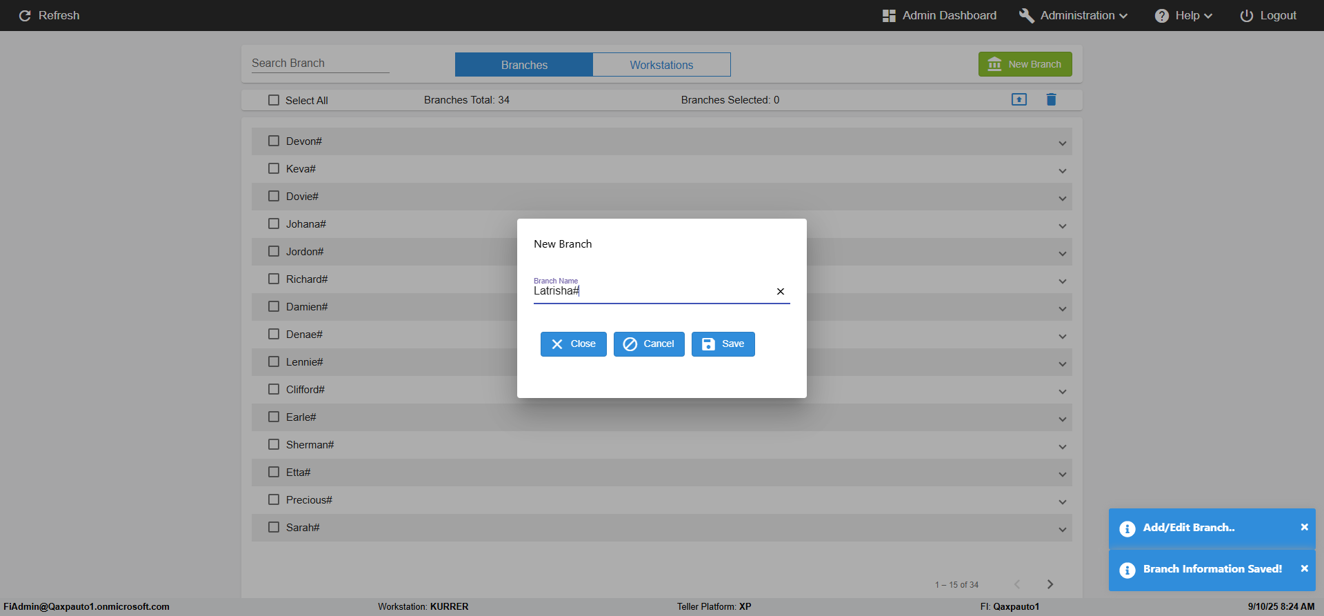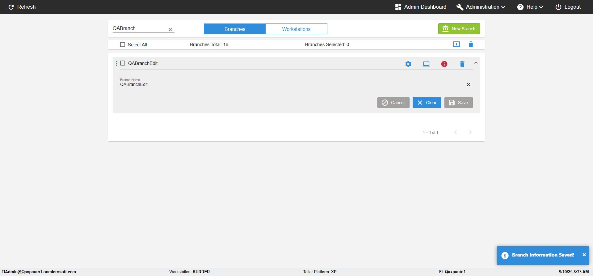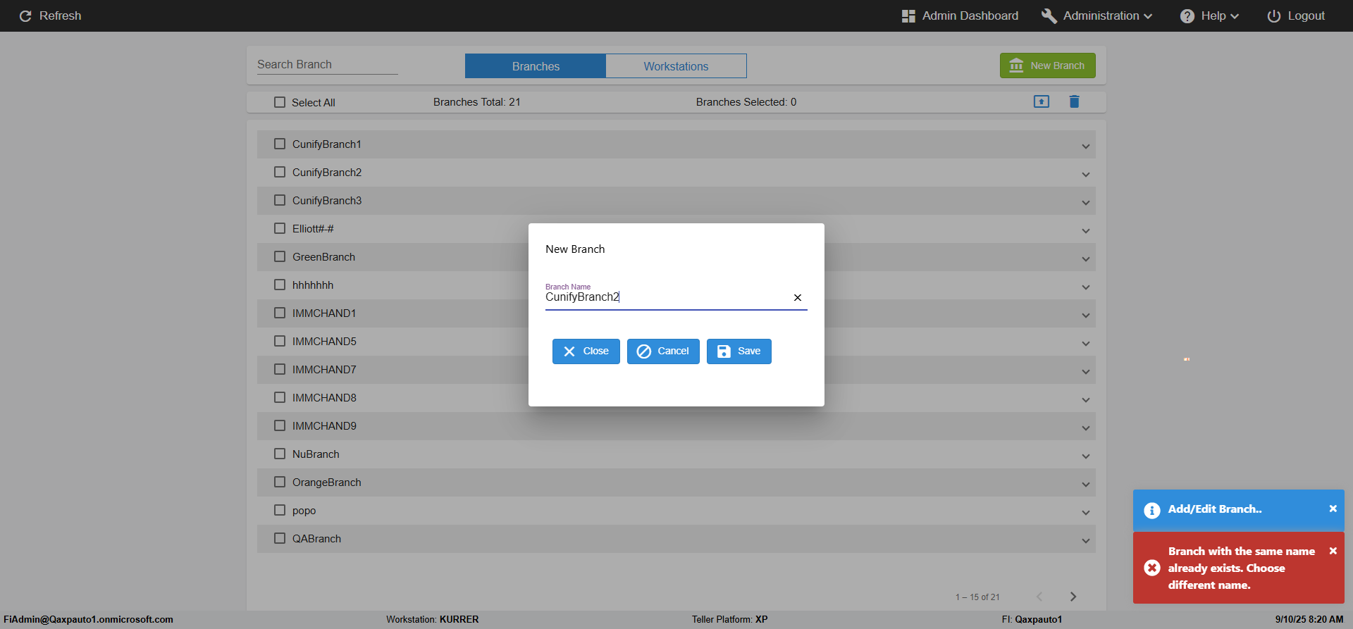 | 07:50:13 AM | Successfully navigated to the 'Branches' page [ScreenShot] | |