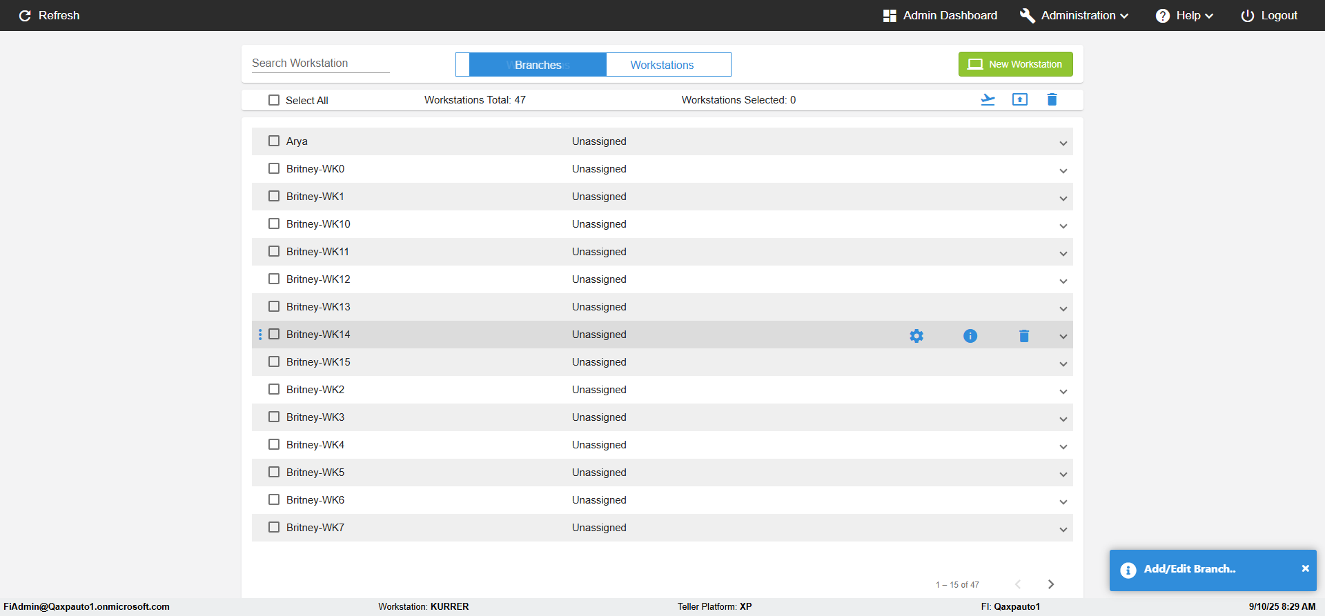 | 07:46:53 AM | Expected: verify the Edit Workstation name Saved in 'Workstations' page Actual(Passed): Successfully verified the Edited Workstation name Saved in 'Workstations' page [ScreenShot] |