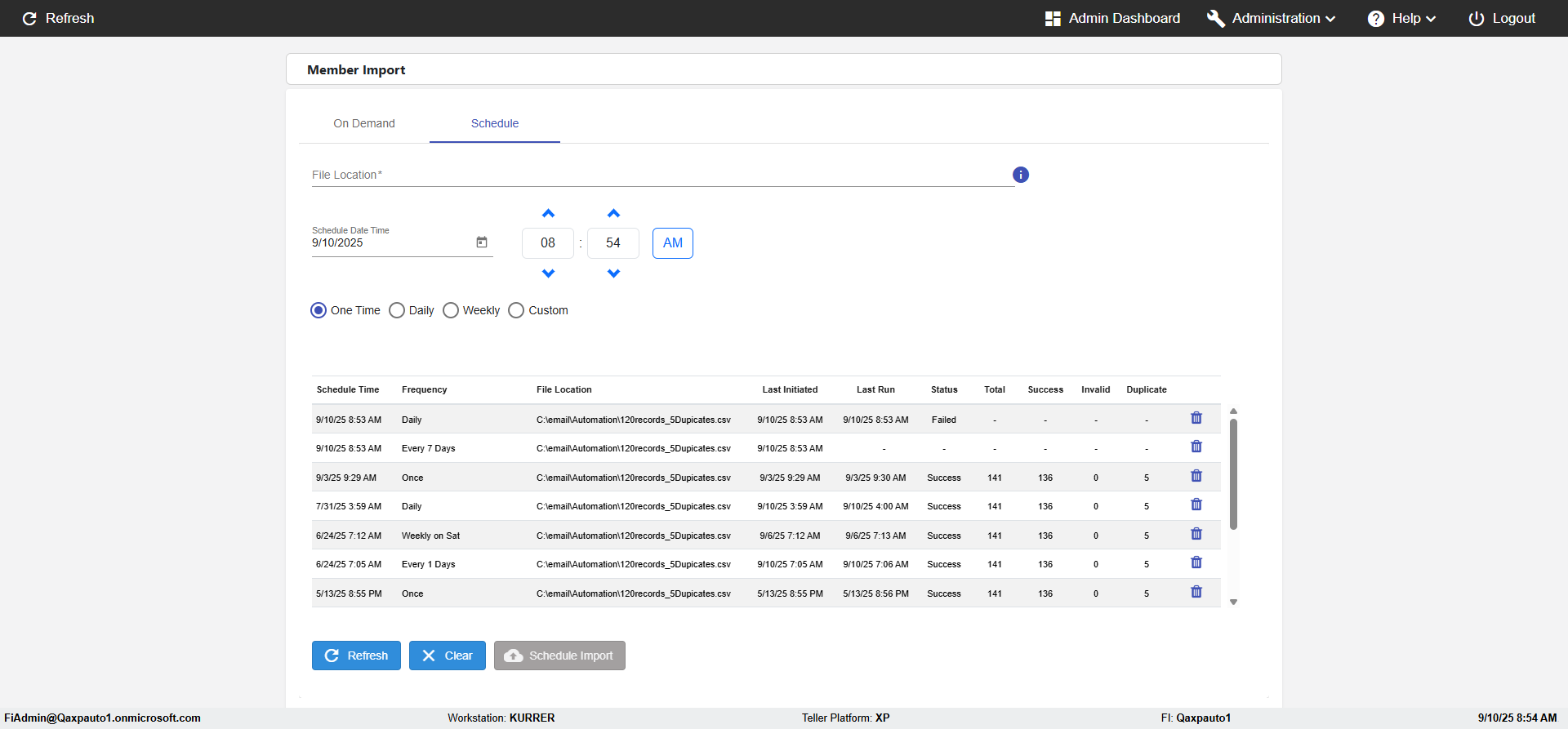 | 10-09-2025 08:54:55 AM | com.imm.ereceipt.testscripts.FiManagement.FiManagement#verifyMemberImportSchedulePageOneTime_ER2260#100925085455 | pass |