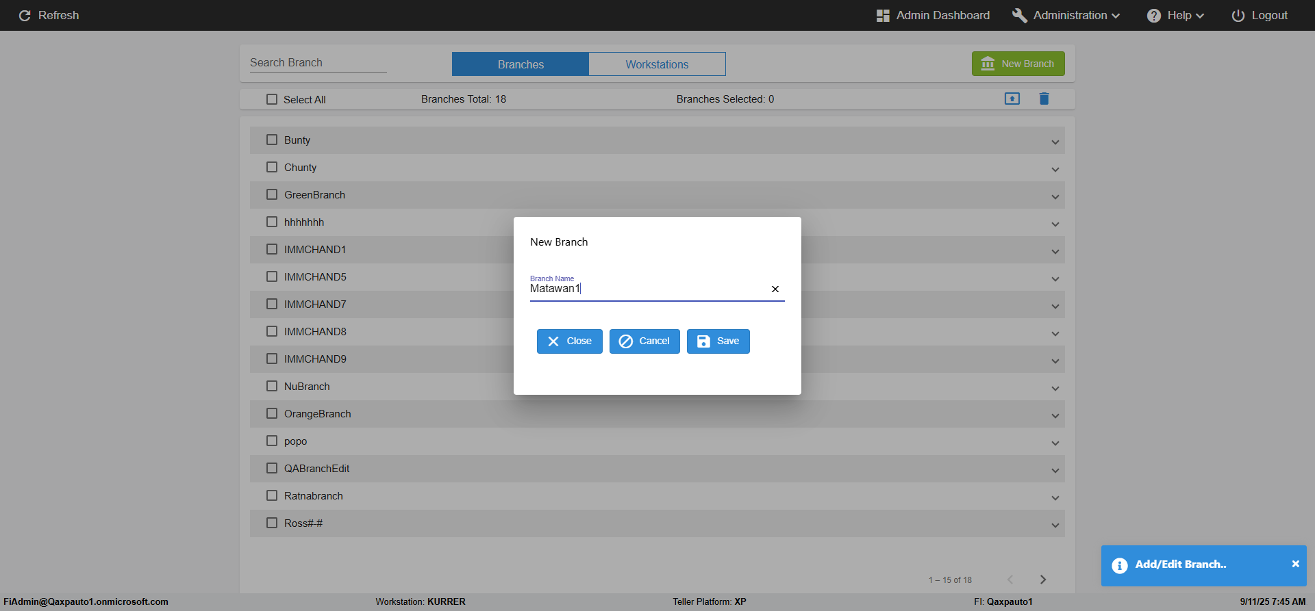 | 07:50:28 AM | Clicked on Add New Branch icon | |