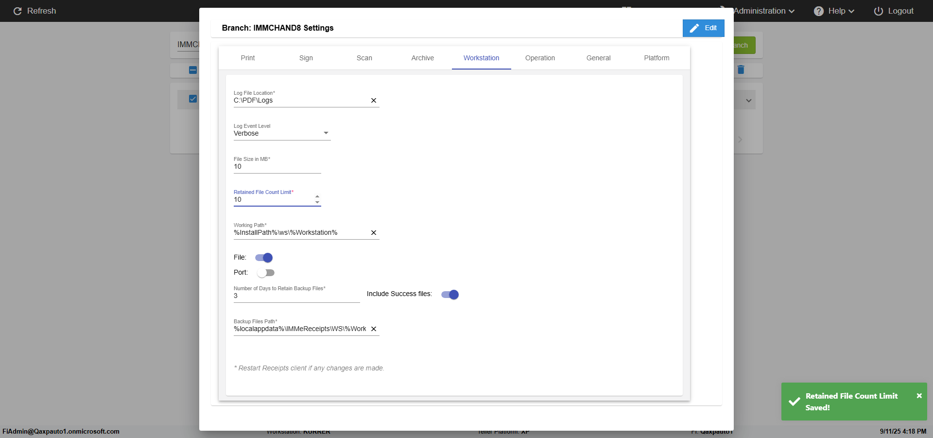| 04:18:51 PM | Expected: set Retained File Count Limit Actual(Passed): Sucessfully set Retained File Count Limit:10 [ScreenShot] |