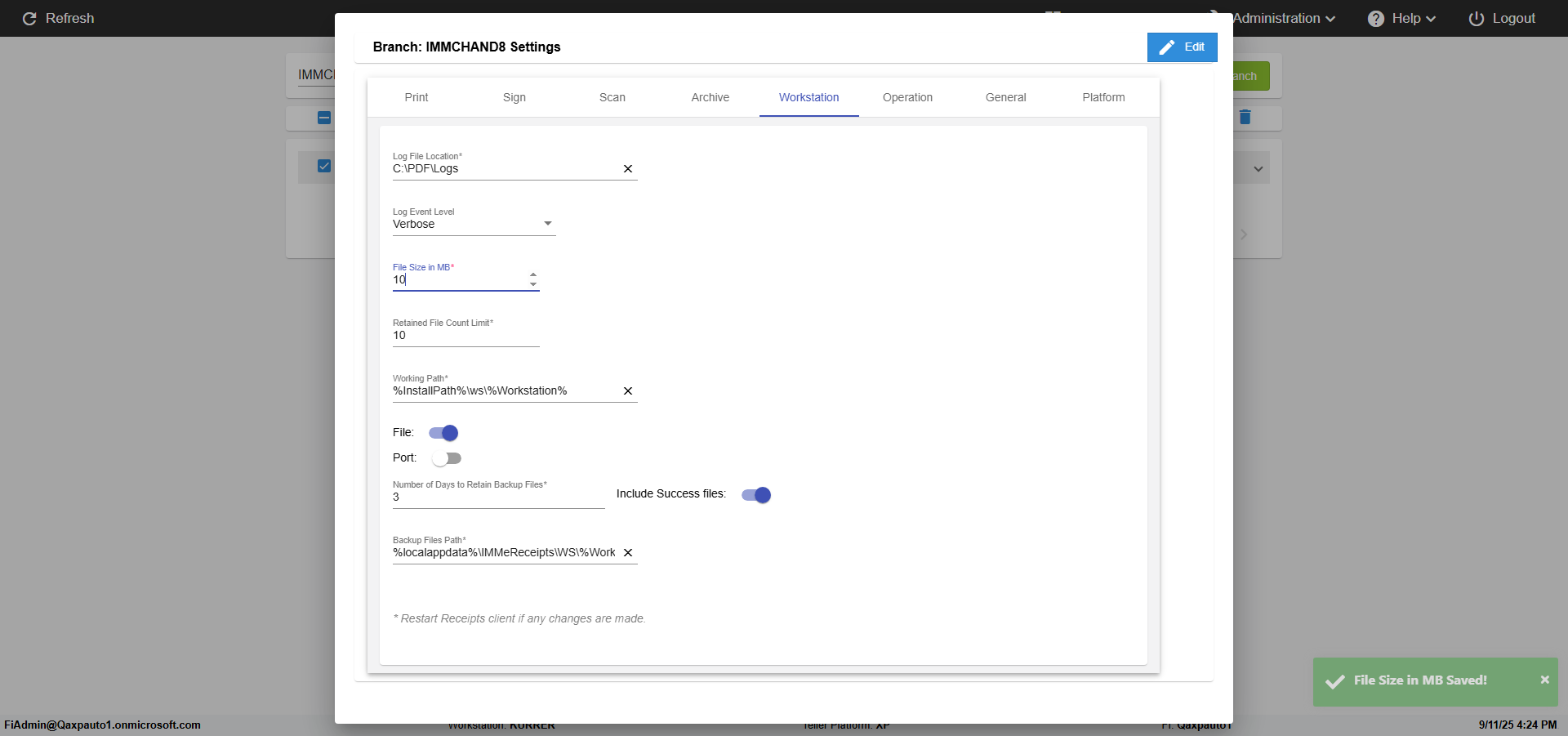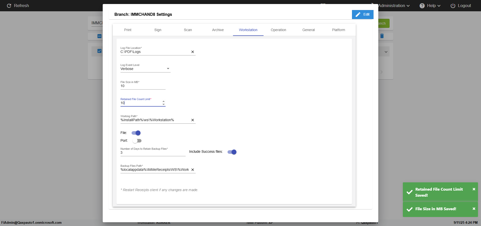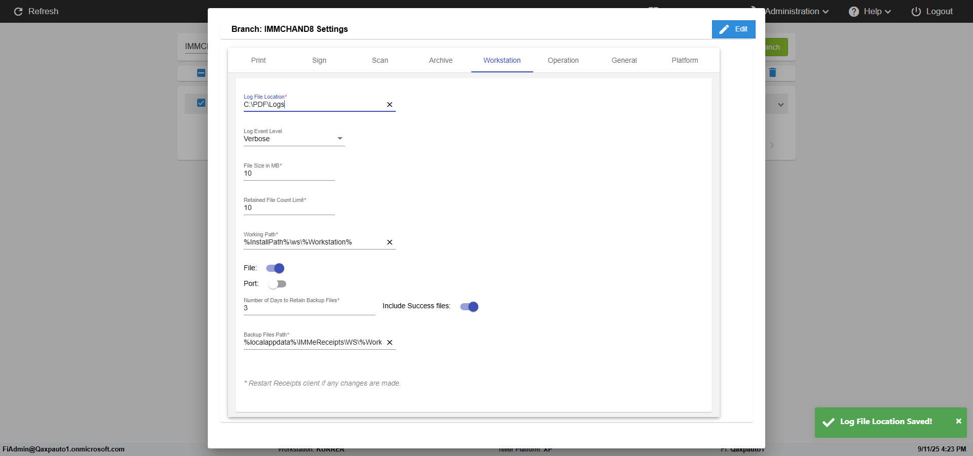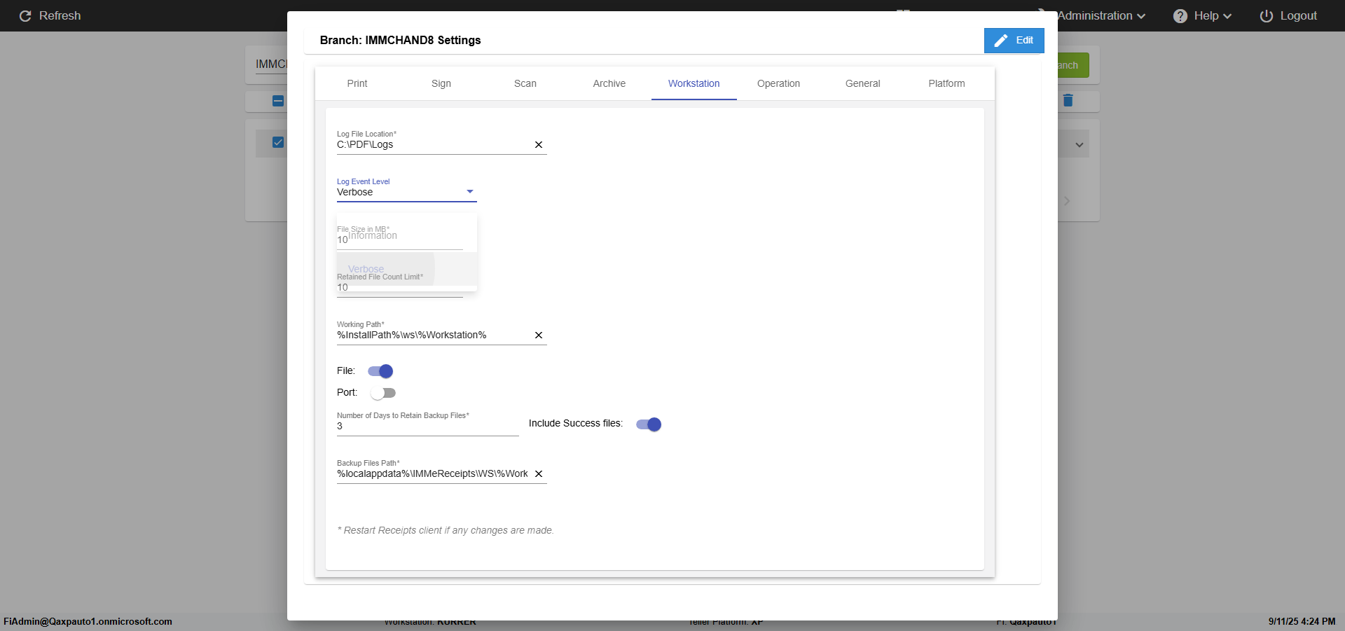 | {FromBranch=, Archived Transactions=, Description=verify Branch Workstation Settings Admin Portal, Archive=, Operation=, print signatur=, Name=, Clear=, TestID=verifyBranchWorkstationSettingsInAdmin, Phone=, MultipleWorkstation=, WorkstationName=, ToBranch=, WorkstationDeleteOption=, Subscription Names=, BranchName=IMMCHAND8, retention=, FilePath=, Agent=, UserPwd=iMM2022!, BranchDeleteOption=, Transtatus=Archived-false;Active-true;Error-false, Receipt=, Report=, Index_Field_Name=, Agents=Log File Location-C:\PDF\Logs;Log Event Level-Verbose;File Size in Bytes-10;Retained File Count Limit-10;File-True;Port-False, IPFilter=, Text=, Hold Notice=, Suppress=, SchedualType=, Date=, Platfrom=, GroupId=, print Disburstments=, Role=, Brand=, SMTP=, Print signature line=, TimeZone=, Imaging System=, Header=, MultipleBranches=, Username=fiAdmin@Qaxpauto1.onmicrosoft.com, MappedOption=, Sign=, Scan=, PortNumber=} |