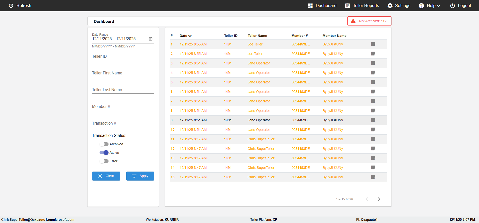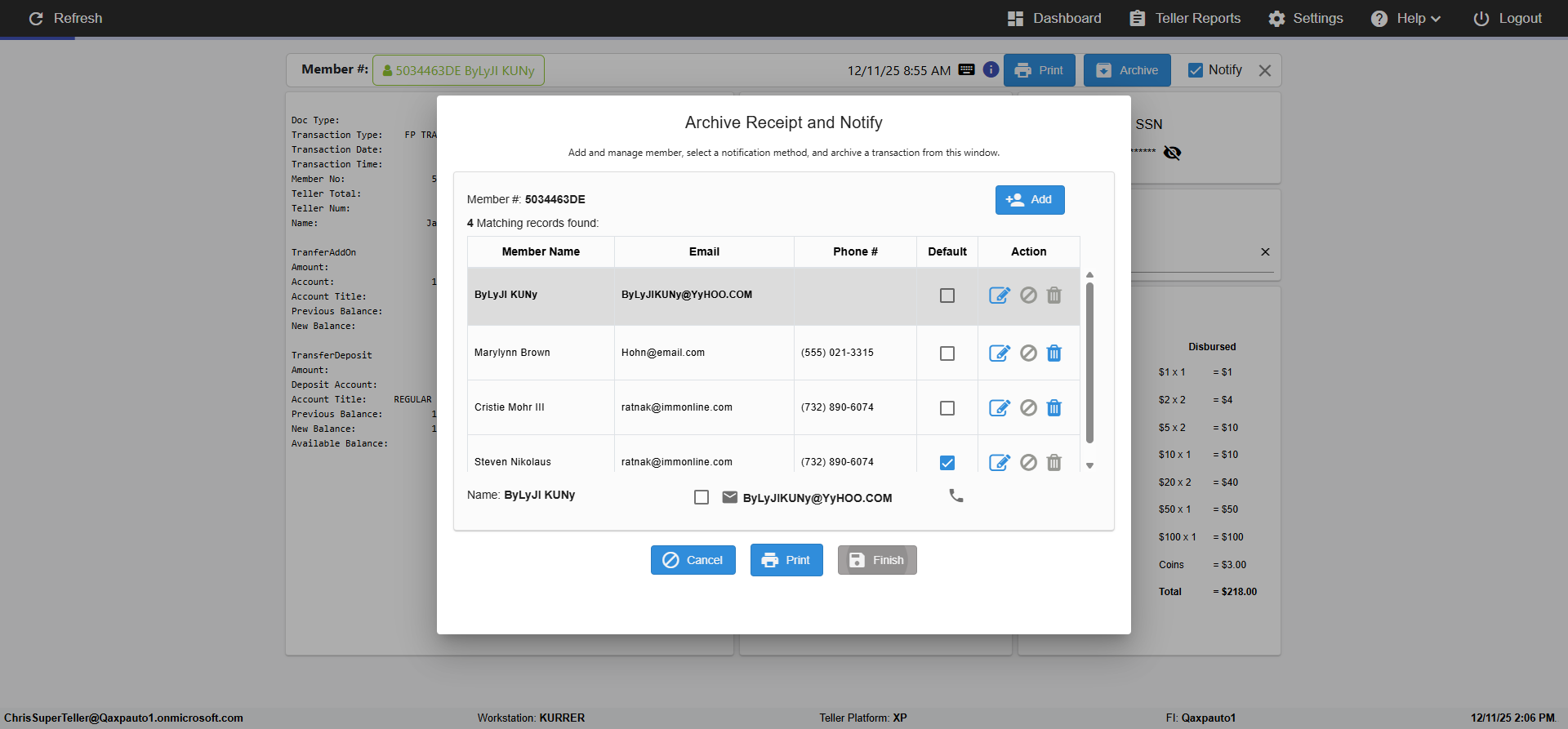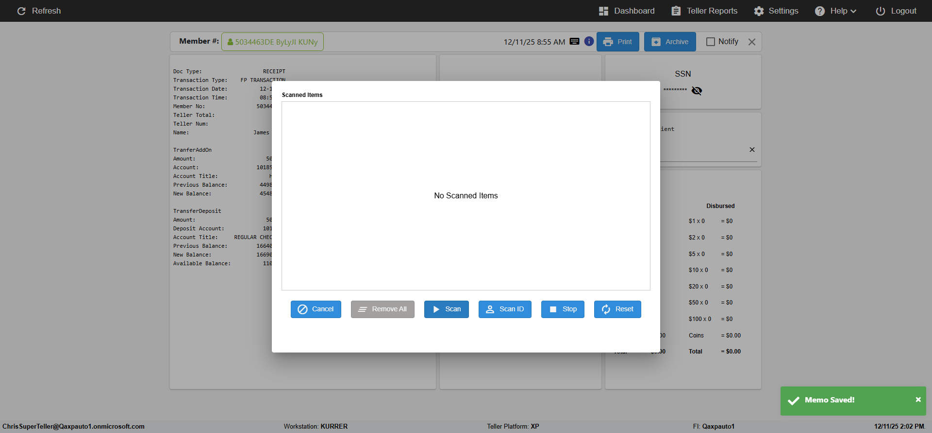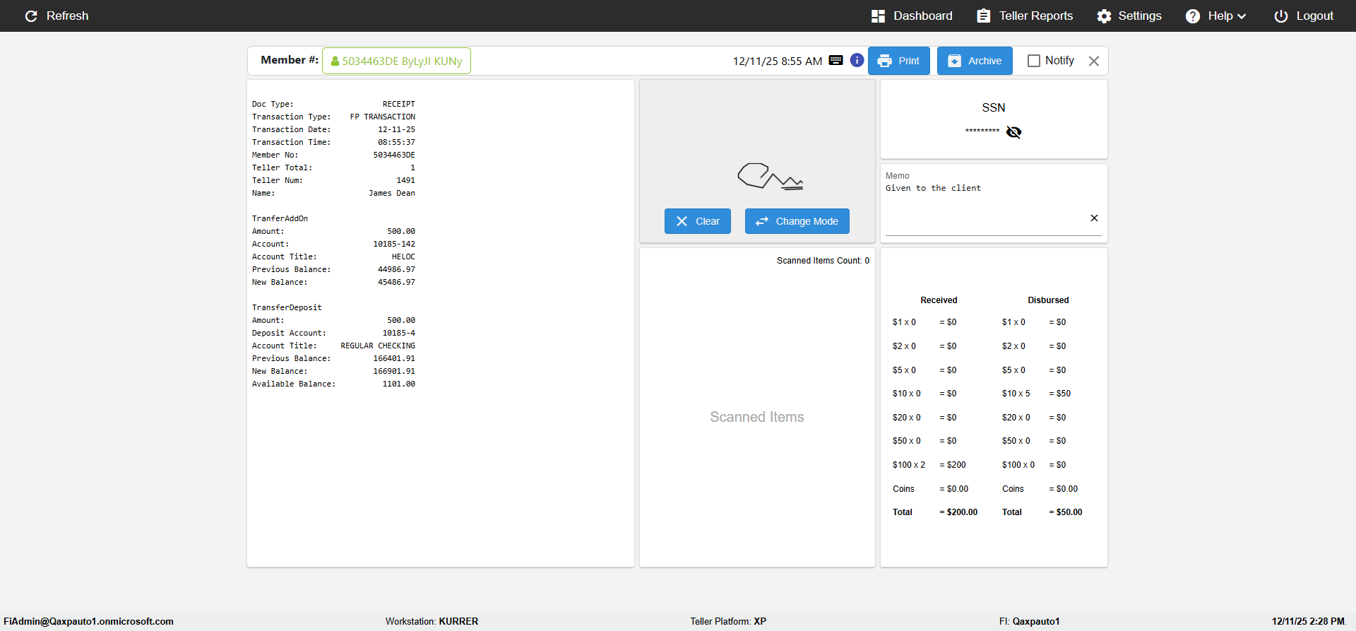(verify MemberID And Archive Information for Normal teller In Receipt Page)