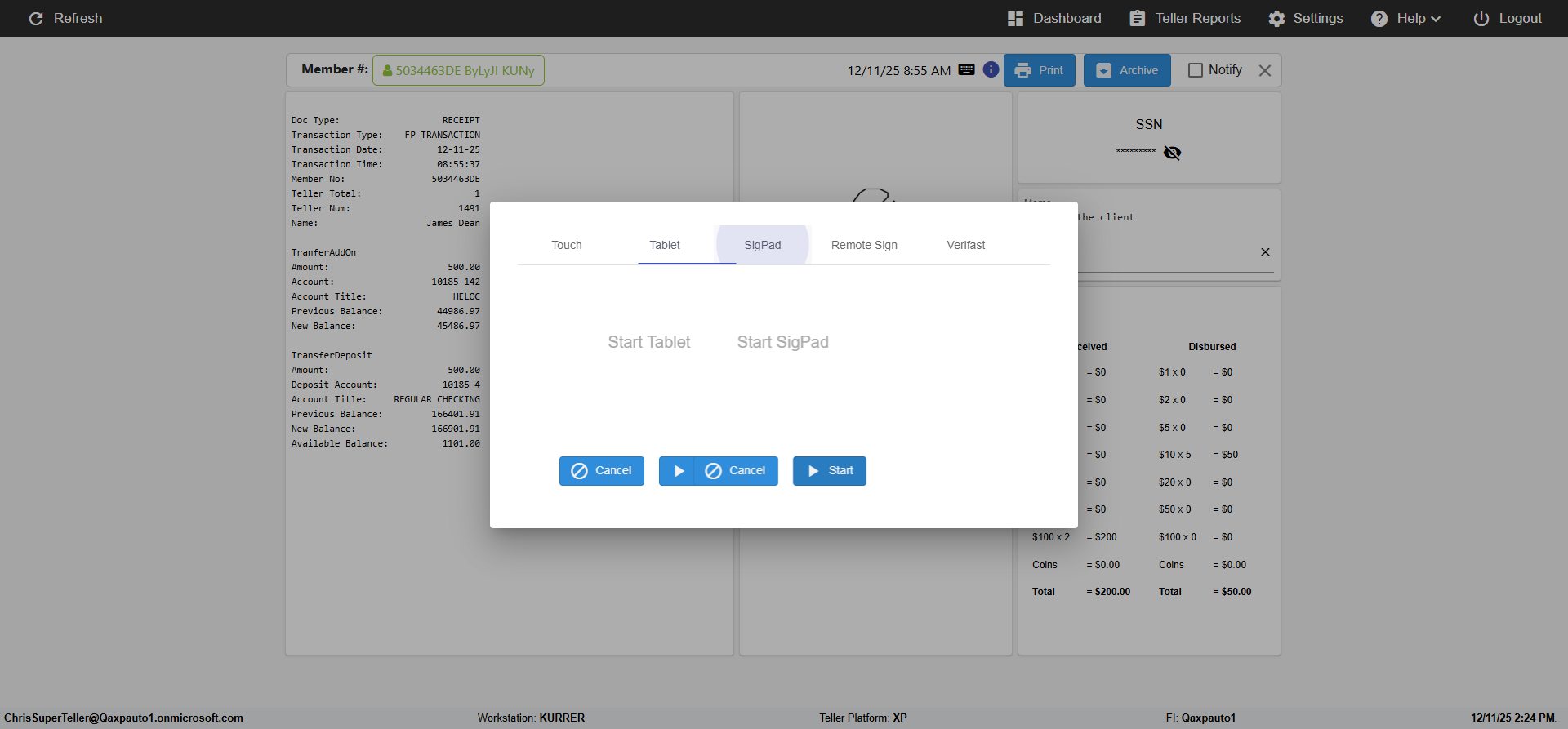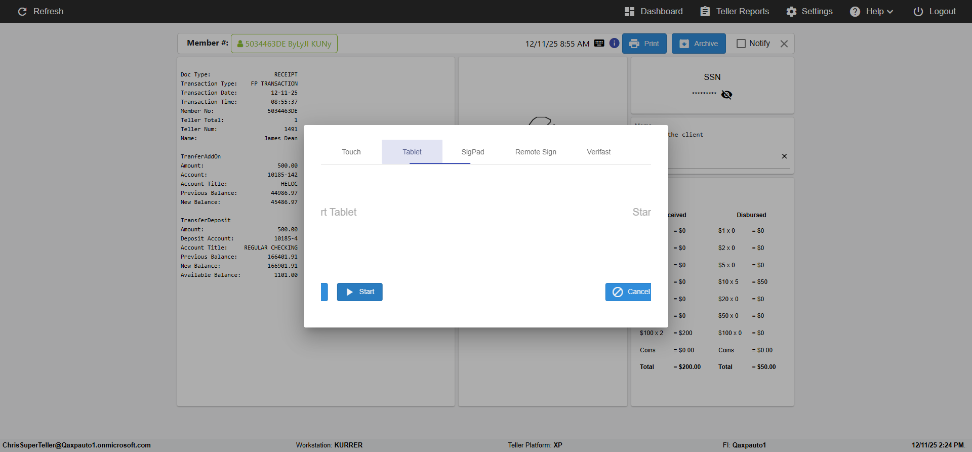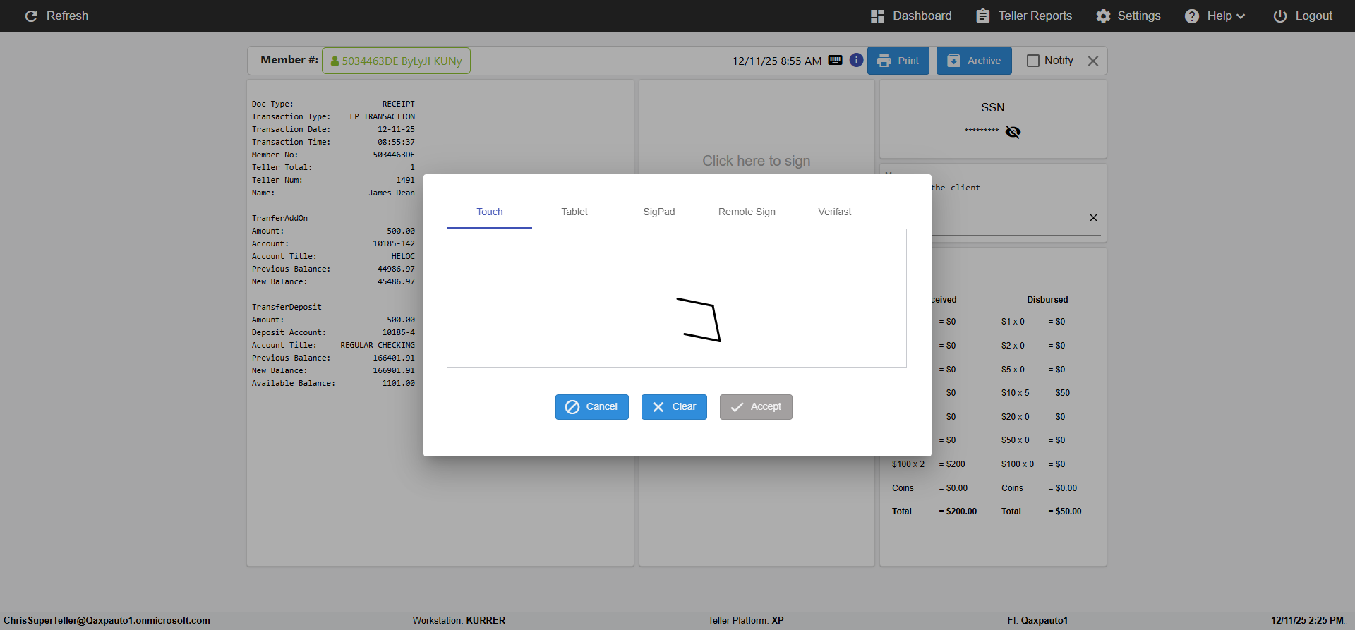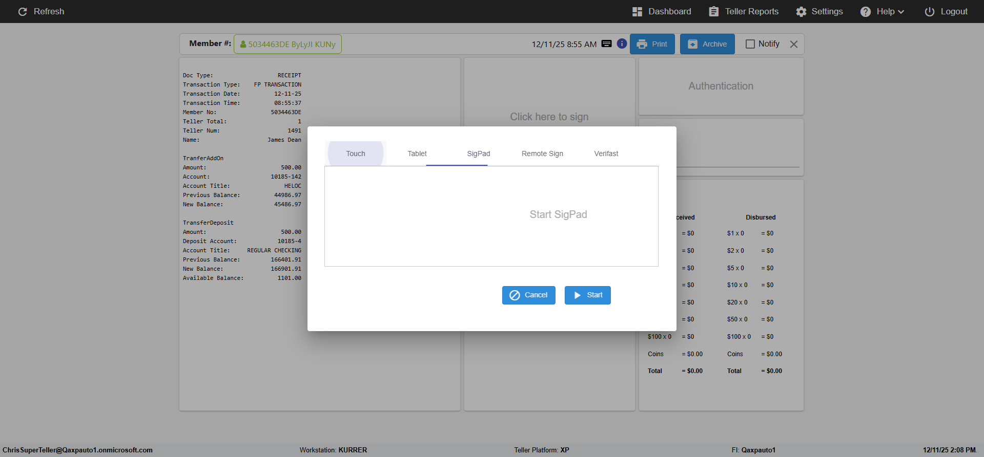 ({Toggel=, Archived Transactions=no, Description=verify touch signature in Receipt Page, Email=FALSE, Archive=FALSE, Document Type=, Notify=TRUE, SignatureTab=Touch,, DisbursedExpression=|-10*5, Operation=, Teller LastName=, Disbursed cash=, errorint=, TestID=verifyTouchSignatureEreceipt, Print=FALSE, DisbursedExpressionValue=TRUE, Phone=, ReceivedCashValue=FALSE, Member=, UserPwd=iMM2022!, Transtatus=Archived-false;Active-true;Error-false, Docment ID=, Teller=, Teller FirstName=Joe, errorMessage=, ReceivedExpressionValue=TRUE, SecondName=, Date=, Platfrom=, Received cash=, Transaction=, Header=, Expression=, Username=ChrisSuperTeller@Qaxpauto1.onmicrosoft.com, DisbursedCashValue=FALSE, FullName=, ReceivedExpression=|+100*2, SMS=FALSE, Memo=})