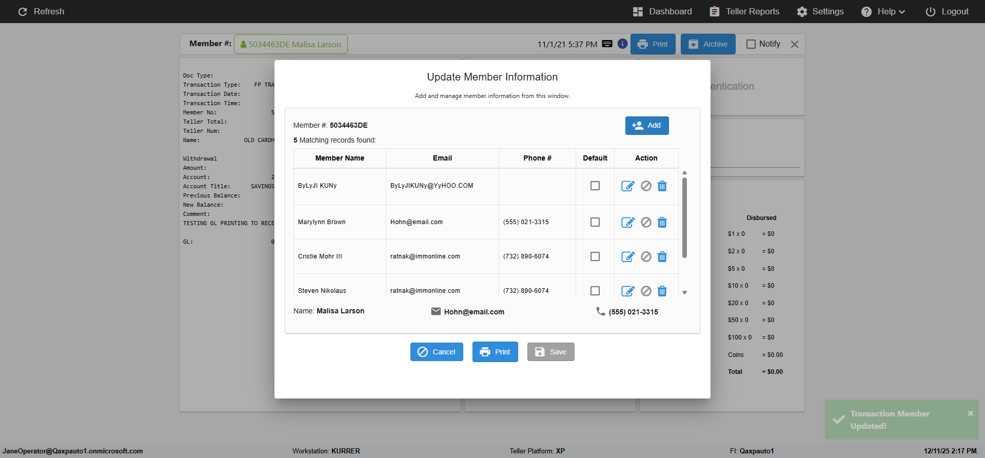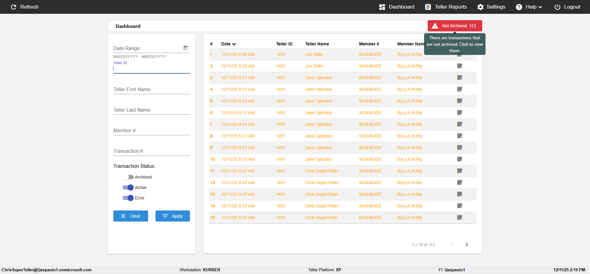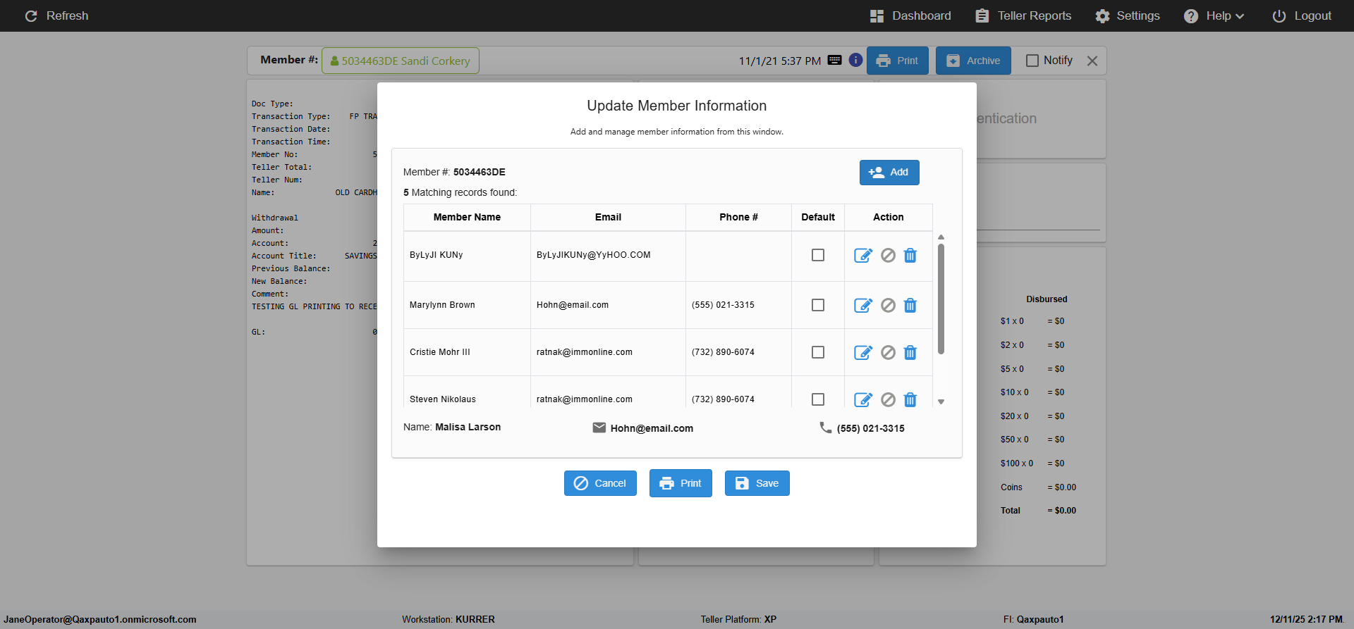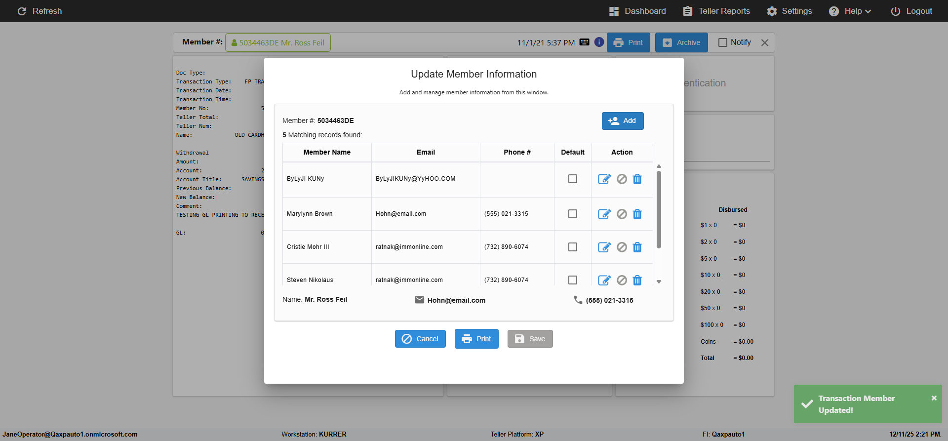 ({Toggel=TRUE, Archived Transactions=no, Description=verify MemberID And Archive Information Update, Email=Hohn@email.com, Archive=, Document Type=, Notify=, SignatureTab=, DisbursedExpression=, Operation=, Teller LastName=, Disbursed cash=, errorint=, TestID=verifyMemberAddUpdateContactInfo, Print=, DisbursedExpressionValue=, Phone=(555) 021-3315, ReceivedCashValue=, Member=5034463, UserPwd=iMM2022!, Transtatus=Archived-false;Active-true;Error-false, Docment ID=, Teller=, Teller FirstName=, errorMessage=, ReceivedExpressionValue=, SecondName=, Date=11/01/2021 - 11/20/2021, Platfrom=, Received cash=, Transaction=, Header=, Expression=, Username=ChrisSuperTeller@Qaxpauto1.onmicrosoft.com, DisbursedCashValue=, FullName=John, ReceivedExpression=, SMS=, Memo=})