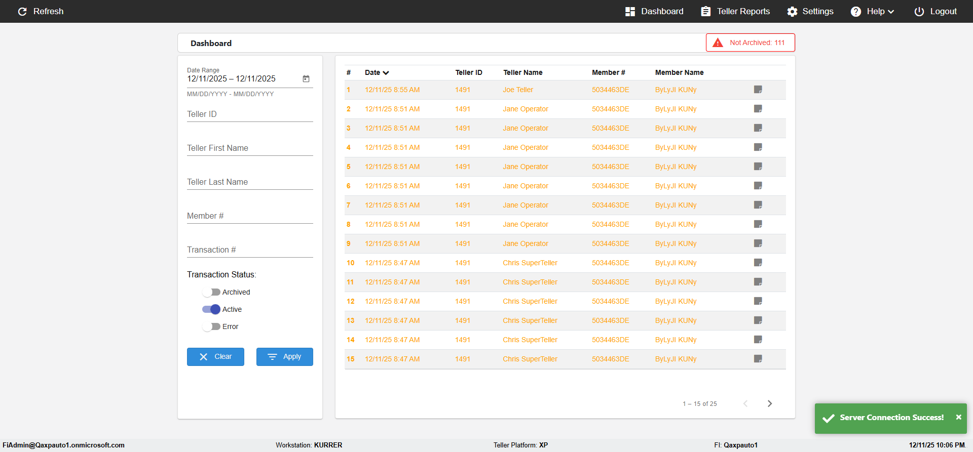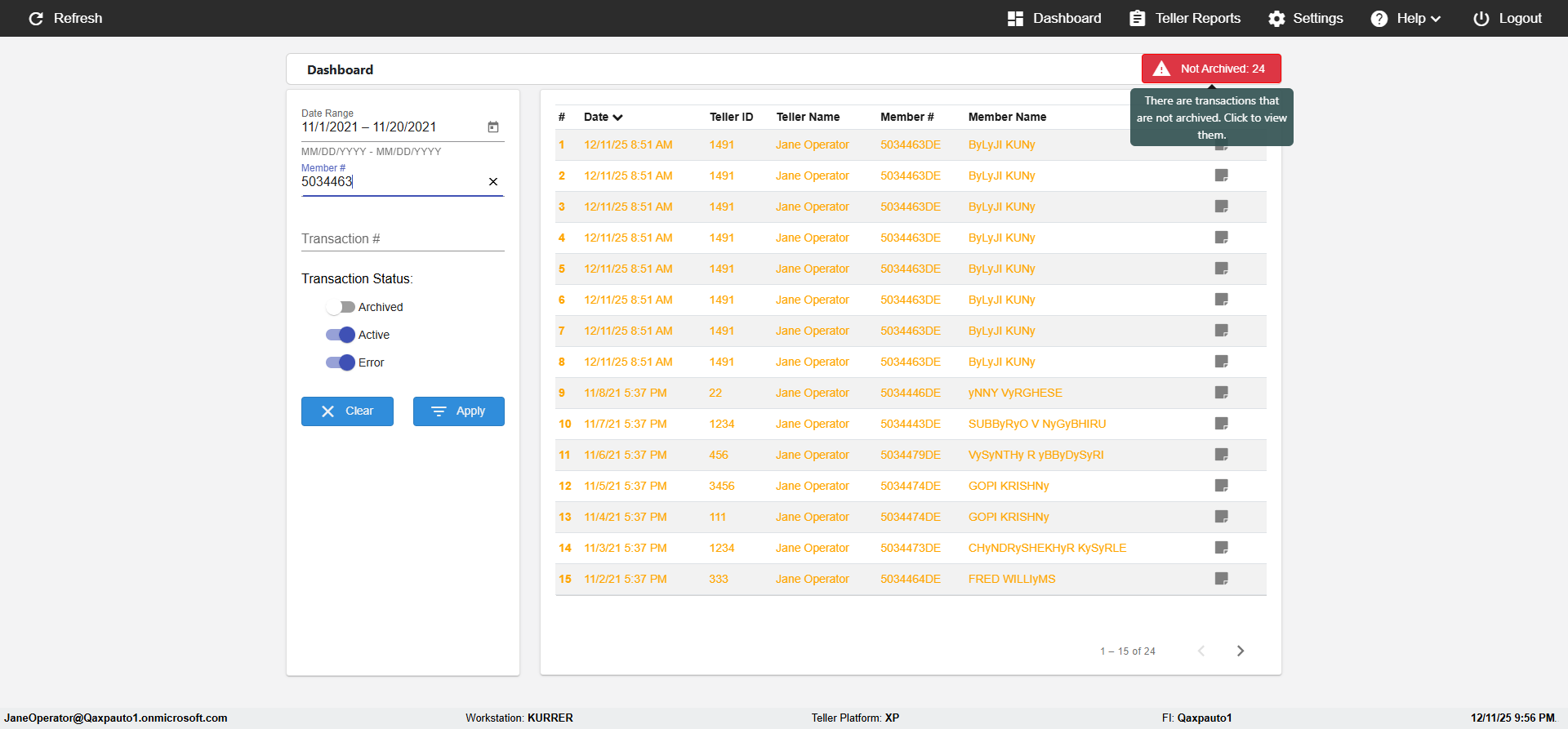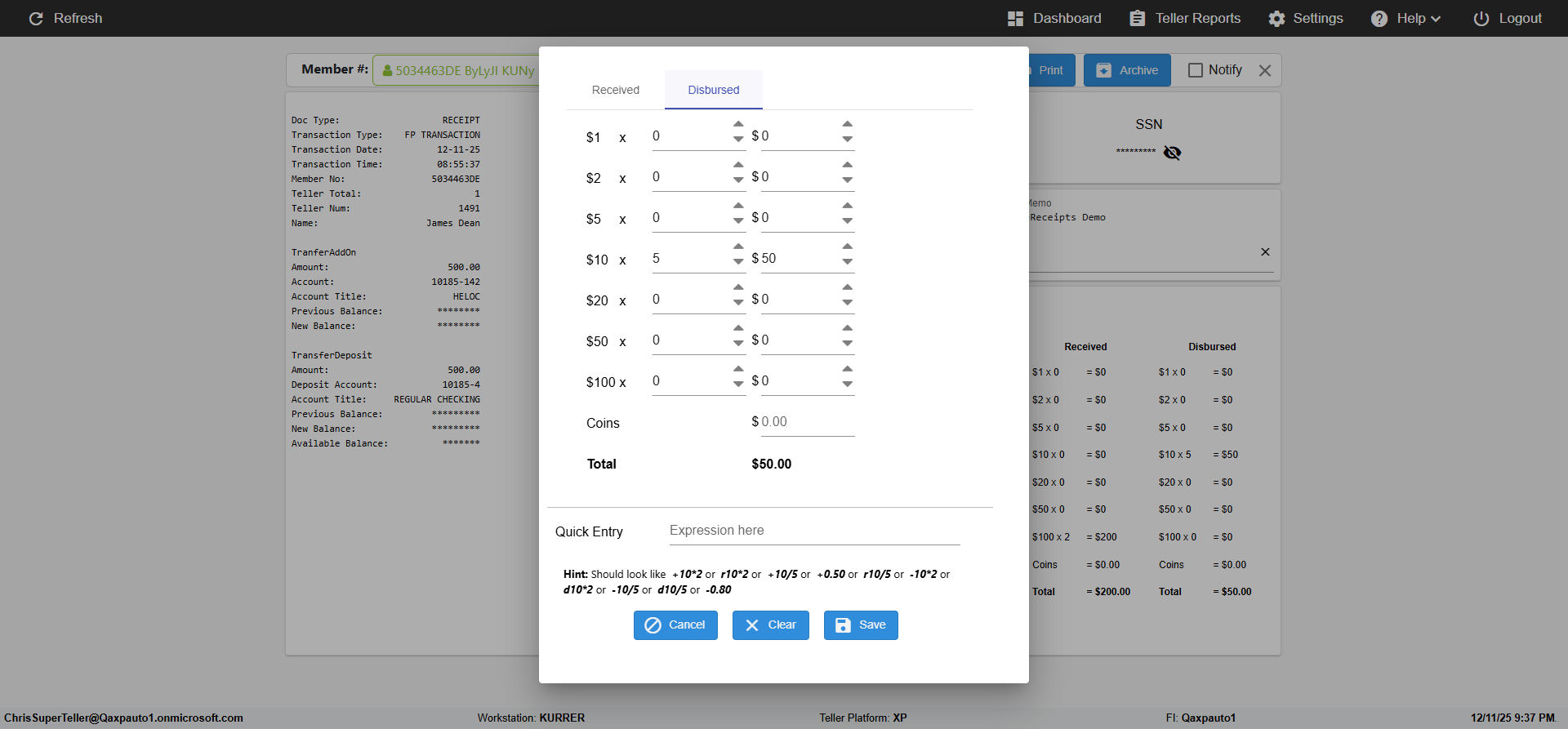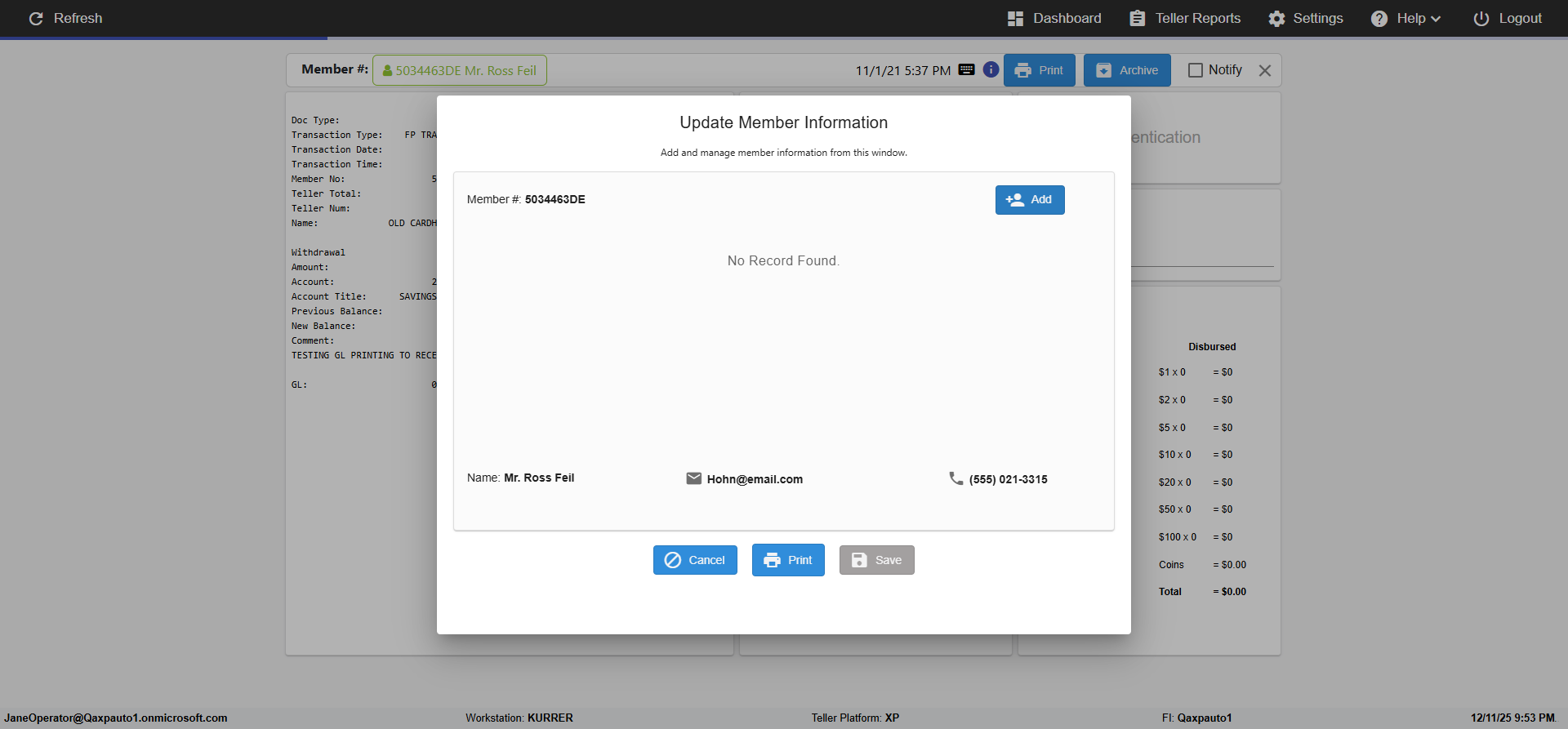 (verify MemberID And Archive Information for Normal teller In Receipt Page)