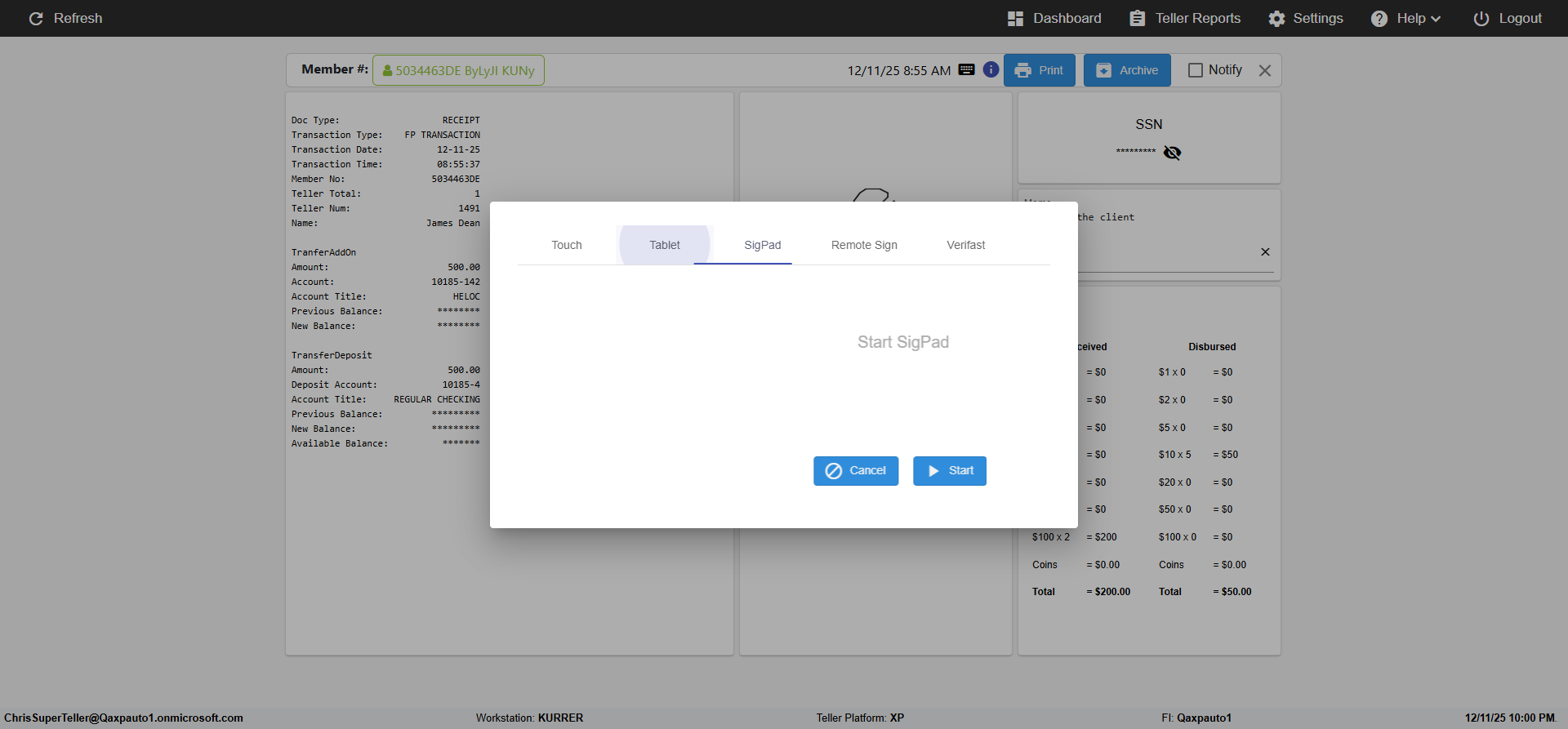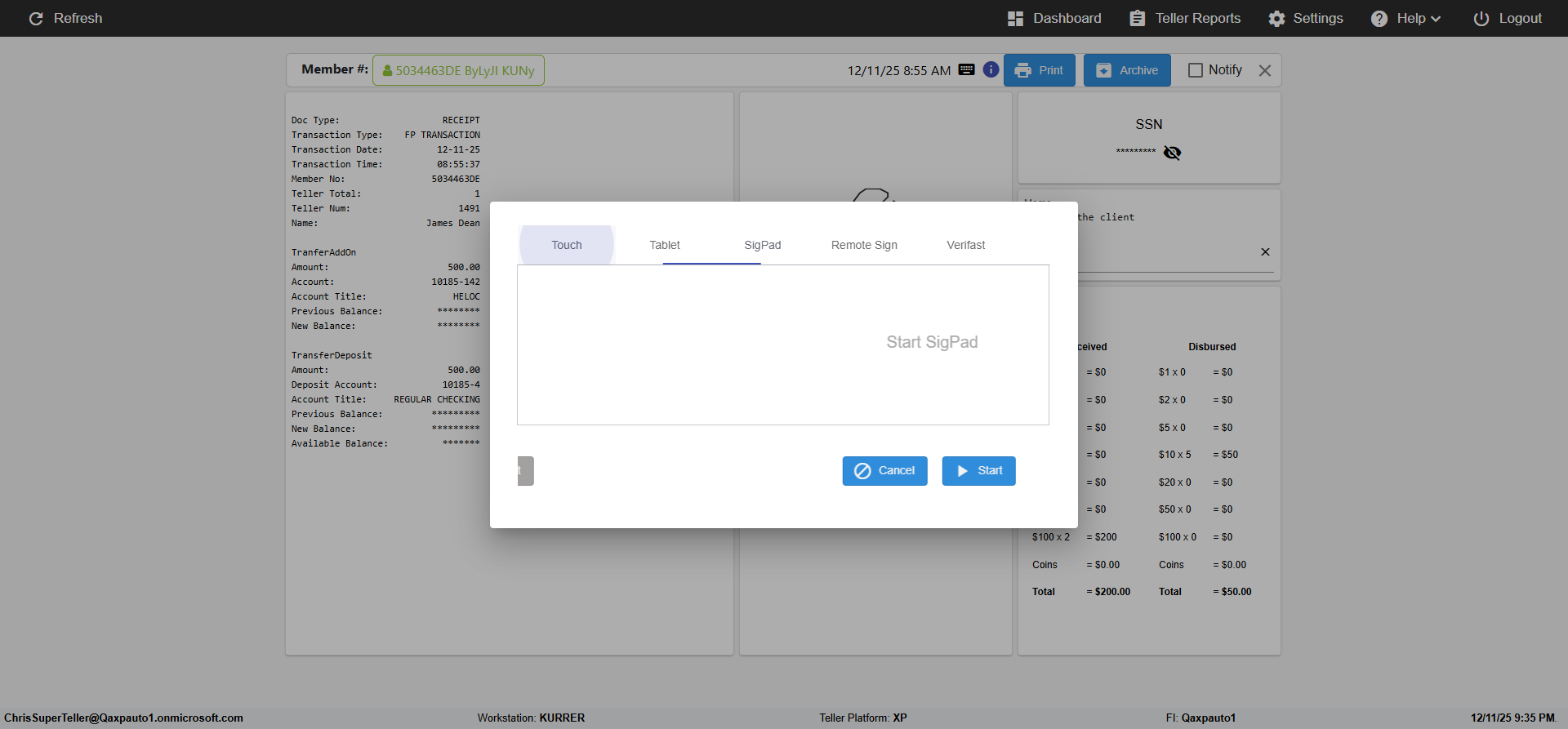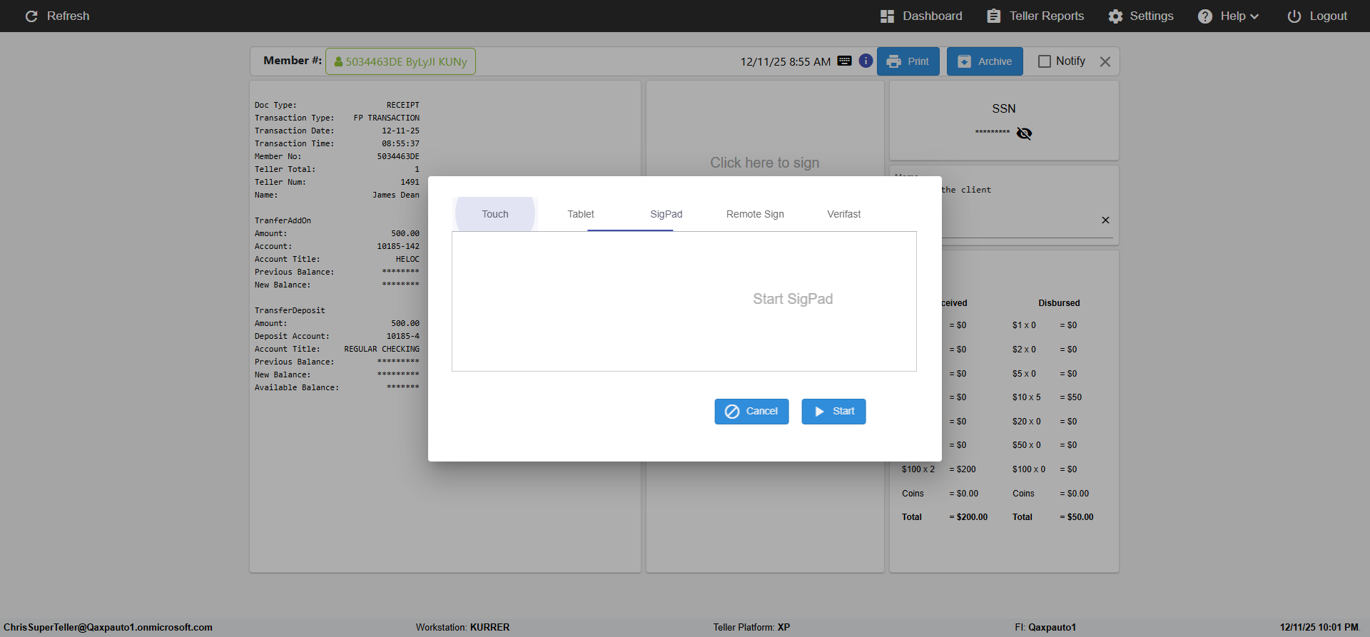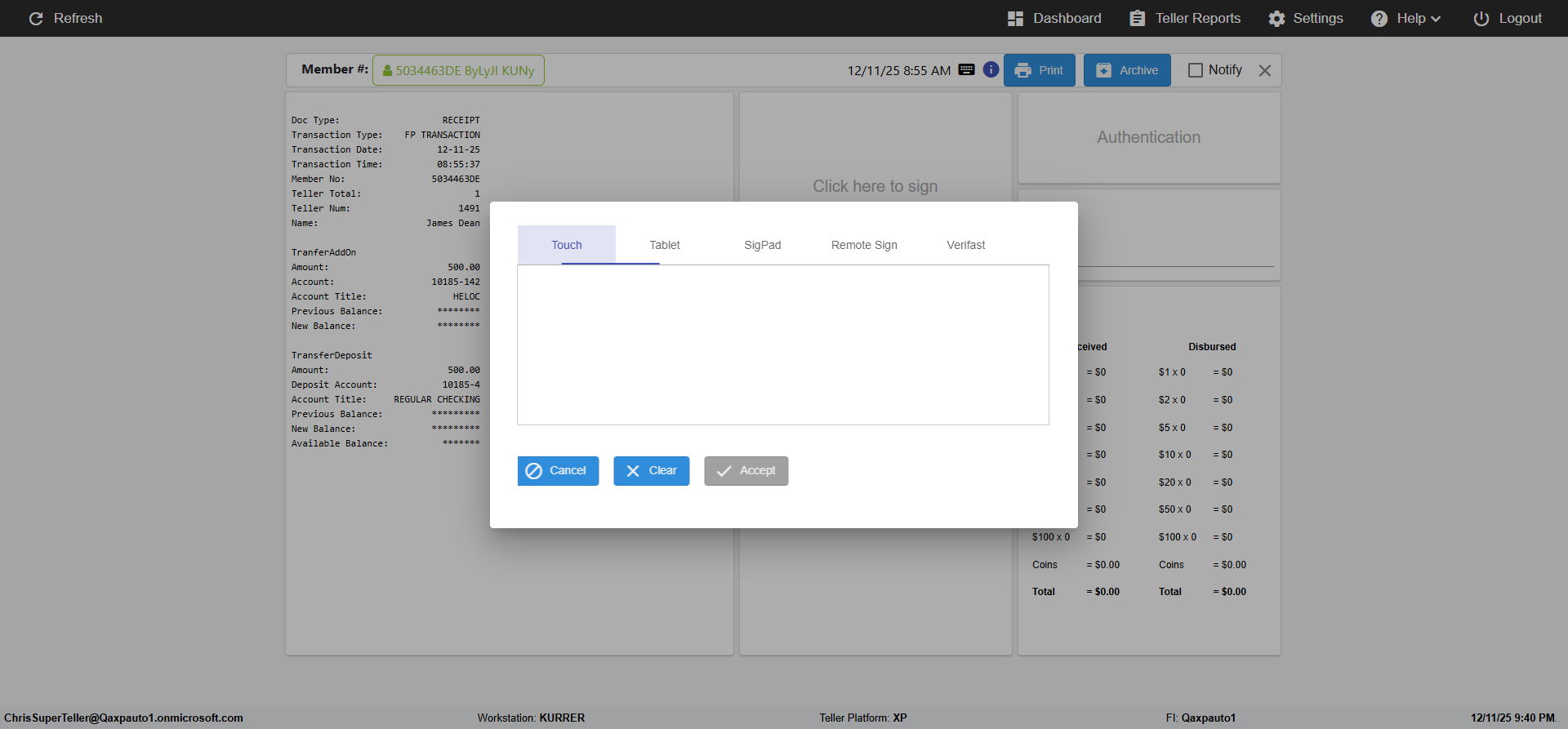 ({Toggel=, Archived Transactions=no, Description=verify touch signature in Receipt Page, Email=FALSE, Archive=FALSE, Document Type=, Notify=TRUE, SignatureTab=Touch,, DisbursedExpression=|-10*5, Operation=, Teller LastName=, Disbursed cash=, errorint=, TestID=verifyTouchSignatureEreceipt, Print=FALSE, DisbursedExpressionValue=TRUE, Phone=, ReceivedCashValue=FALSE, Member=, UserPwd=iMM2022!, Transtatus=Archived-false;Active-true;Error-false, Docment ID=, Teller=, Teller FirstName=Joe, errorMessage=, ReceivedExpressionValue=TRUE, SecondName=, Date=, Platfrom=, Received cash=, Transaction=, Header=, Expression=, Username=ChrisSuperTeller@Qaxpauto1.onmicrosoft.com, DisbursedCashValue=FALSE, FullName=, ReceivedExpression=|+100*2, SMS=FALSE, Memo=})