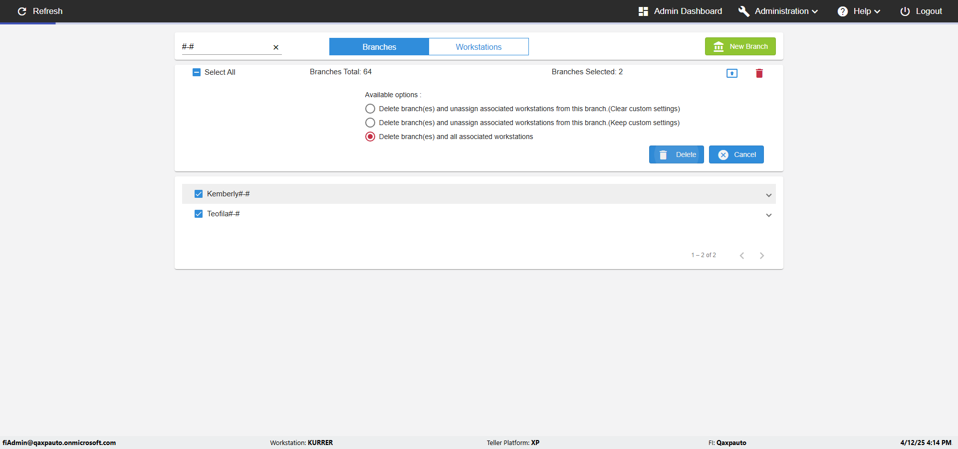 | 04:11:29 PM | Expected: select the list matching pattern in 'Branches' page Actual(Passed): Successfully selected list in 'Branches' page [ScreenShot] |