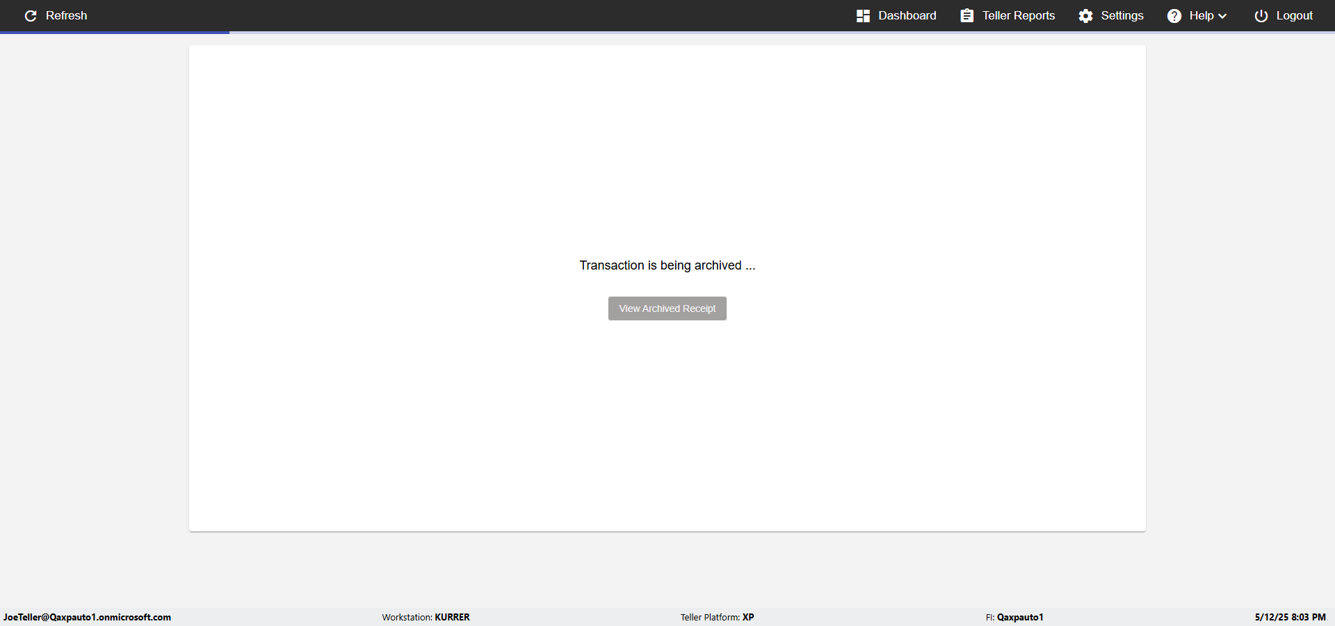 Actual(Passed): Transaction is being archived ...[ScreenShot]